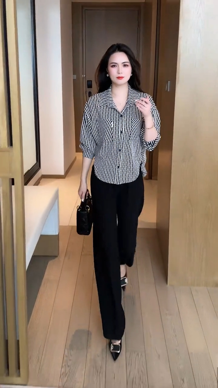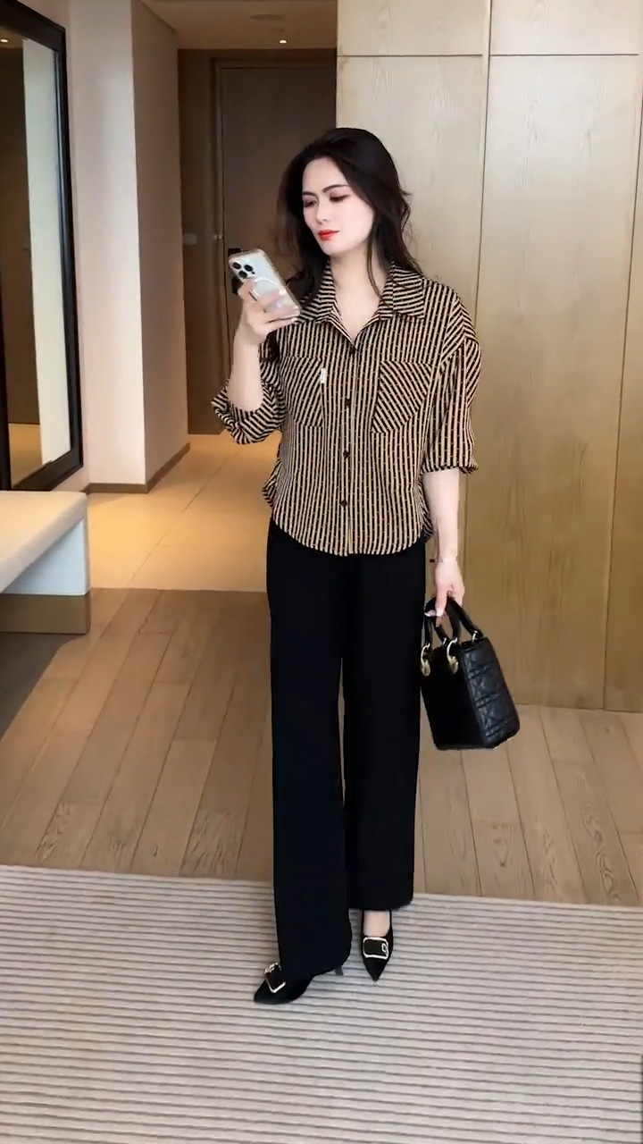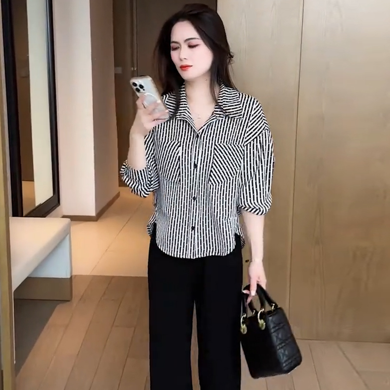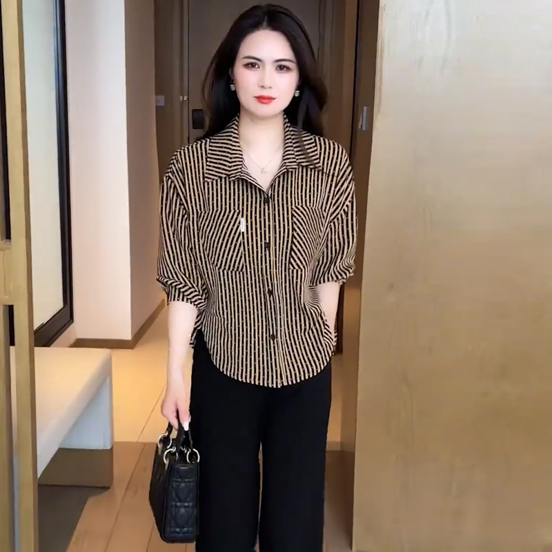 패션 스트라이프 캐주얼 셔츠 여성용 긴팔 이른 봄 새로운 도착 세련된 셔츠 느슨한 슬림 핏 탑