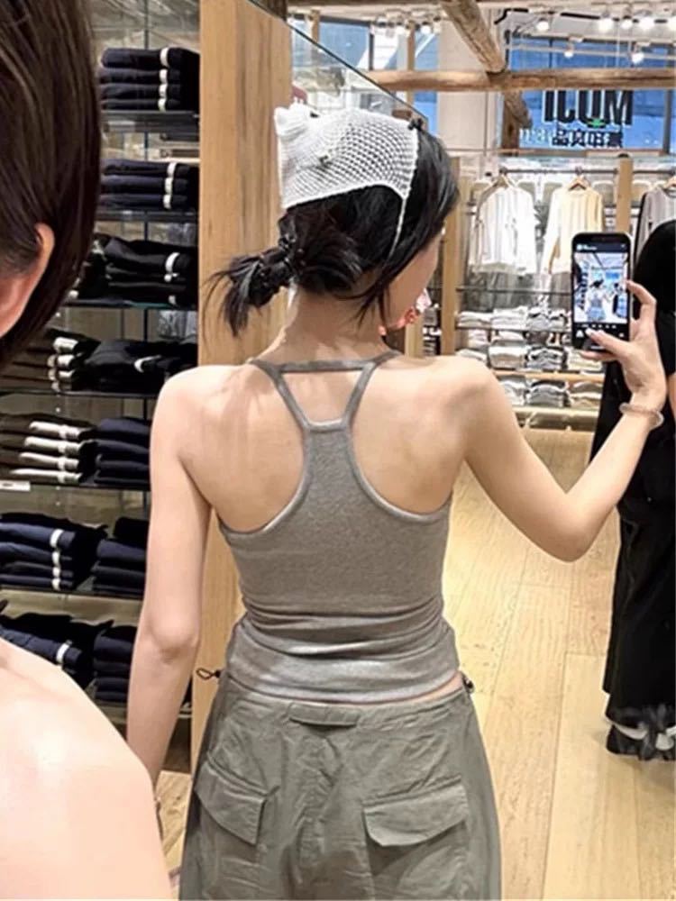 스파이스 걸스 순수한 욕망 슬링 조끼 벨트 가슴 패드 I-Back 솔리드 컬러 조끼 스포츠 피트니스 올 매치 여자 조끼