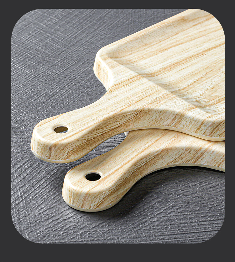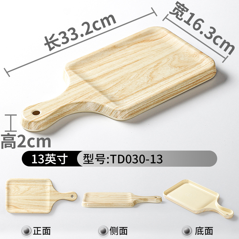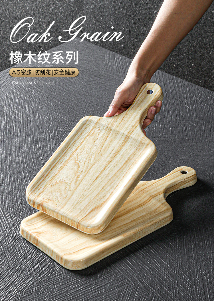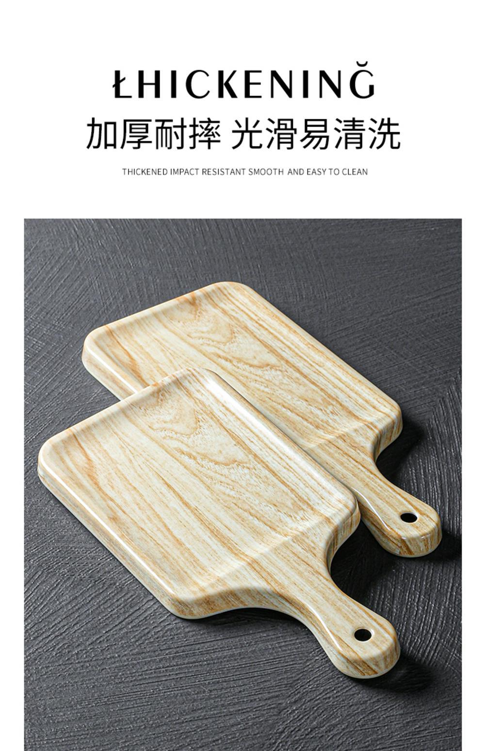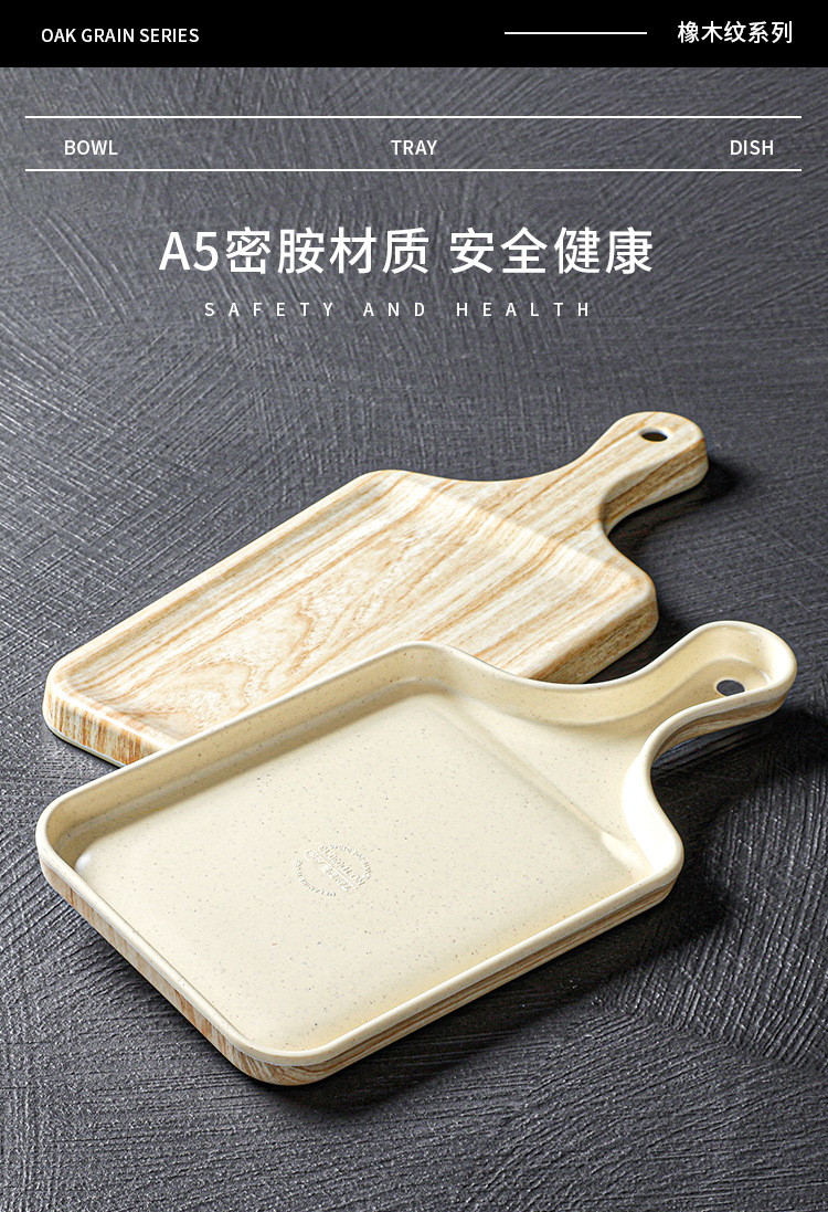 핸들 냄비 레스토랑 바베큐 레스토랑 테이블 고기 플레이트 모방 오크 패턴 직사각형 접시가있는 멜라민 플레이트 상업용 레스토랑