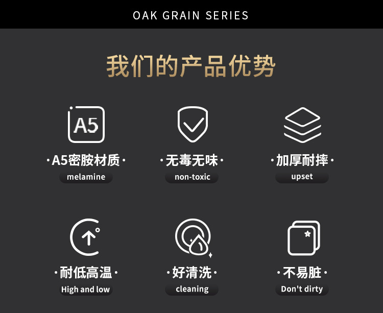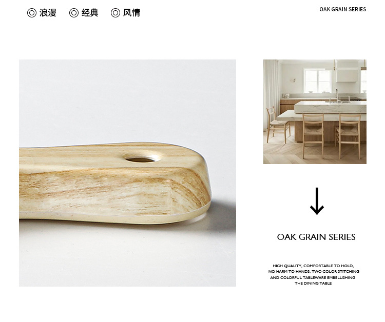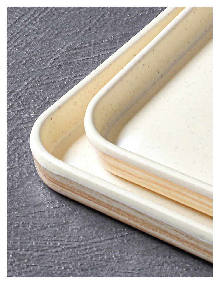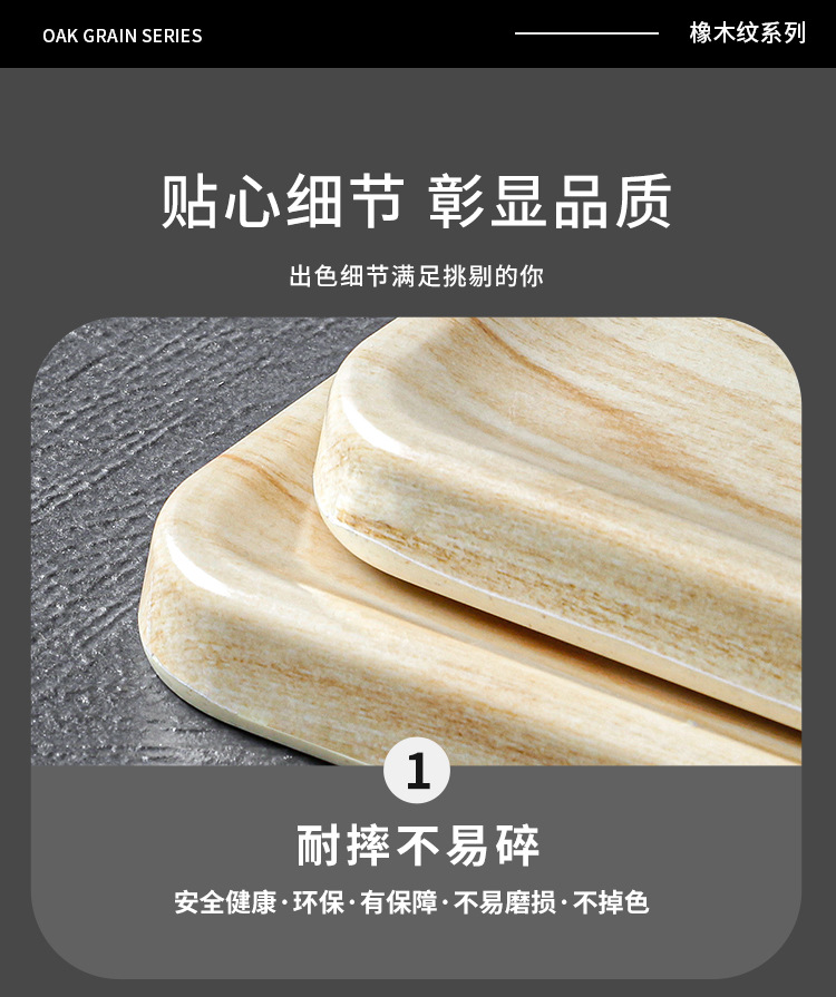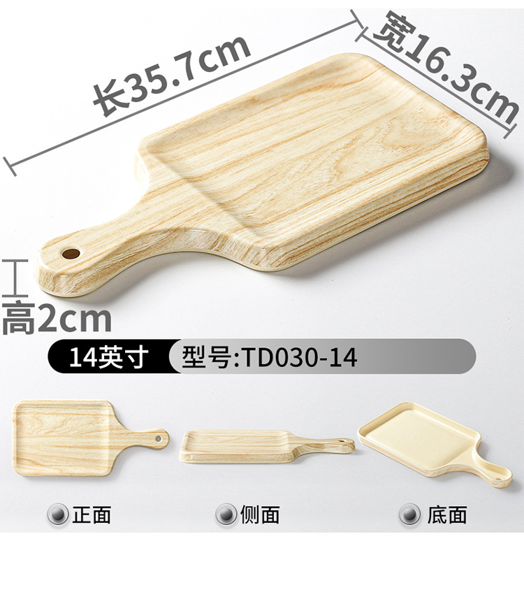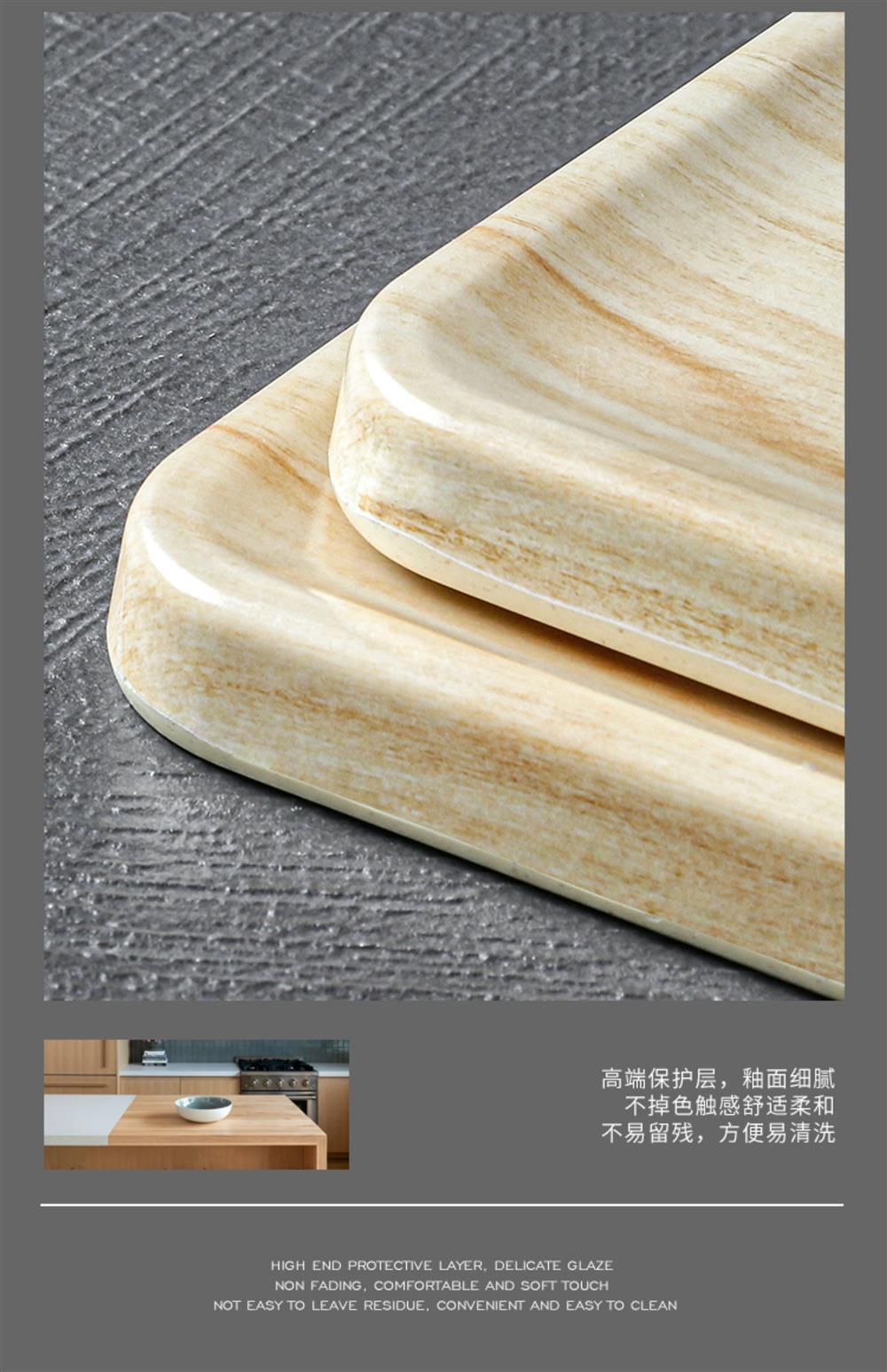 핸들 냄비 레스토랑 바베큐 레스토랑 테이블 고기 플레이트 모방 오크 패턴 직사각형 접시가있는 멜라민 플레이트 상업용 레스토랑