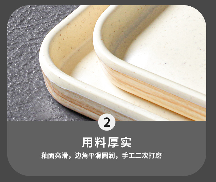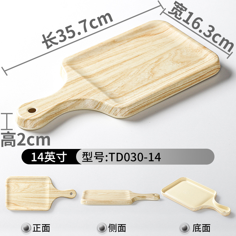 핸들 냄비 레스토랑 바베큐 레스토랑 테이블 고기 플레이트 모방 오크 패턴 직사각형 접시가있는 멜라민 플레이트 상업용 레스토랑스토어 가기