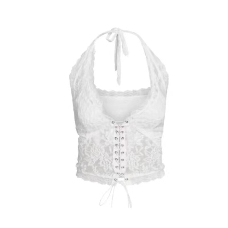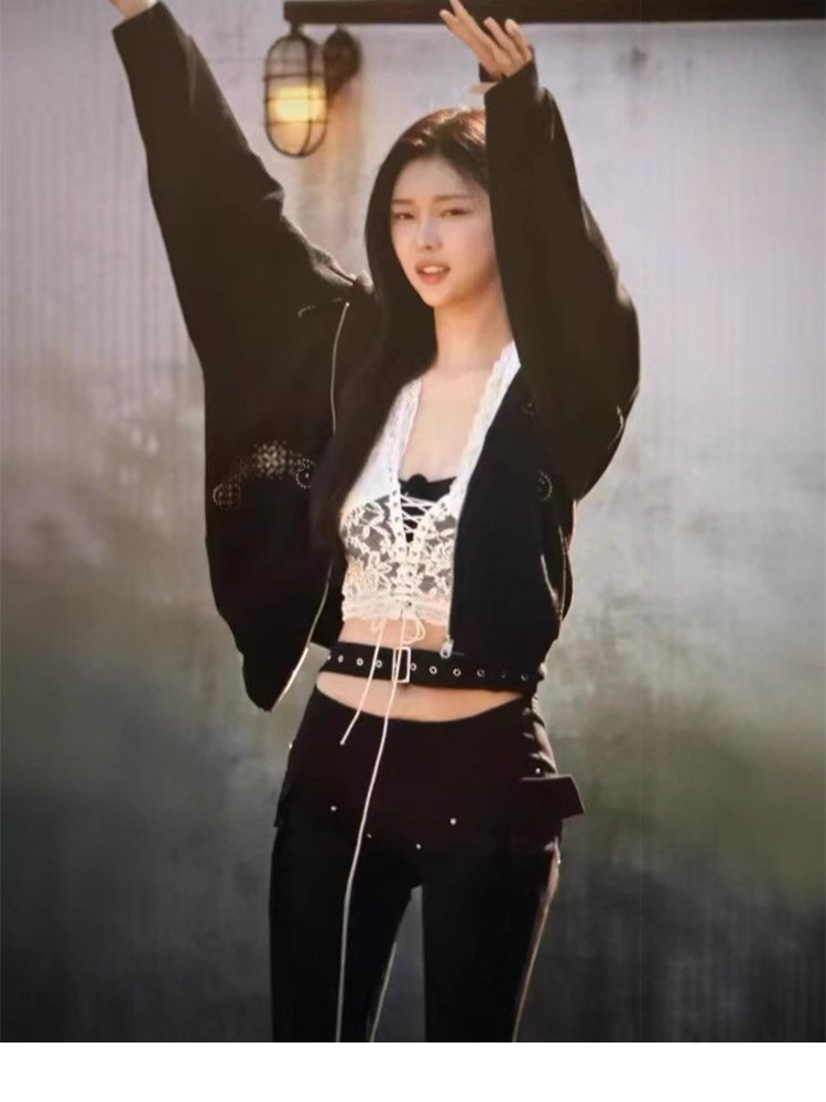 Li Shi'an의 같은 스타일 국경 간 대외 무역 검은 작업복 정장 후드 티셔츠 재킷 홀터넥 레이스 조끼