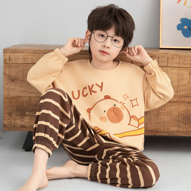순면 소년의 집 옷 세트 둥근 목 봄과 가을 새 소년 긴 소매 봄과 가을 풀오버 중 큰 어린이 잠옷스토어 가기