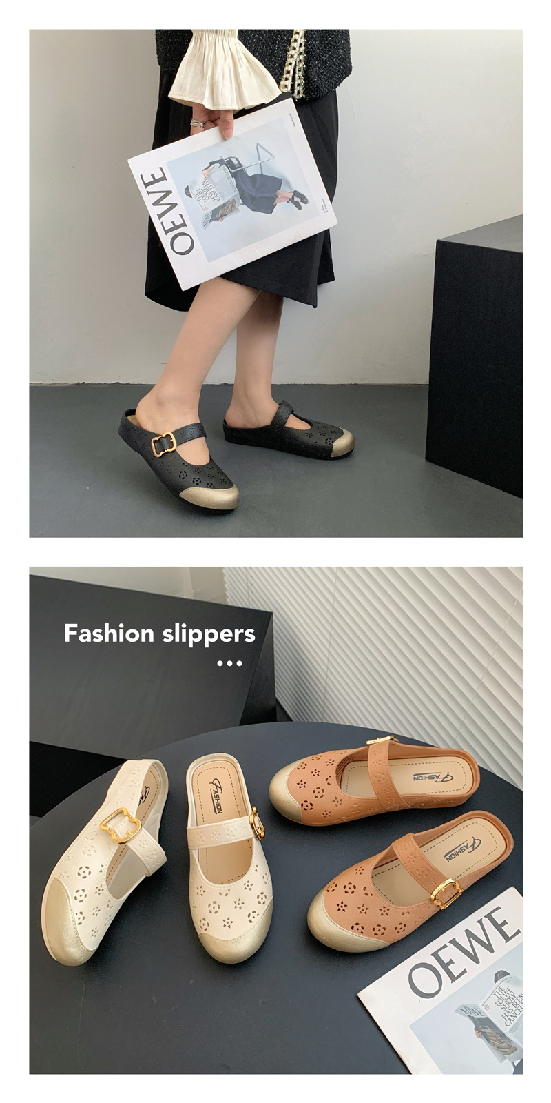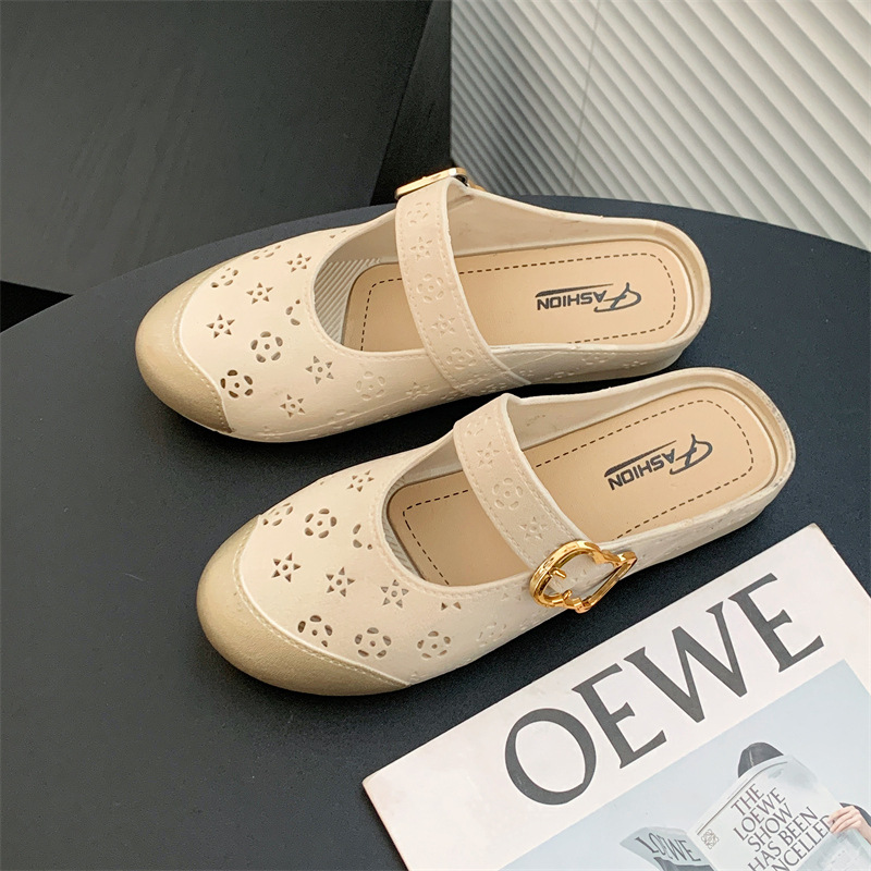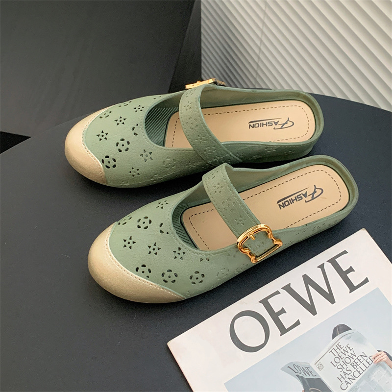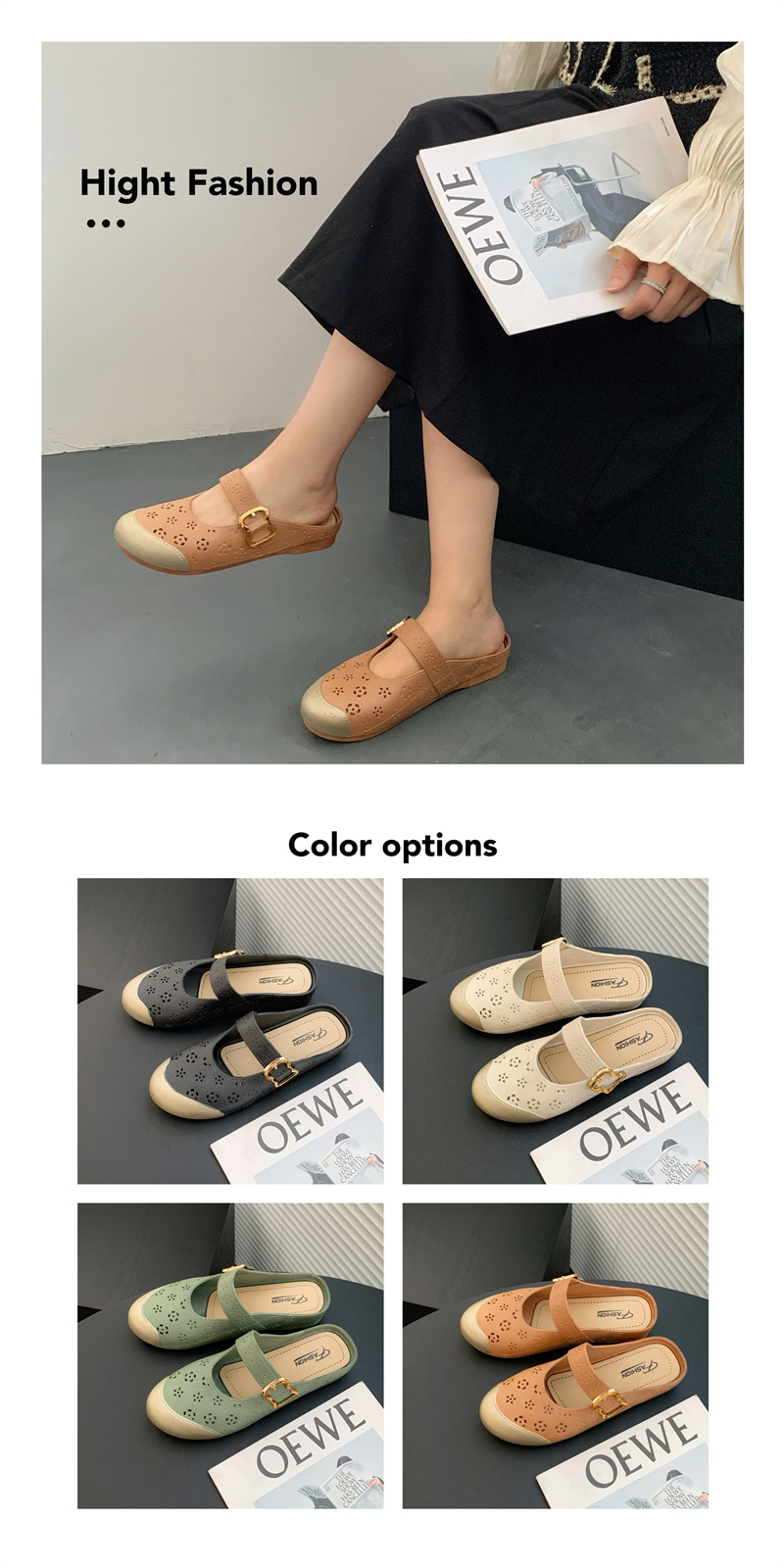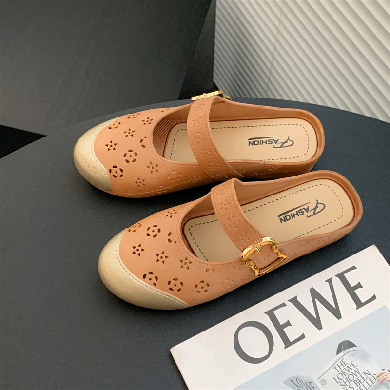 Baotou 싱글 레이어 신발 여성 아우터 착용 2024 새로운 패션 게으른 반 슬리퍼 빈 미끄럼 방지 소프트 하단 편안한 여성용 샌들