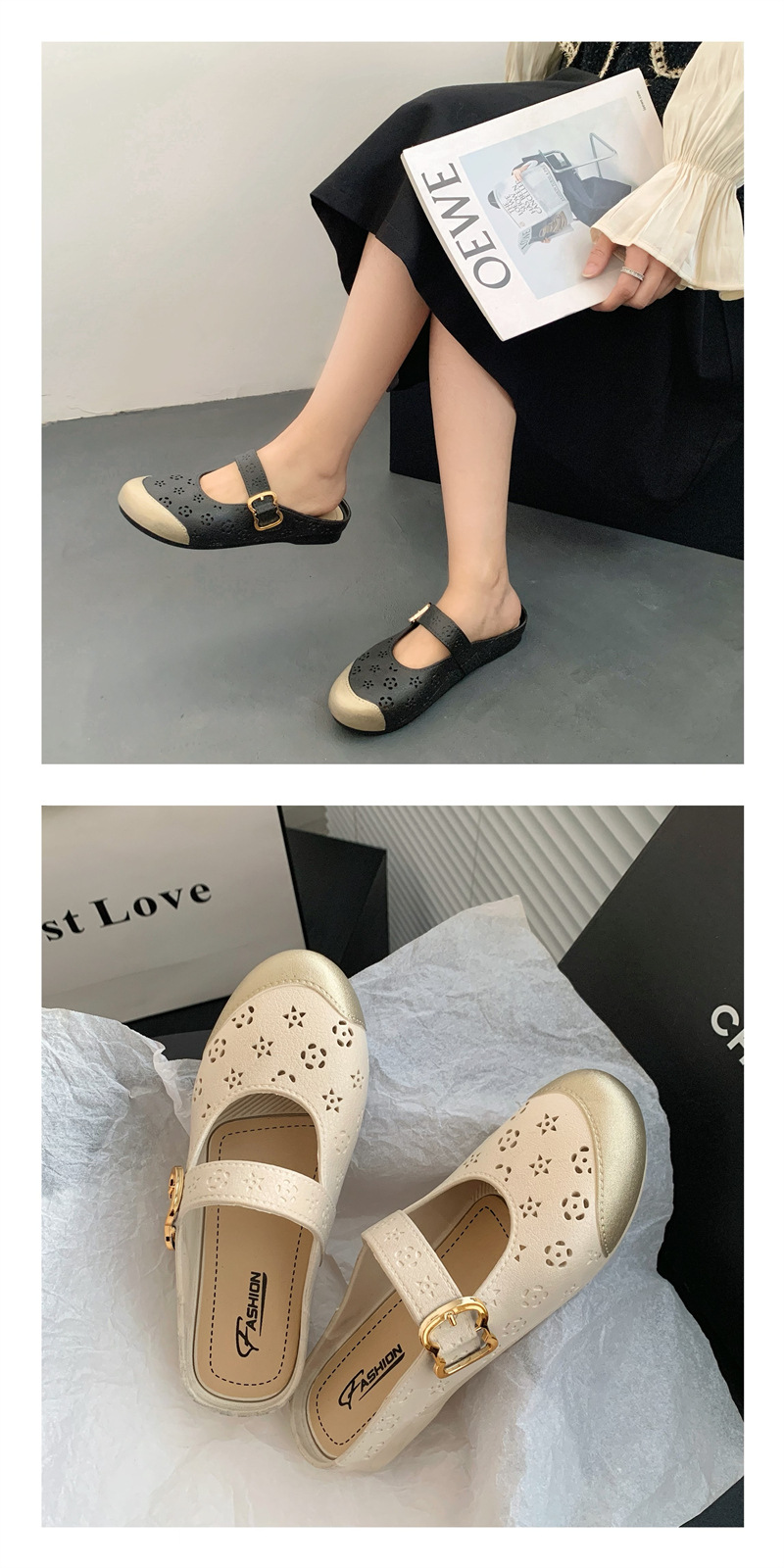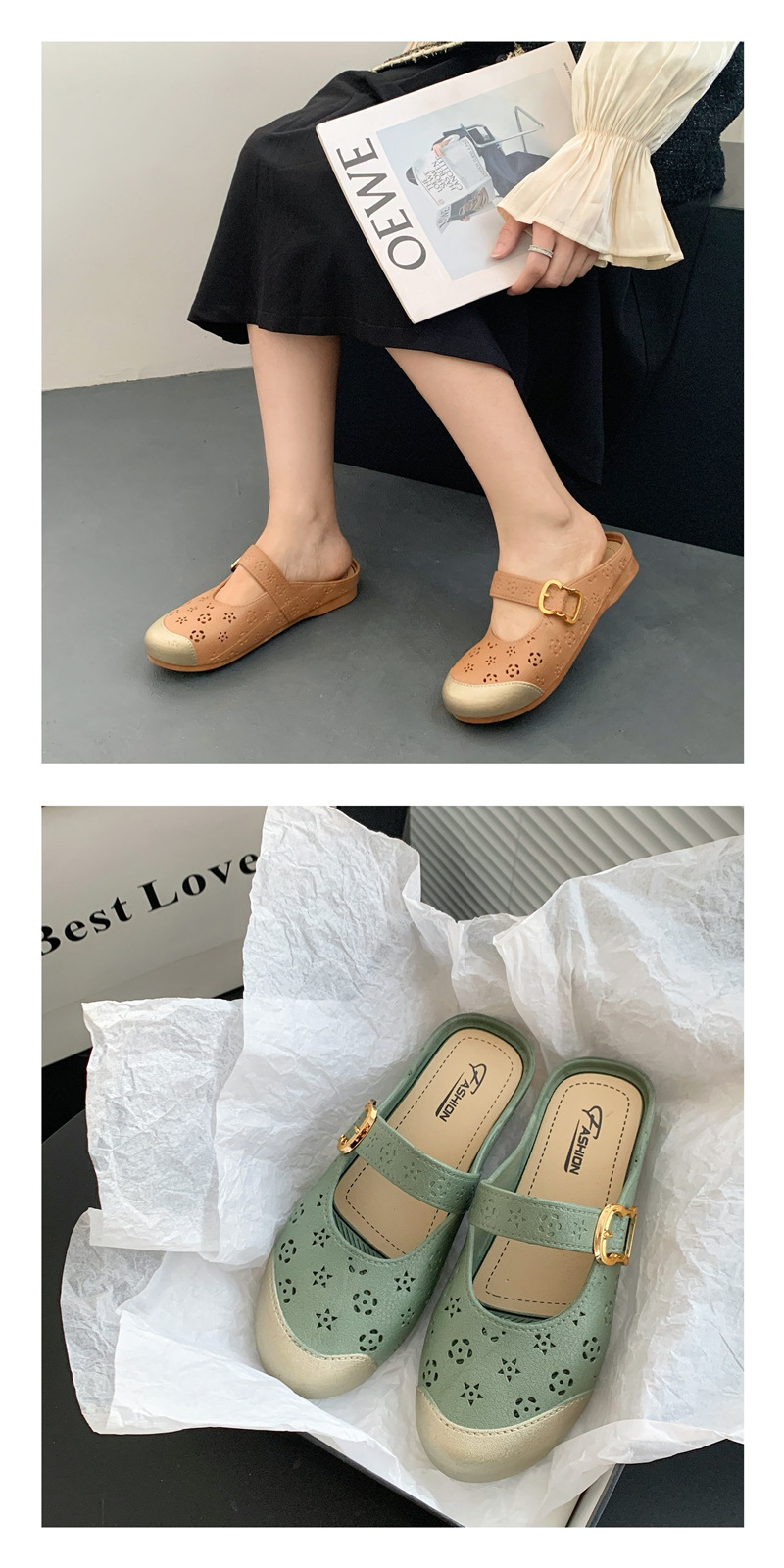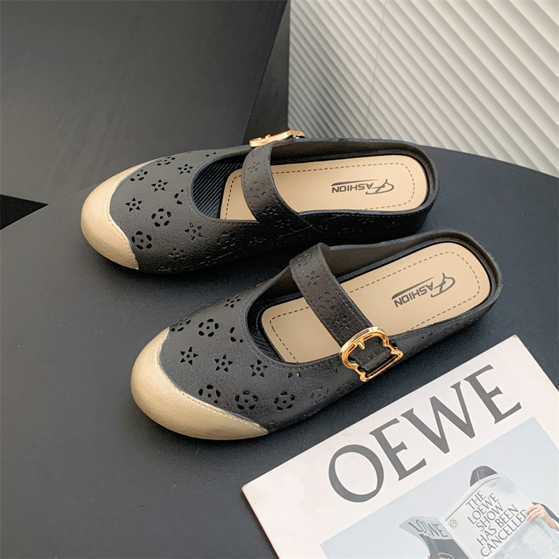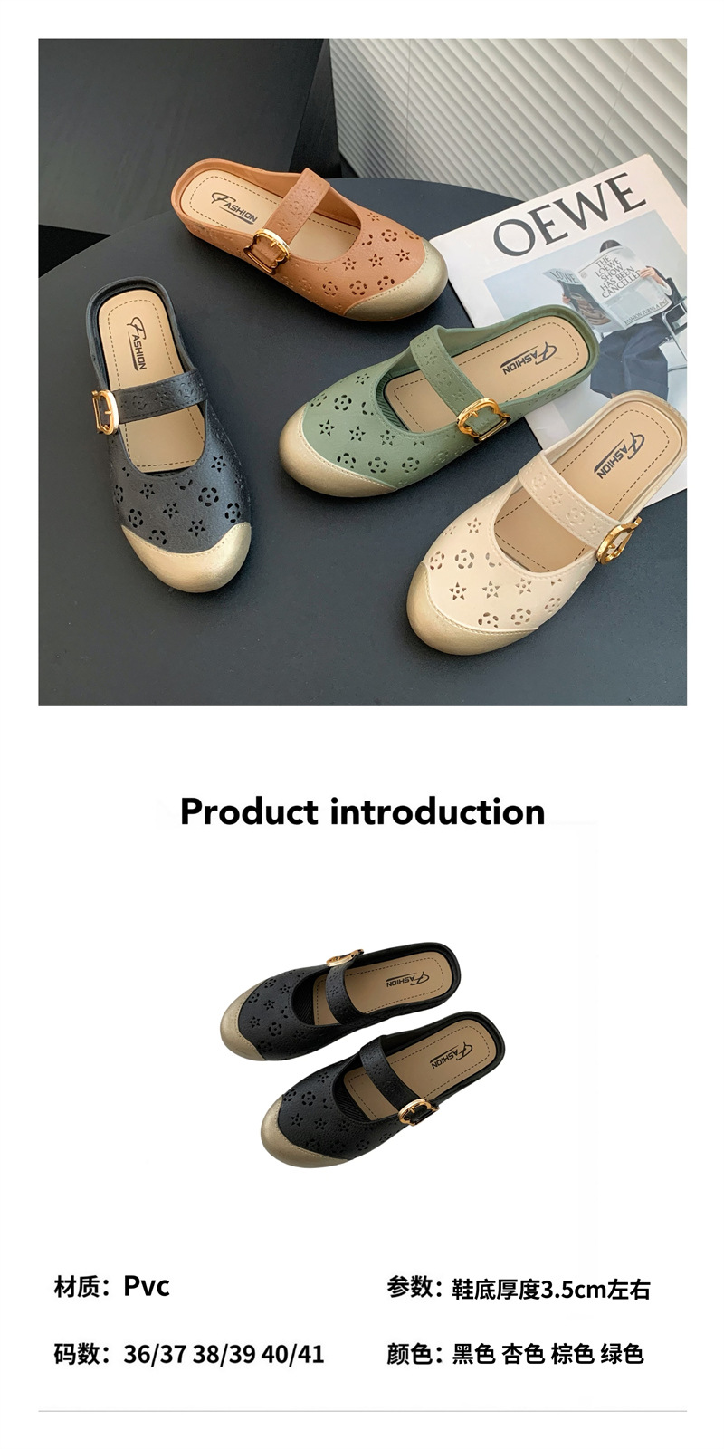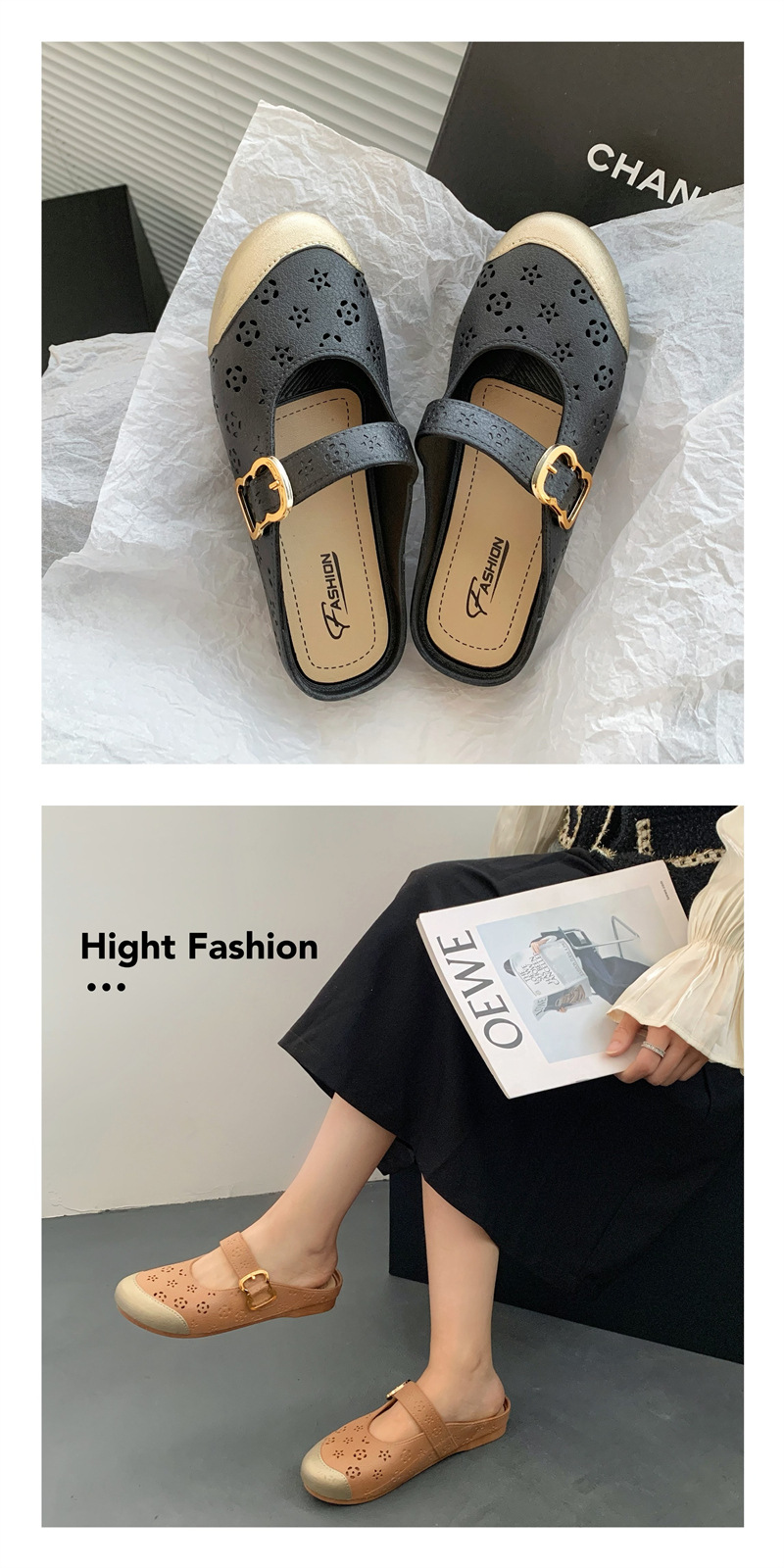 Baotou 싱글 레이어 신발 여성 아우터 착용 2024 새로운 패션 게으른 반 슬리퍼 빈 미끄럼 방지 소프트 하단 편안한 여성용 샌들