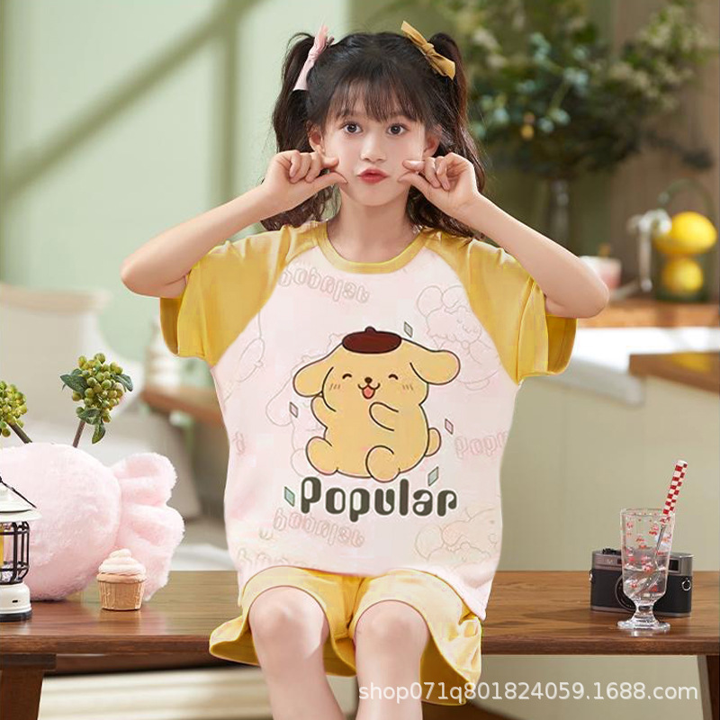 [밀크 실크] 반팔 잠옷 세트 여름 여자 반팔 아기 얇은 어린 소녀 큰 아이들 집 옷 여름스토어 가기