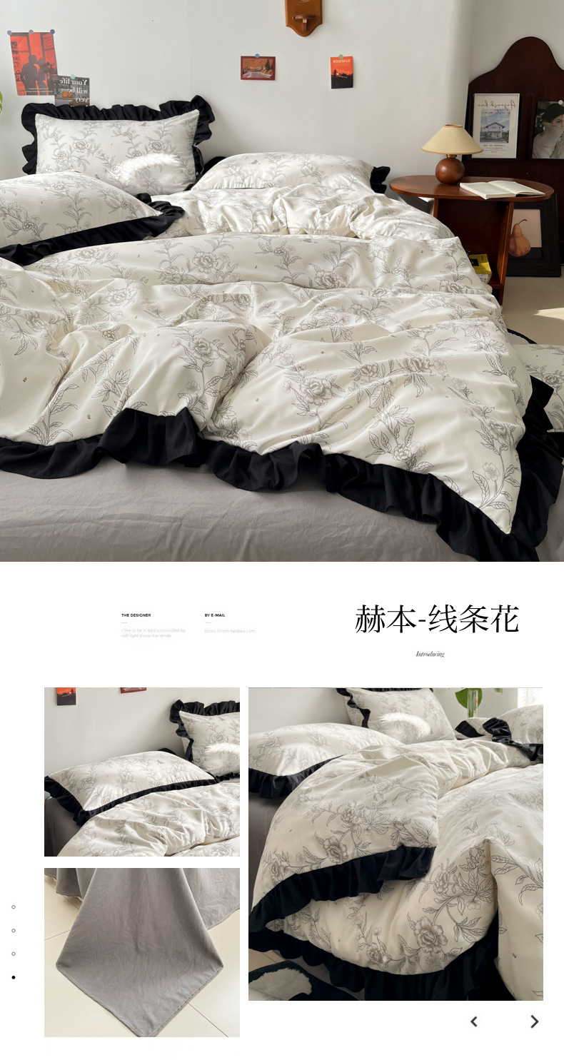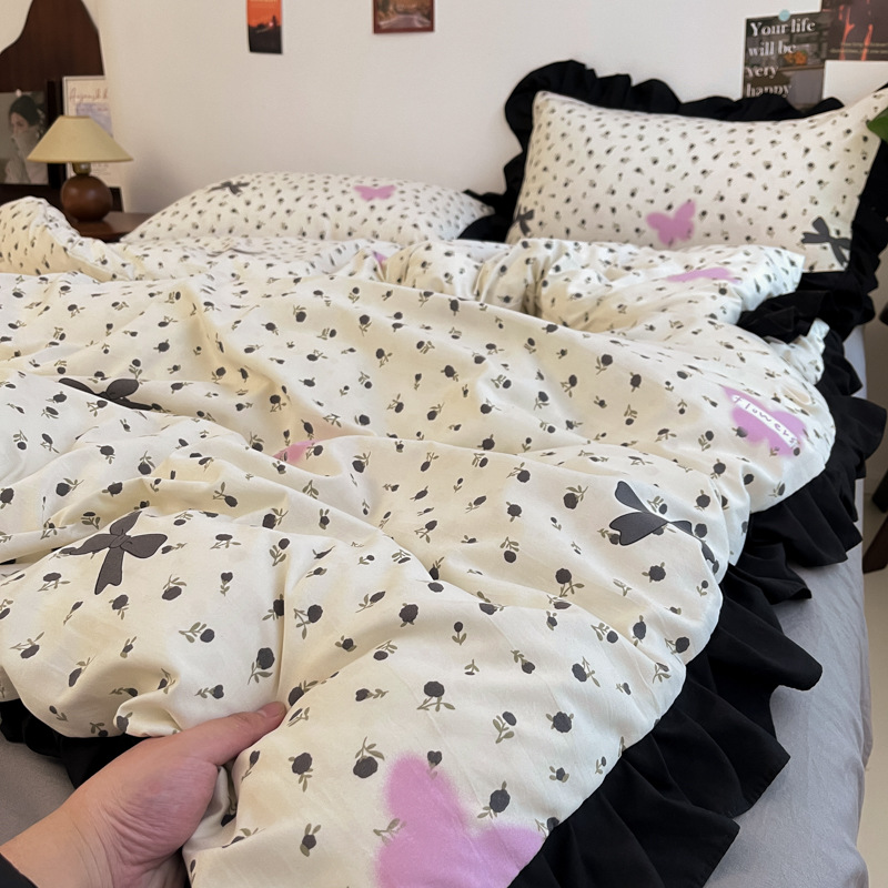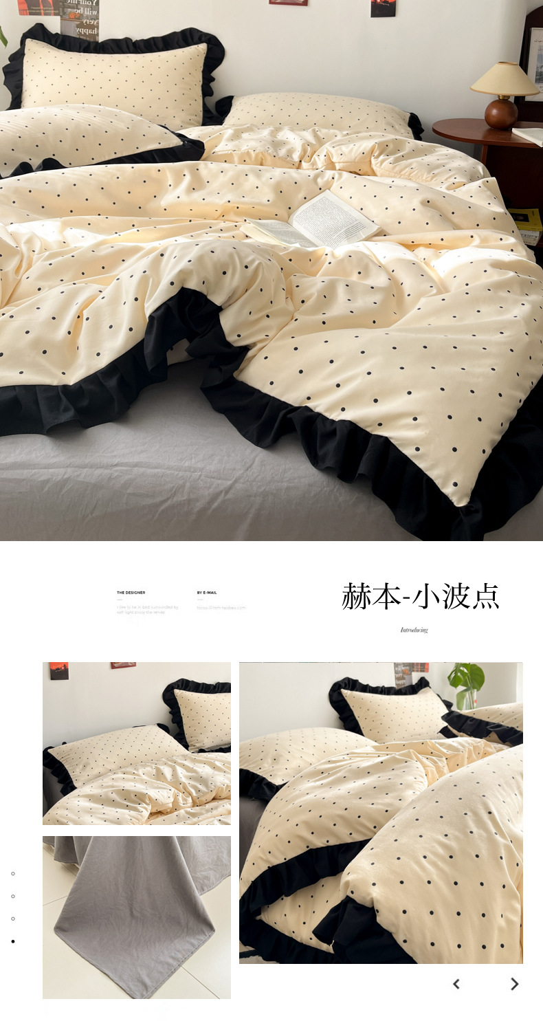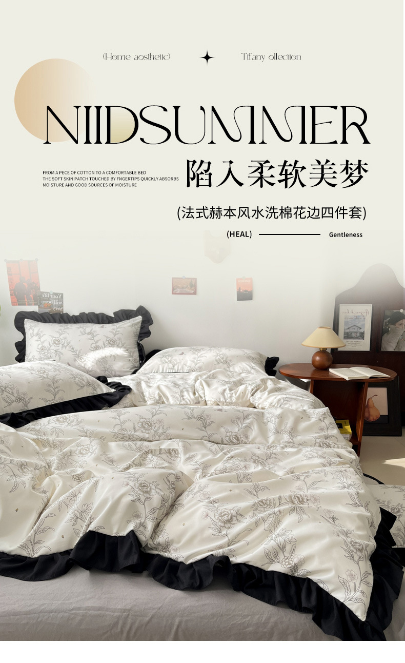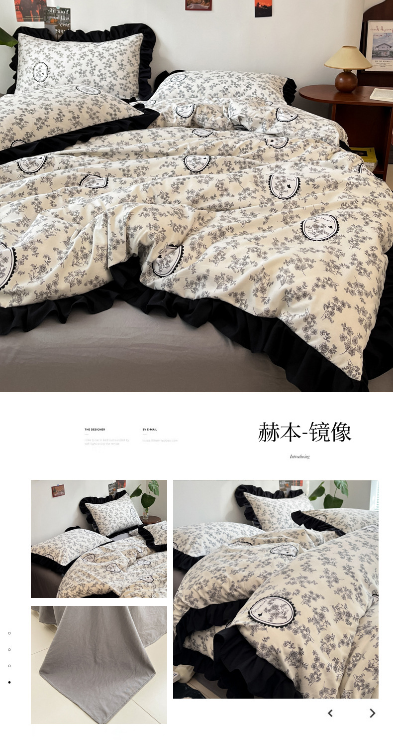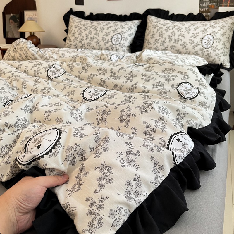 프렌치 레이스 4 피스 세트 100 세척 코튼 싱글 퀼트 커버 헵번 스타일 학생 기숙사 3 피스 세트 침대 시트 도매