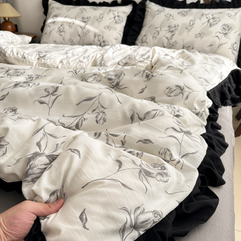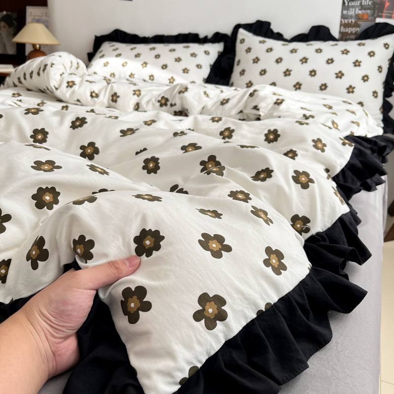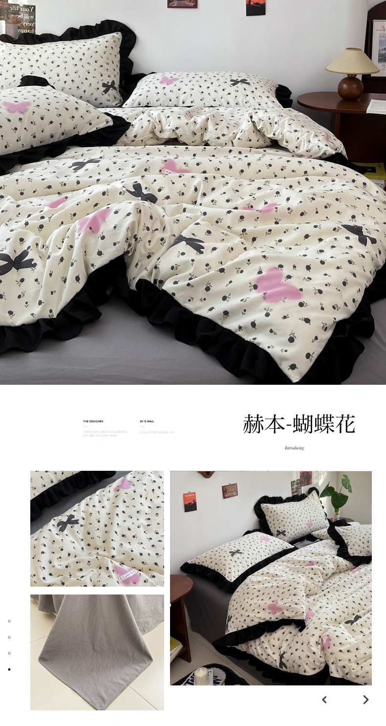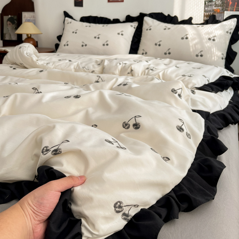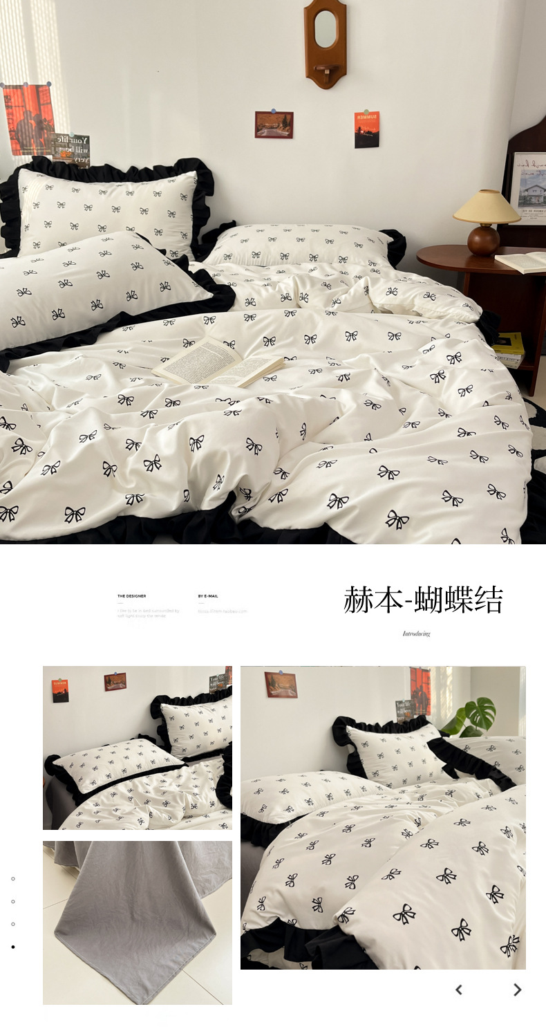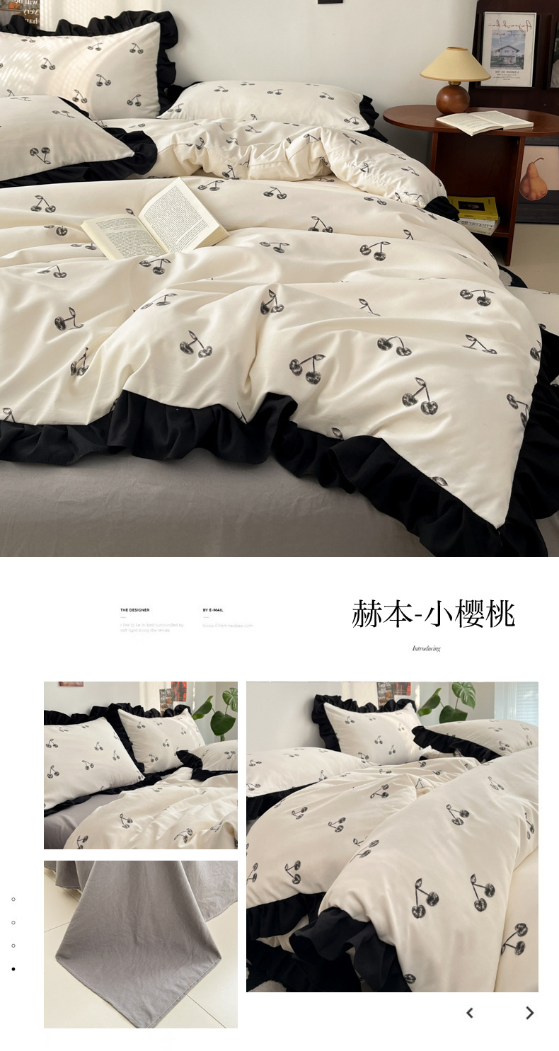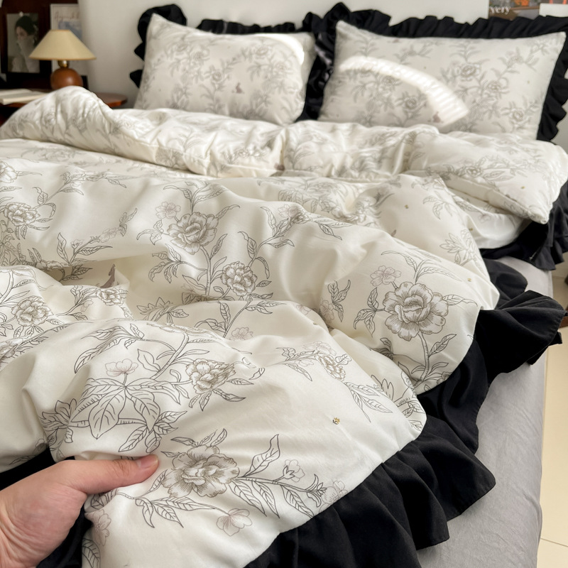 프렌치 레이스 4 피스 세트 100 세척 코튼 싱글 퀼트 커버 헵번 스타일 학생 기숙사 3 피스 세트 침대 시트 도매