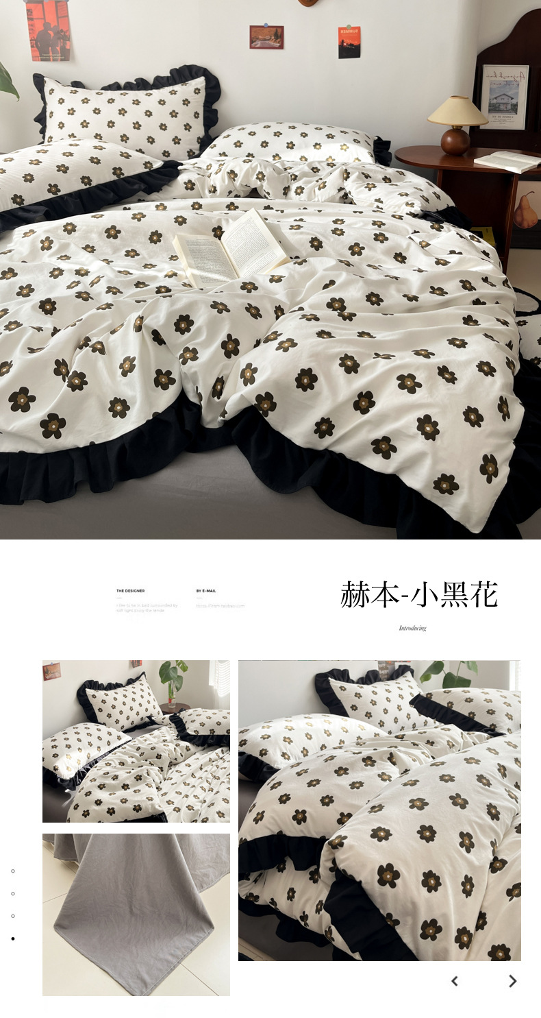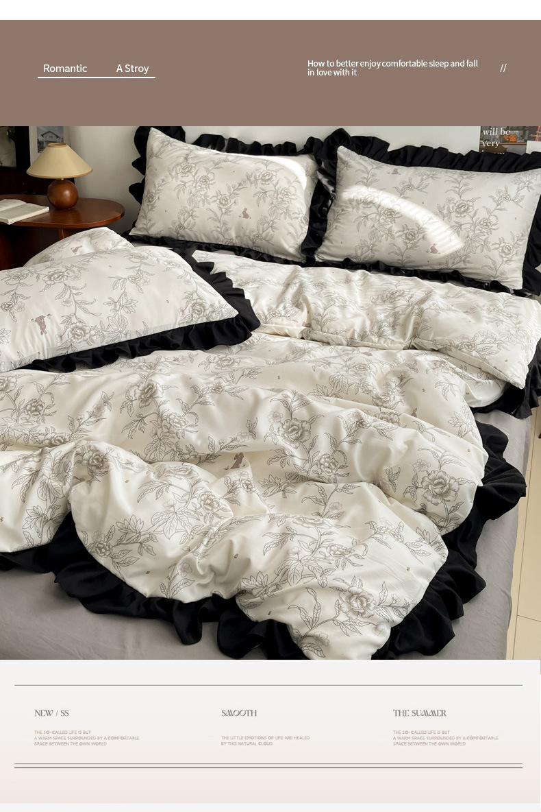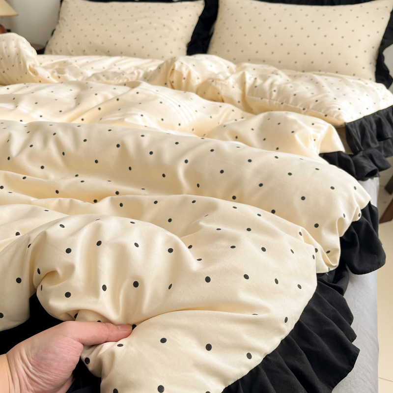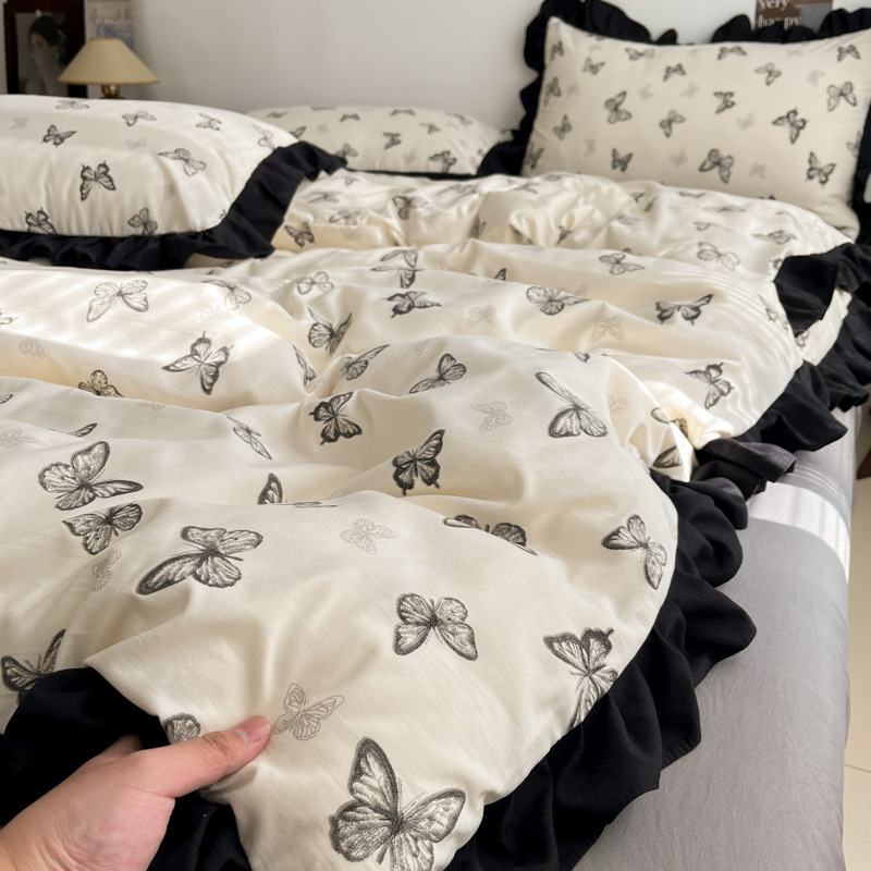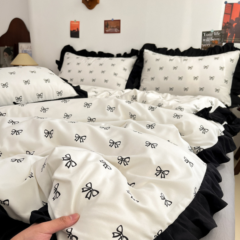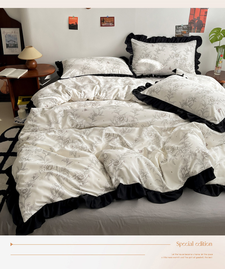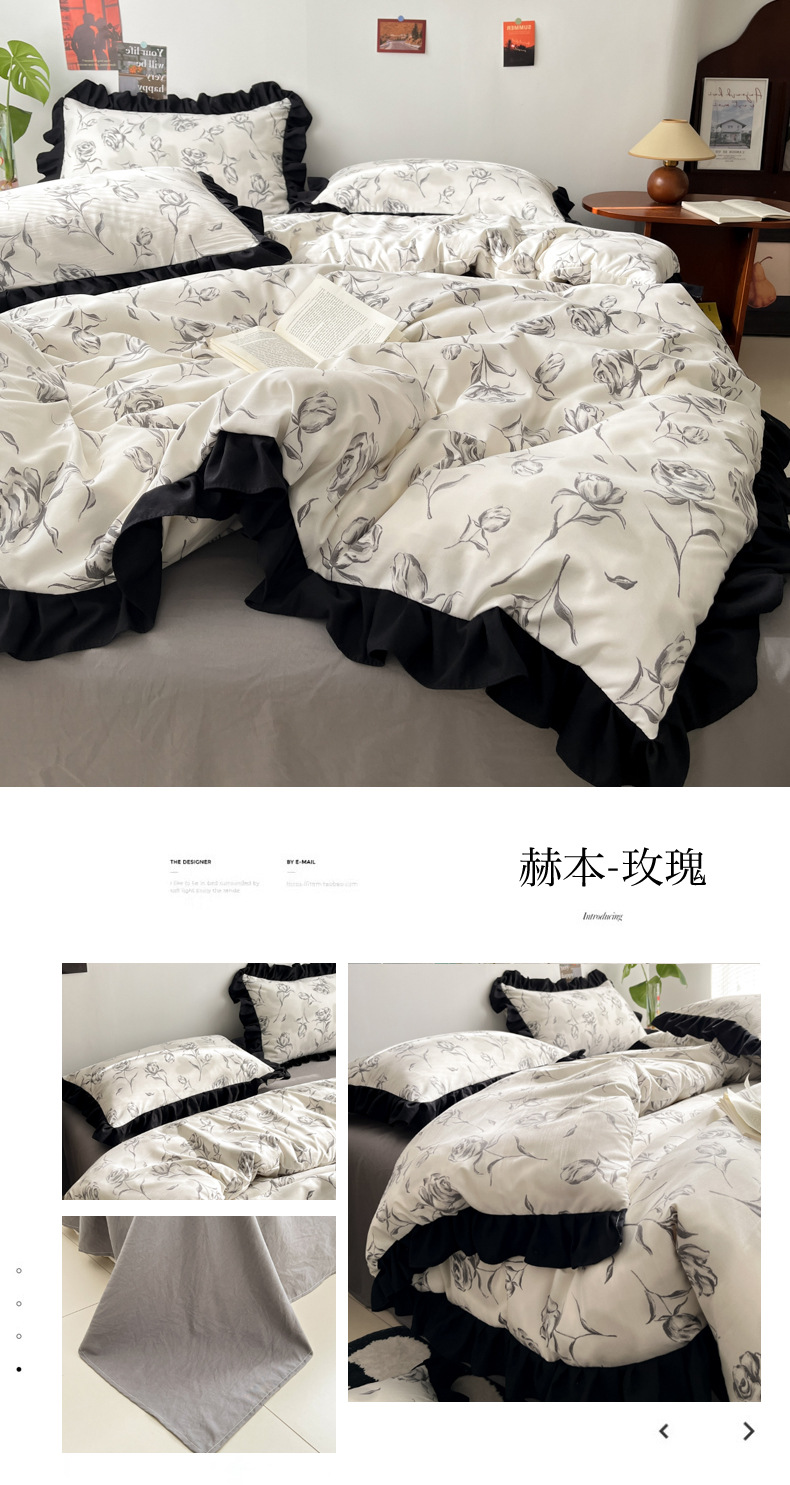 프렌치 레이스 4 피스 세트 100 세척 코튼 싱글 퀼트 커버 헵번 스타일 학생 기숙사 3 피스 세트 침대 시트 도매