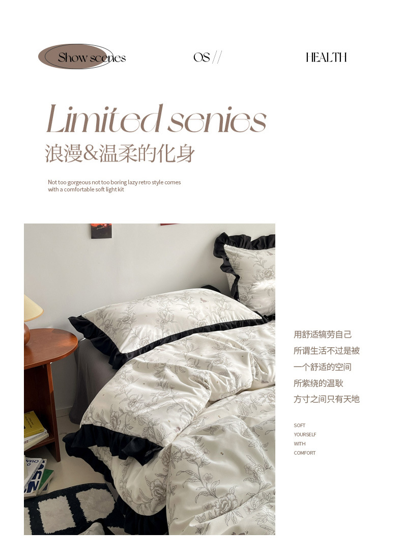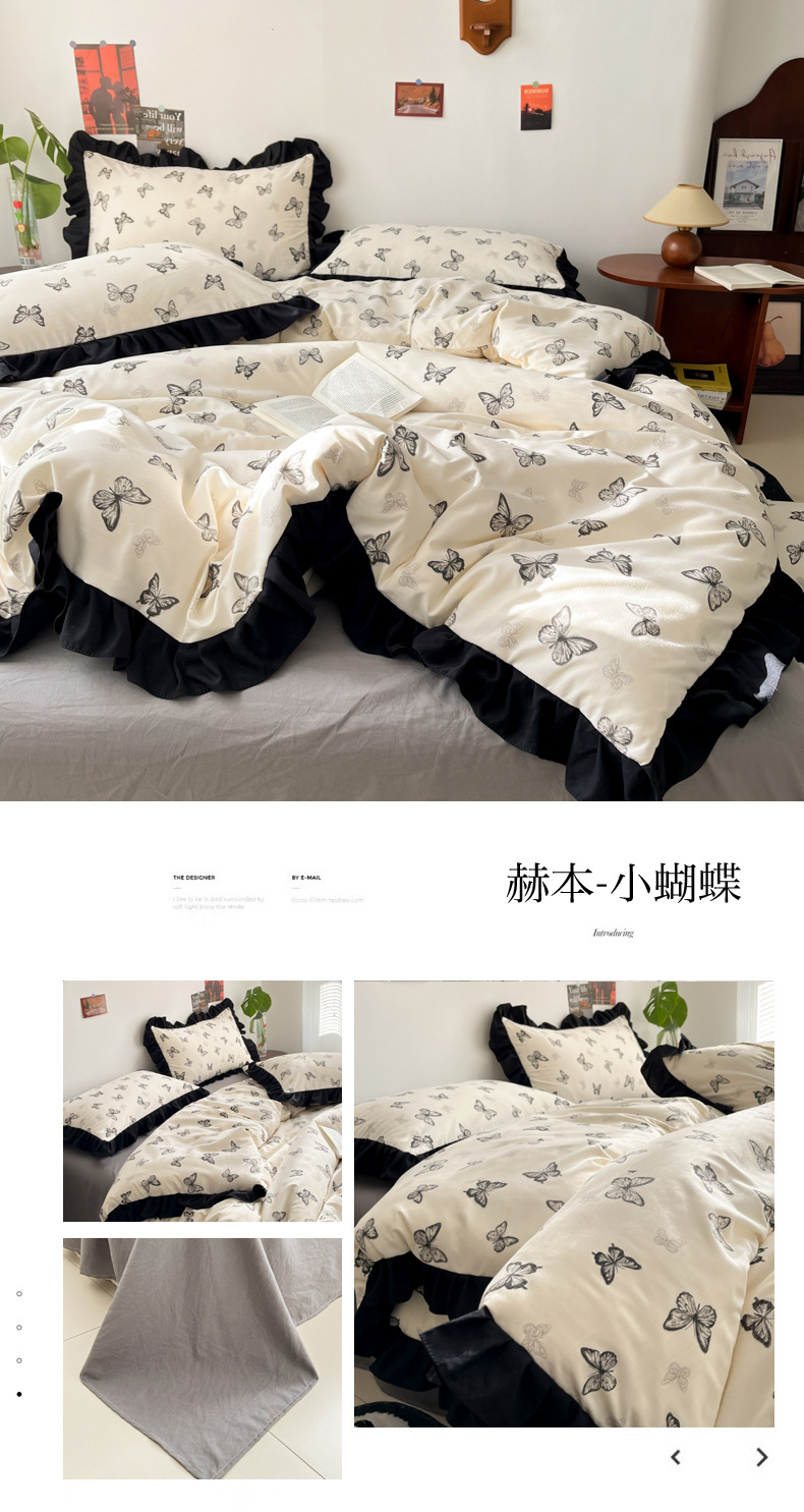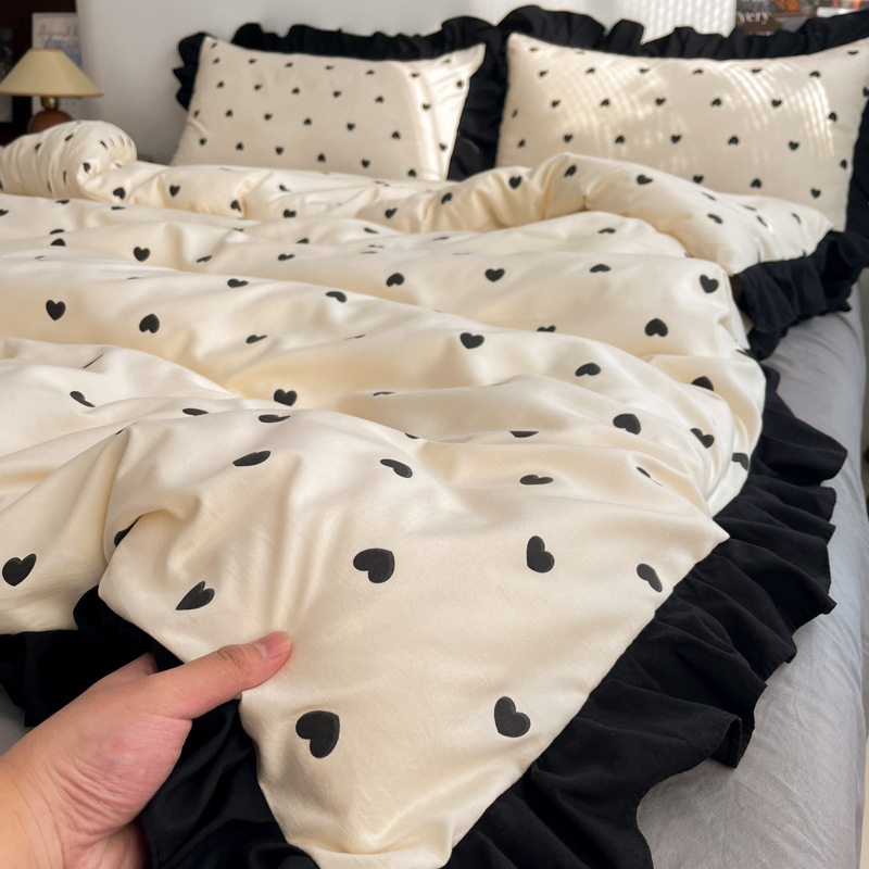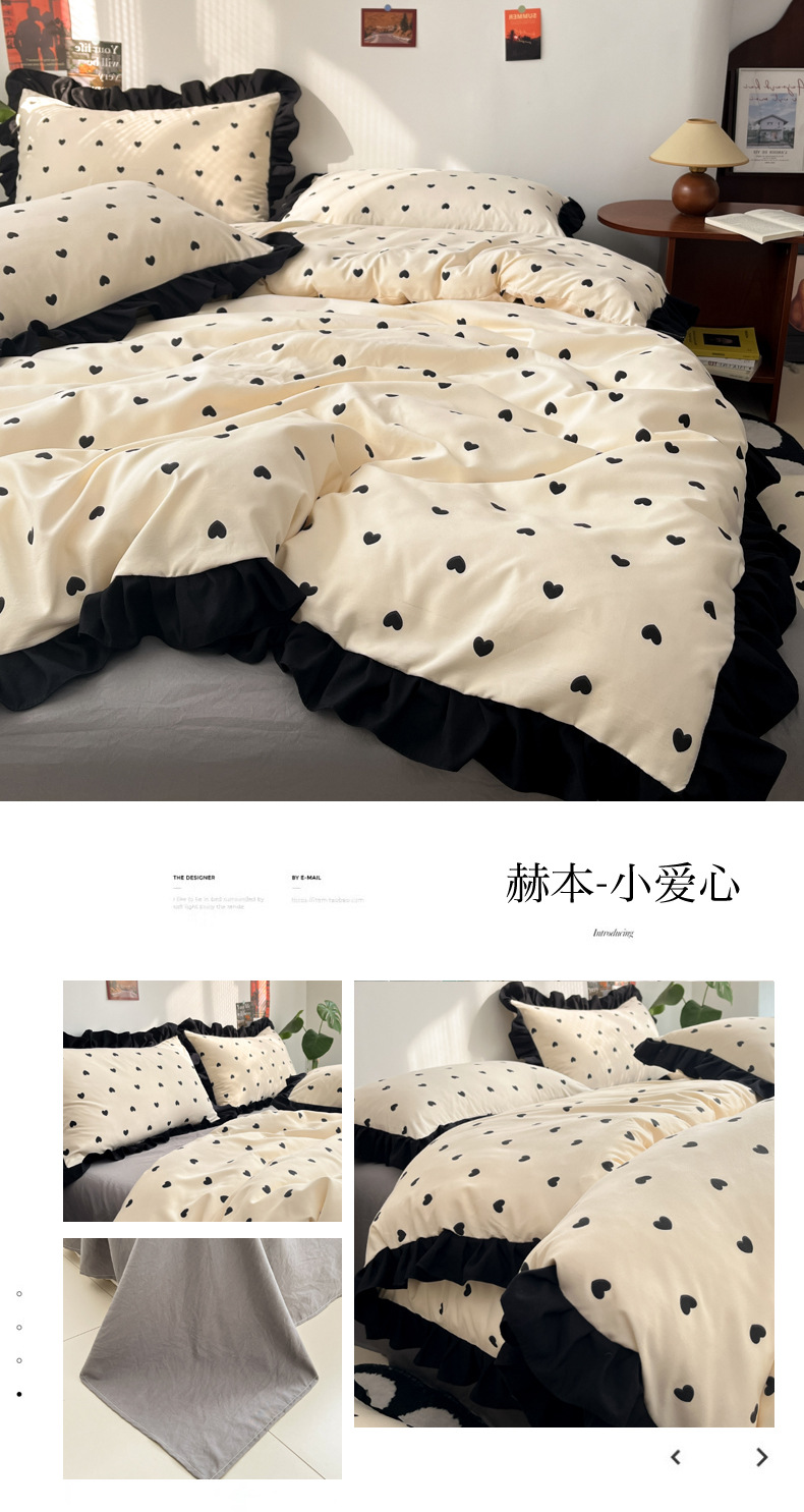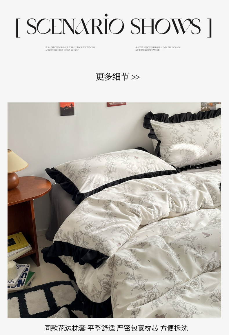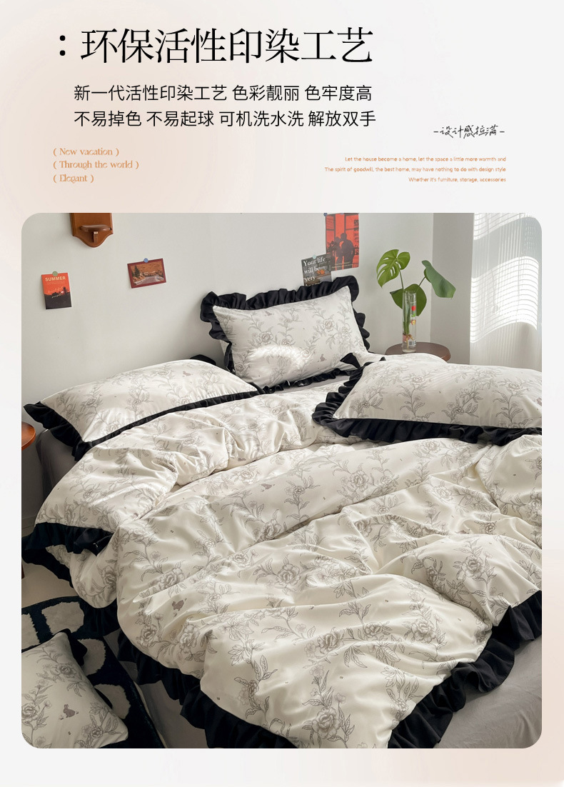 프렌치 레이스 4 피스 세트 100 세척 코튼 싱글 퀼트 커버 헵번 스타일 학생 기숙사 3 피스 세트 침대 시트 도매