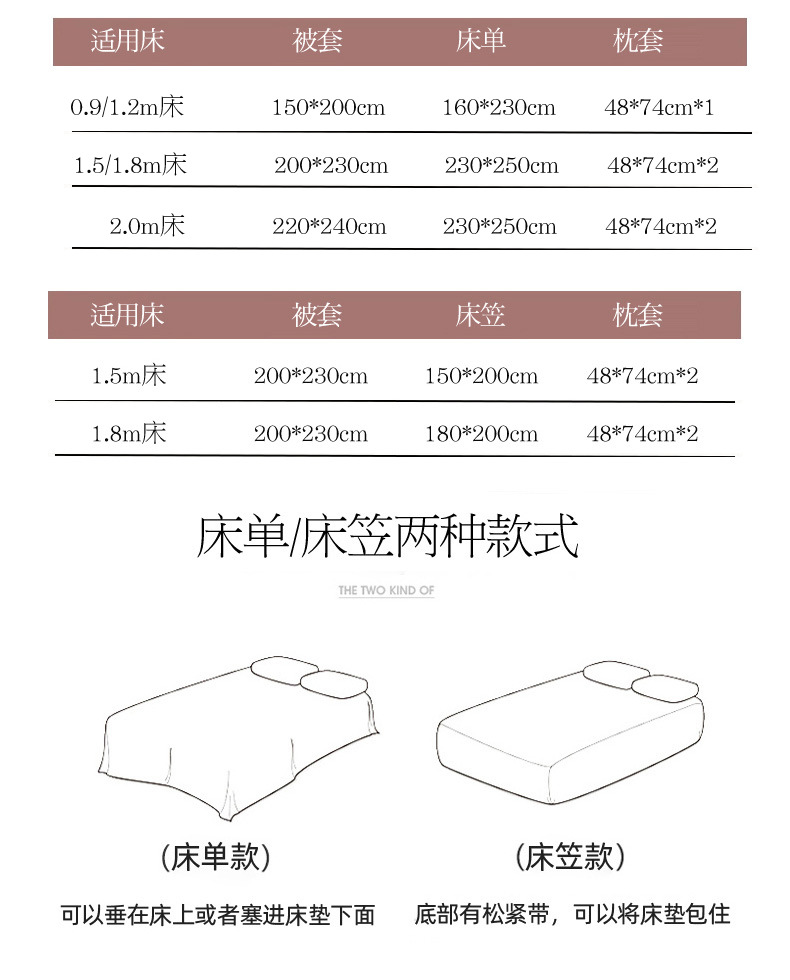 • 1.5m 침대 시트 4종 세트(이불커버 200x230cm)