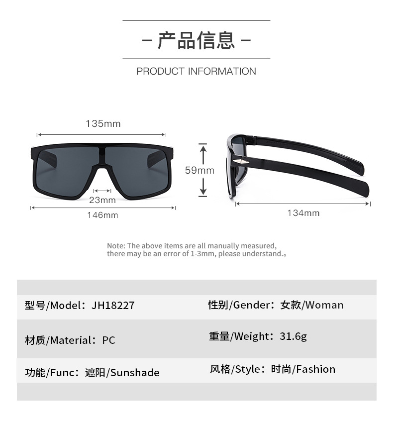 남성과 여성을위한 인터넷 트렌디 한 대형 프레임 원피스 선글라스 고급 감지 자외선 방지 유럽과 미국의 성격 비행가 선글라스스토어 가기