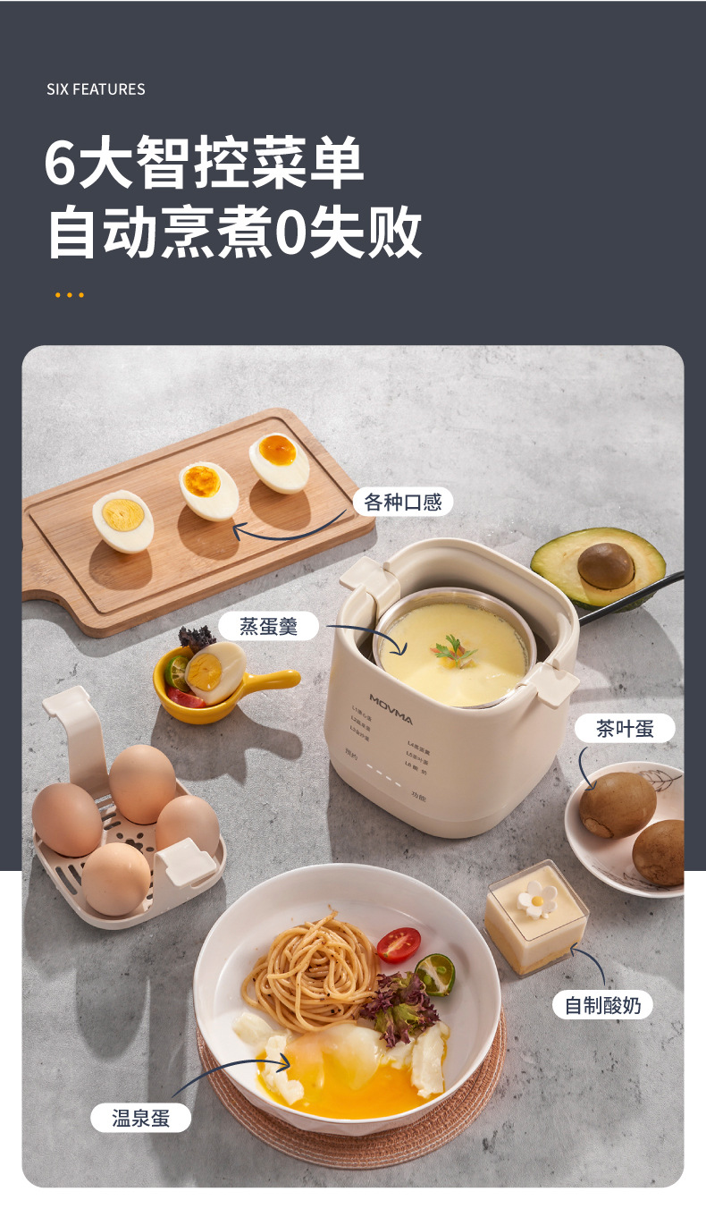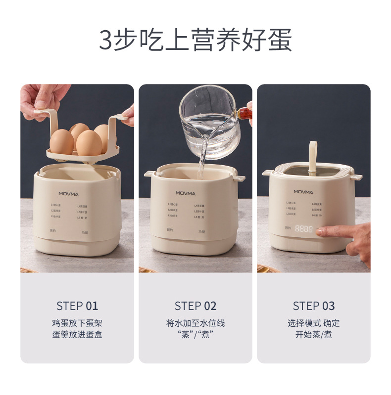 MOVMA 계란 밥솥 자동 전원 끄기 기숙사 아침 식사 계란 밥솥 다기능 가정용 소형 계란 밥솥