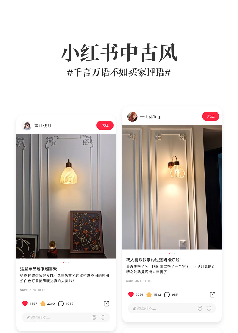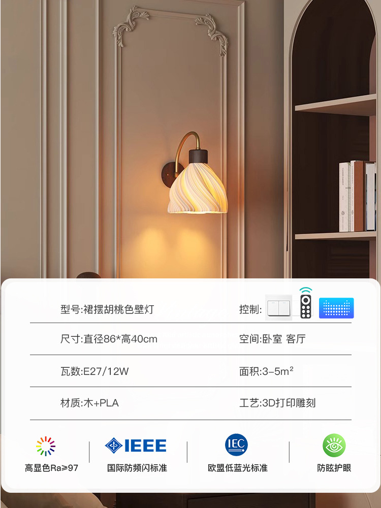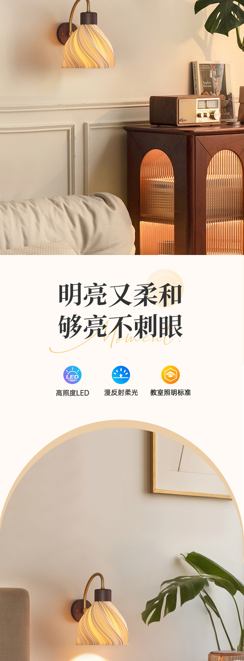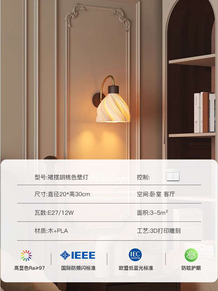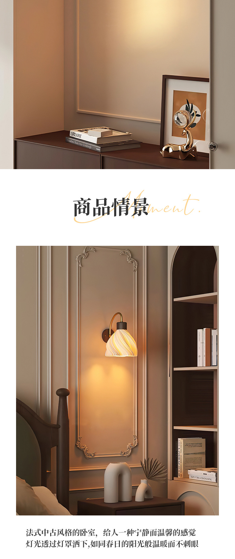 월넛 크림 프랑스 빈티지 거실 벽 램프 입구 장식 계단 램프 중동 고대 눈 보호 침실 램프스토어 가기