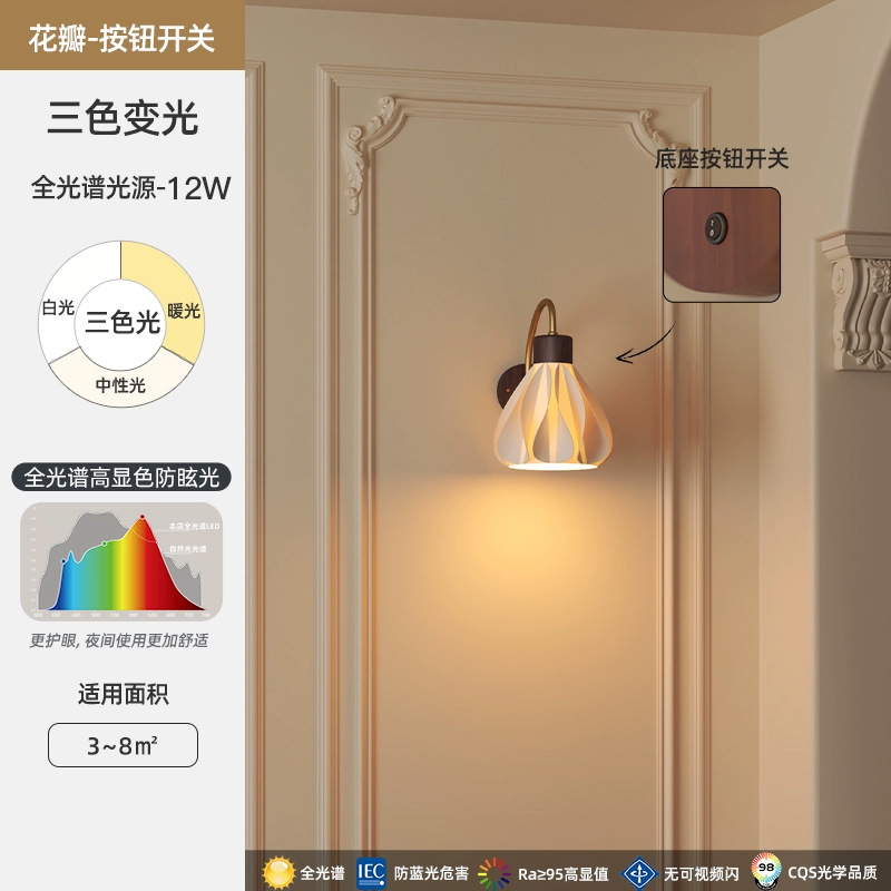 • 스위치가 없는 전체 스펙트럼 꽃잎 벽 램프 - 3색 조명