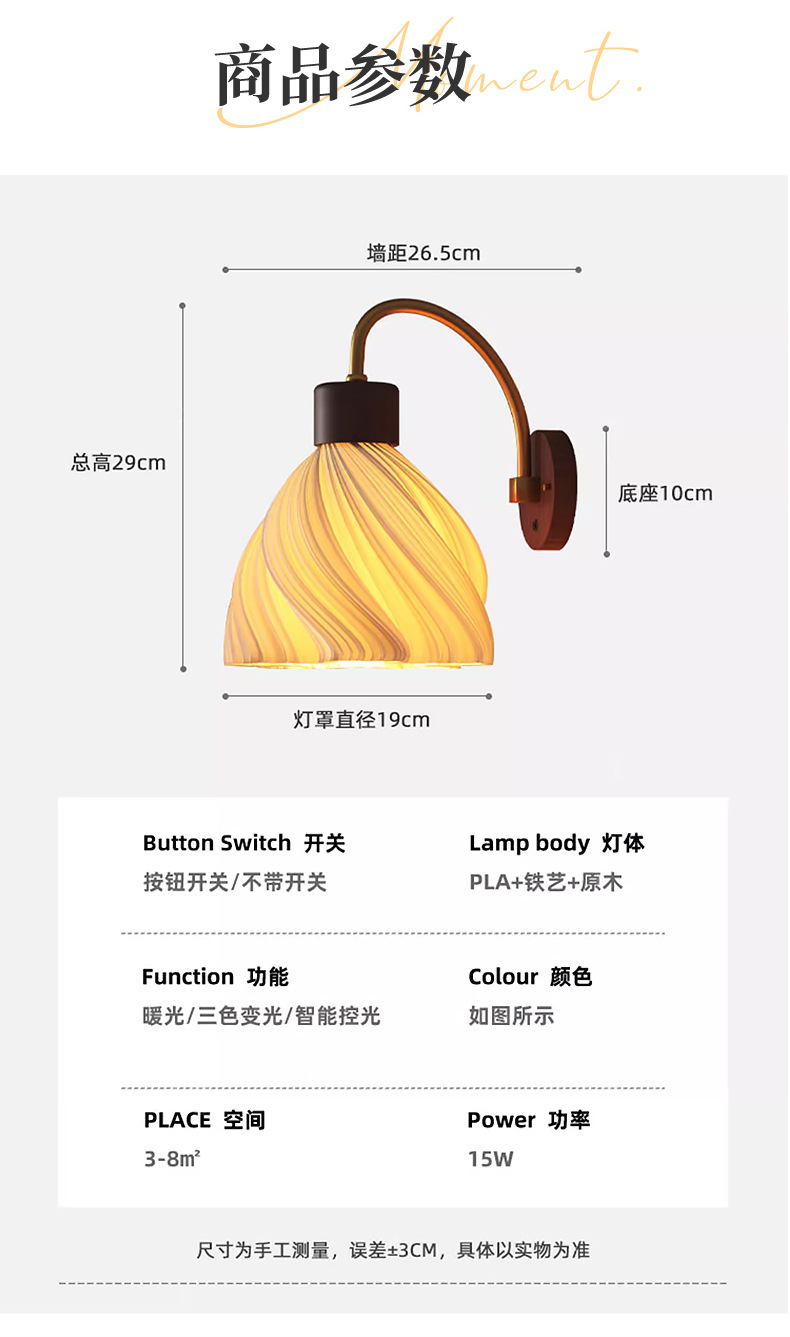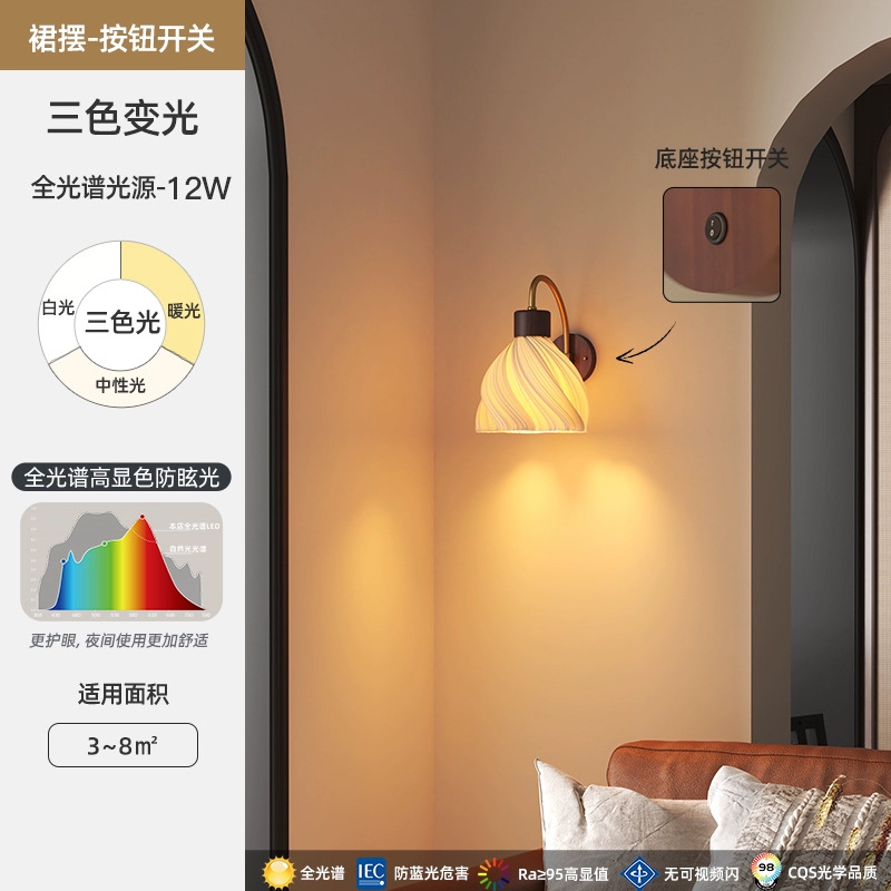 • 스위치가 있는 풀 스펙트럼 스커트 벽 램프 - 3색 조명