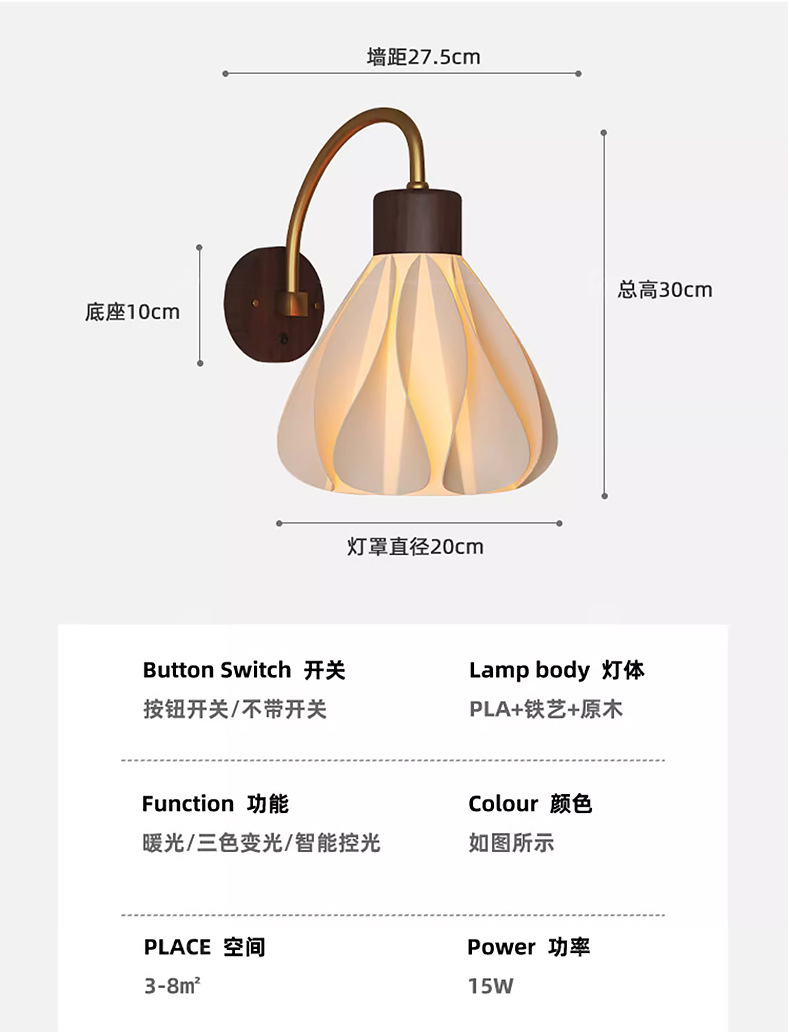 • 스위치가 있는 전체 스펙트럼 꽃잎 벽 램프 - Tmall 스마트