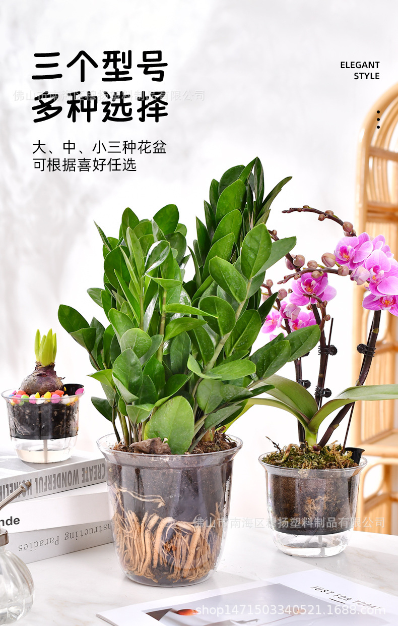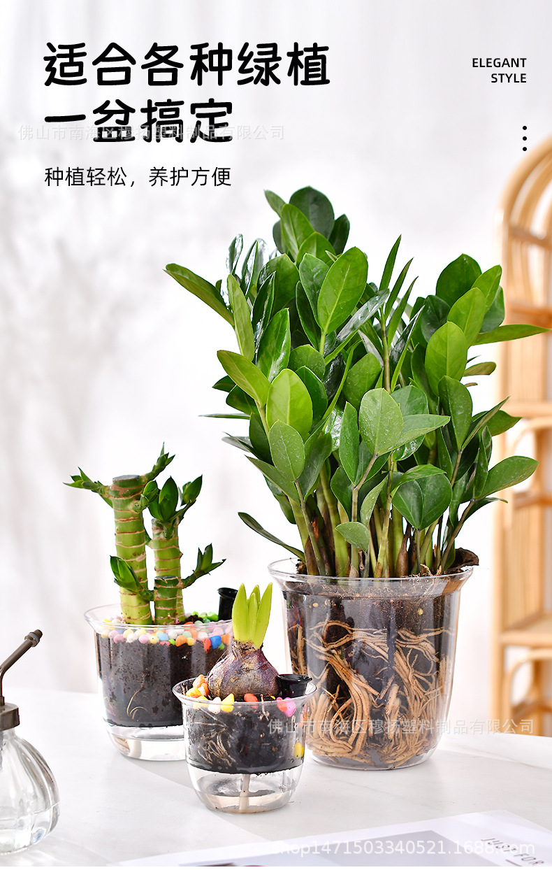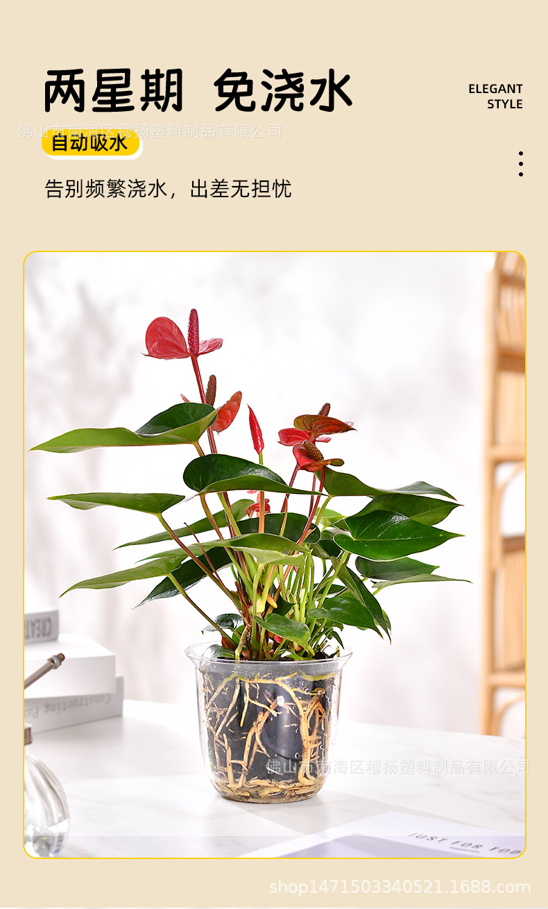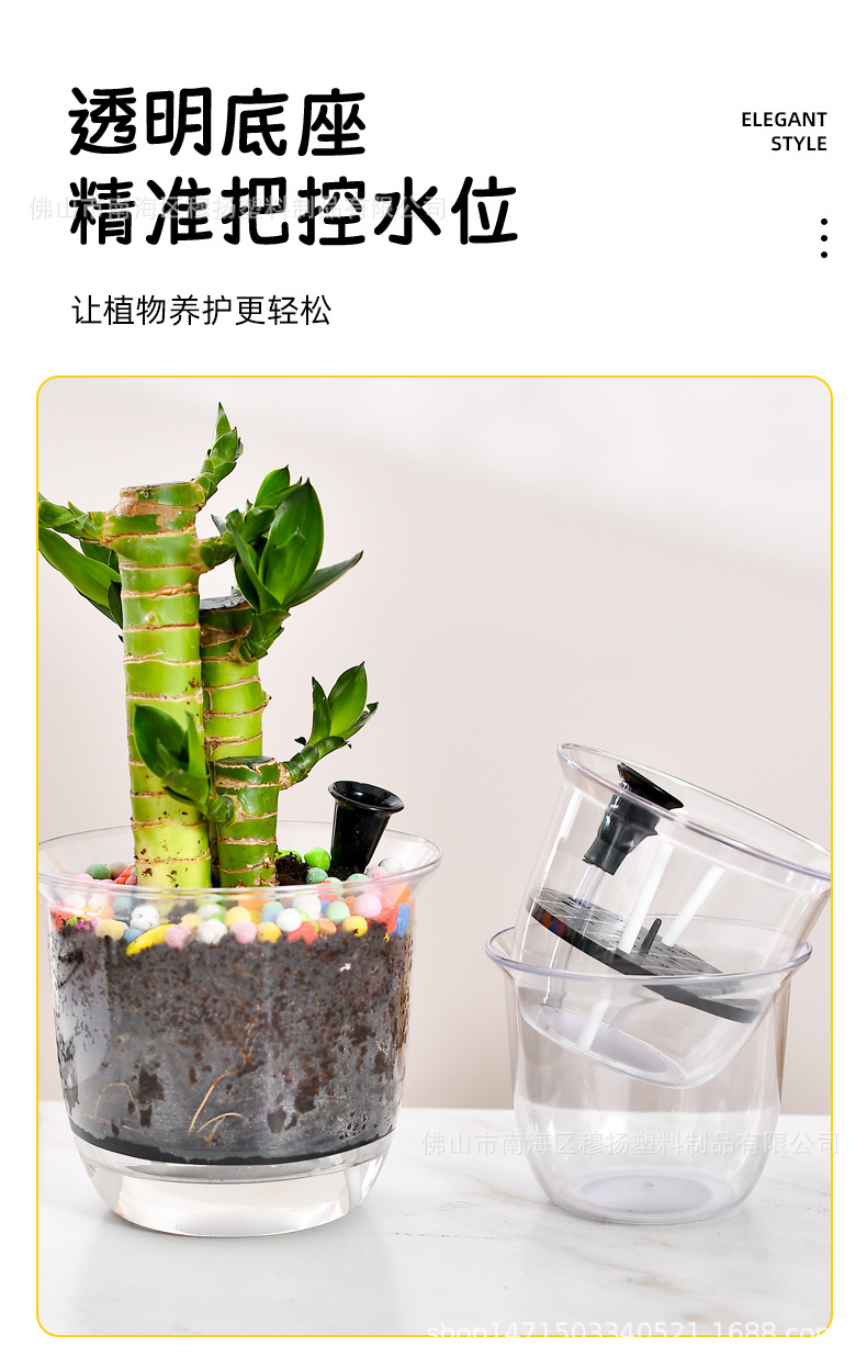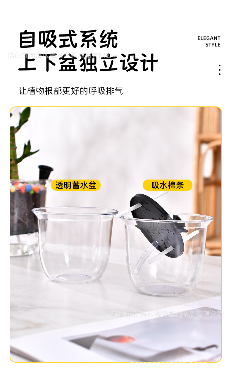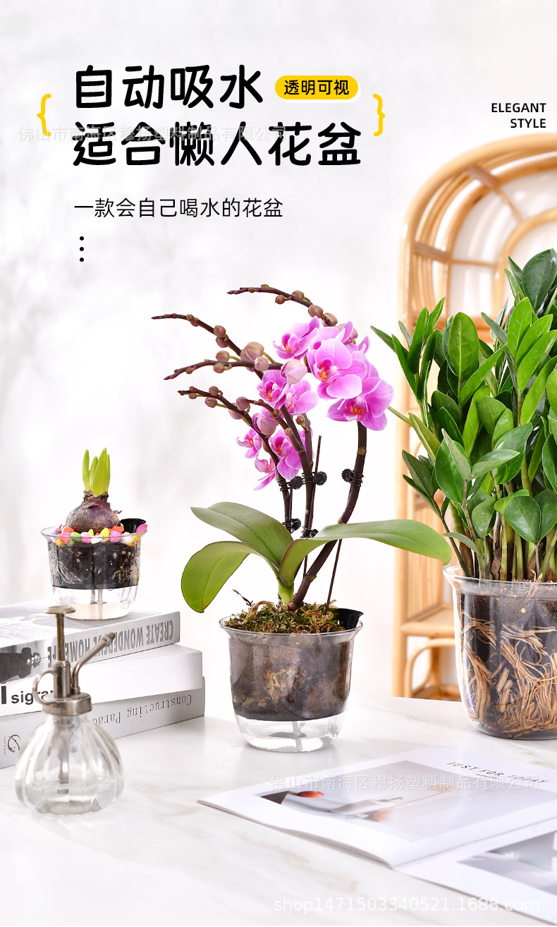 높은 투명한 게으른 자기 흡수 꽃 냄비 플라스틱 모조 유리 수경 기구 라운드 녹색 장미 식물 물 꽃병스토어 가기