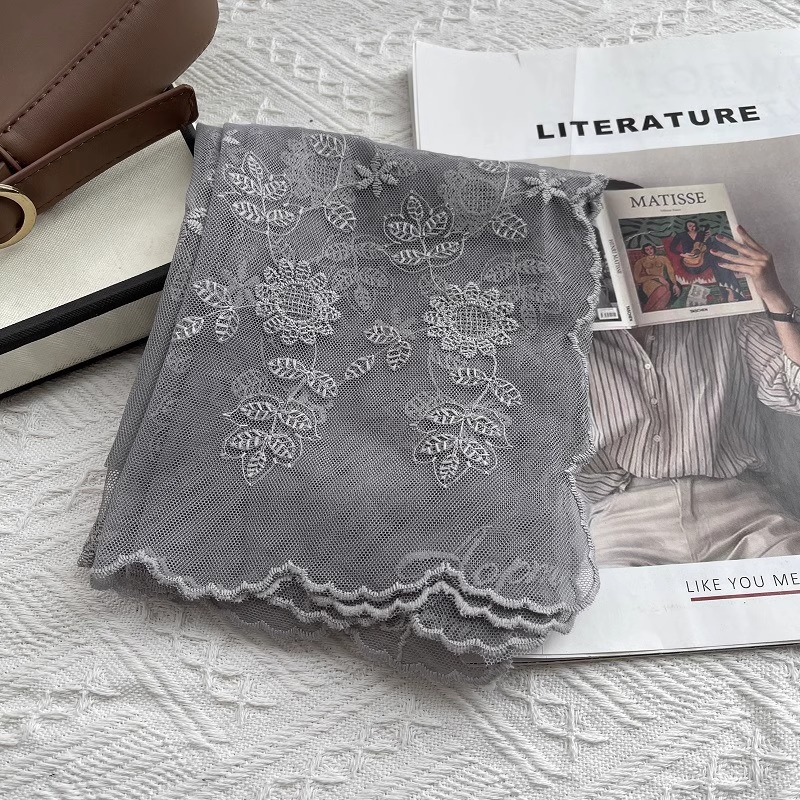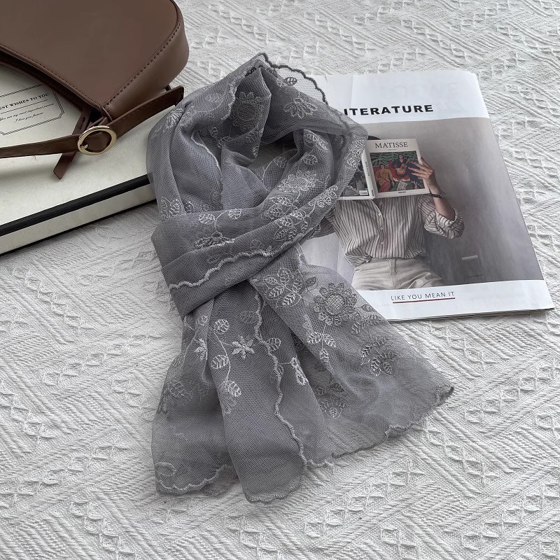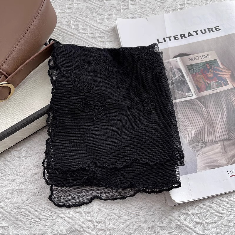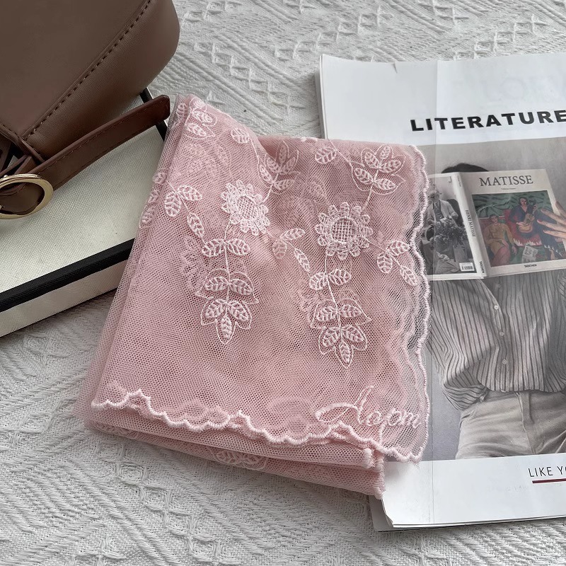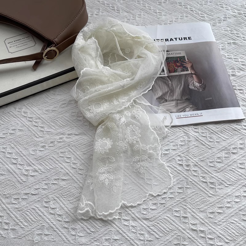 한국식 분위기 여름 예술 레트로 올매치 레이스 레이스 작은 실크 스카프 자수 헤어 밴드 머리띠 스카프 여성 스카프