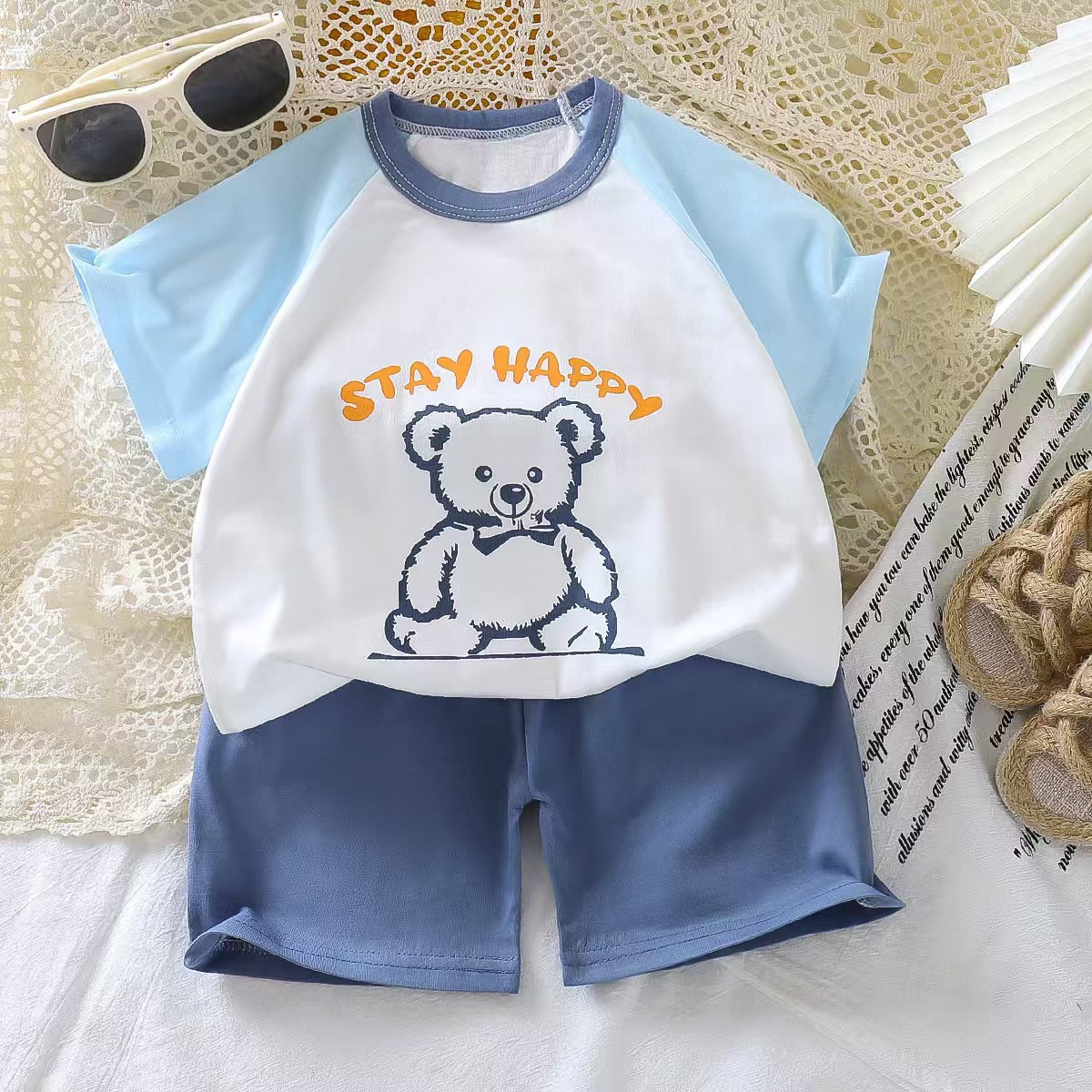 어린이 반팔 세트 면 여자 여름복 소년 티셔츠 아기 옷 한국식 아동복 반바지 스포츠스토어 가기