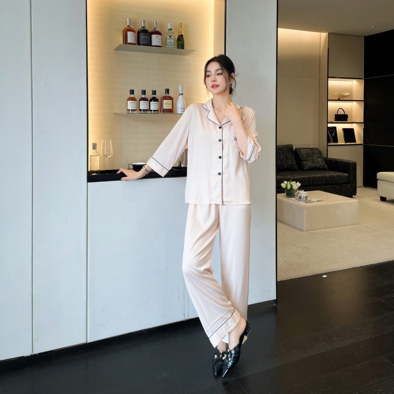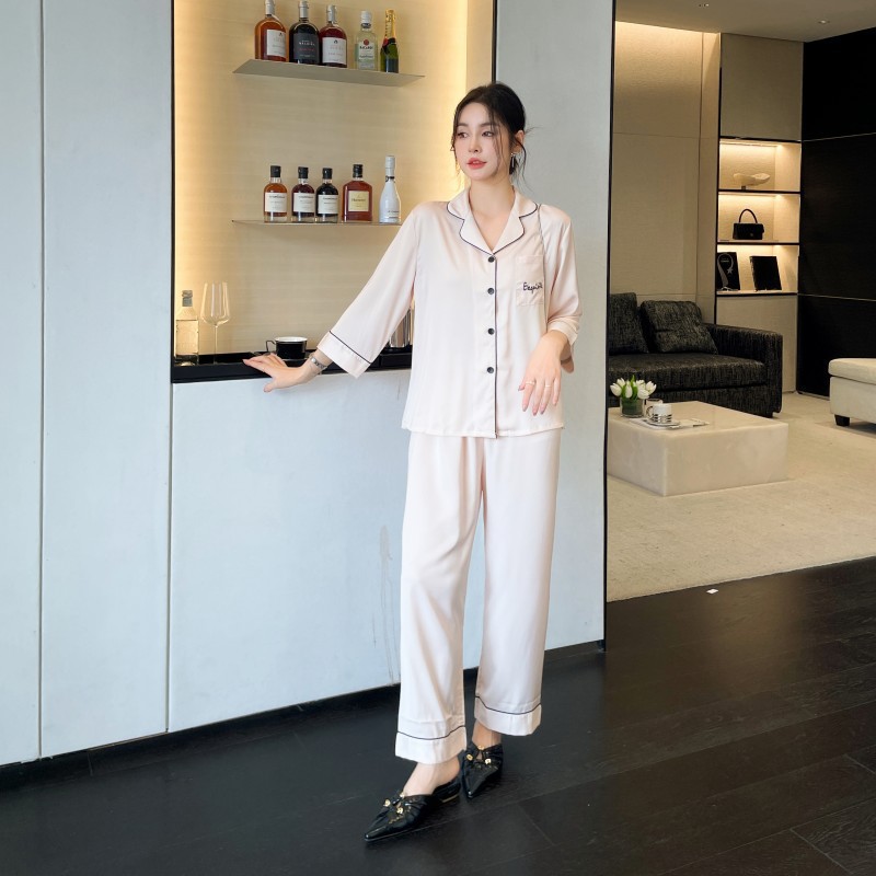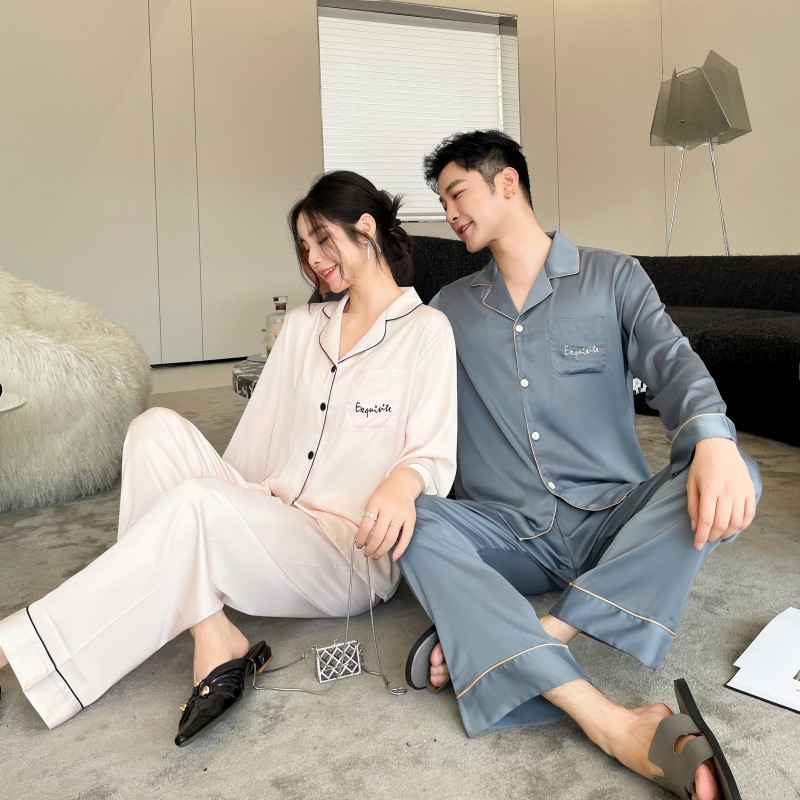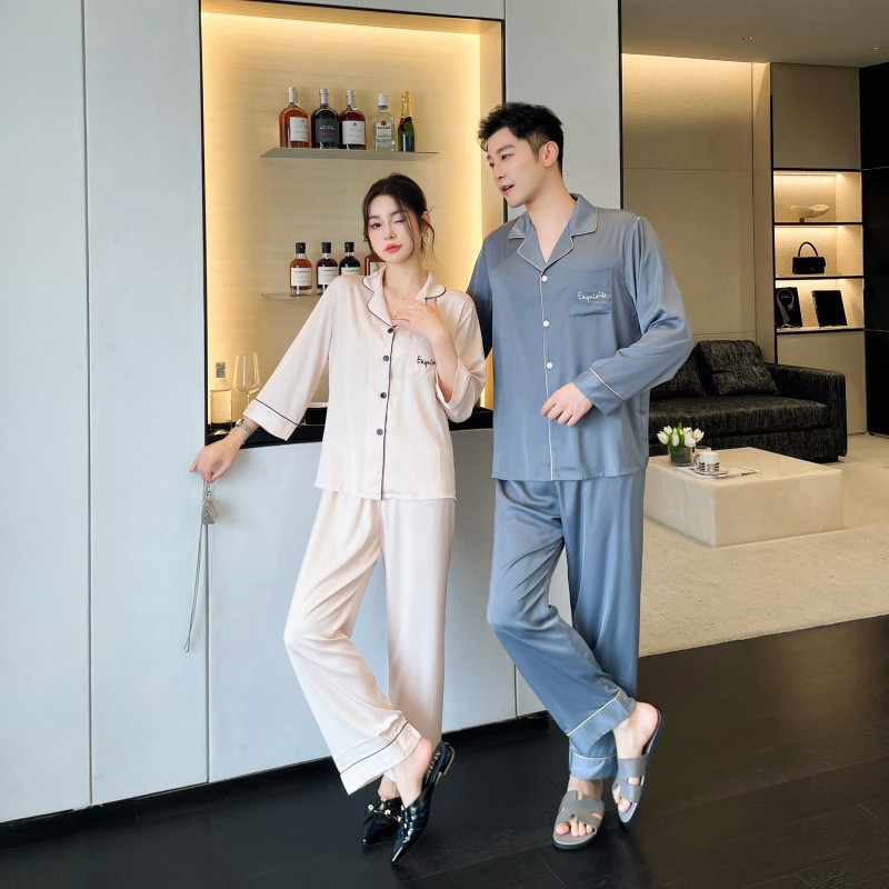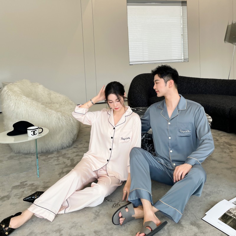 커플 잠옷 여성의 가을과 겨울 아이스 실크 2024 새로운 남성 자수 긴 소매 얇은 홈 옷 누에 실크스토어 가기