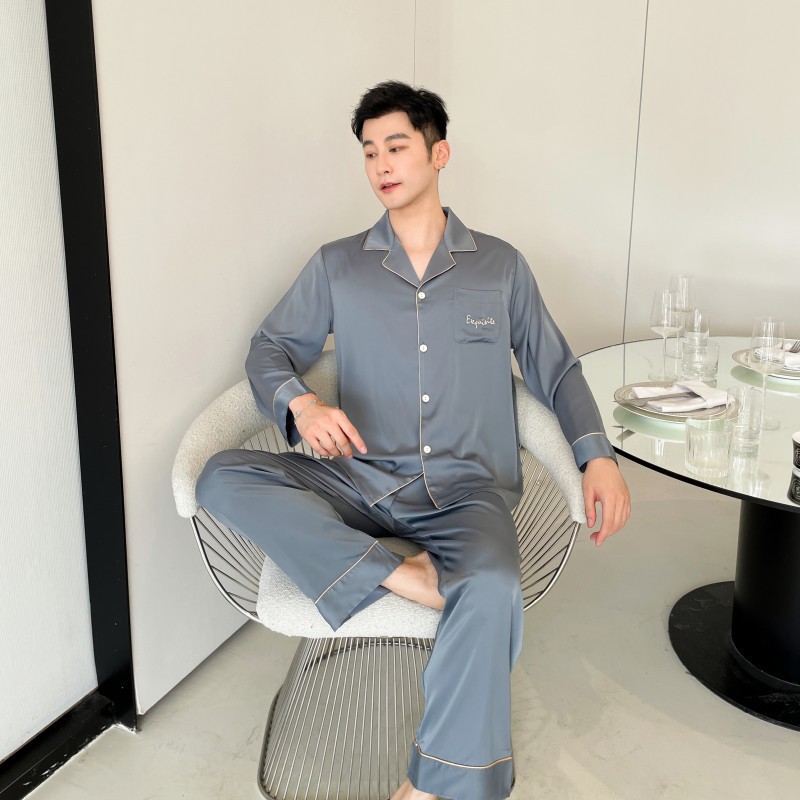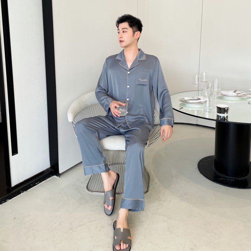 • 아이스 실크 자수 커플 슈트 남성 블루