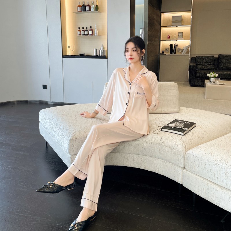 • 아이스 실크 자수 커플 세트 여성 핑크