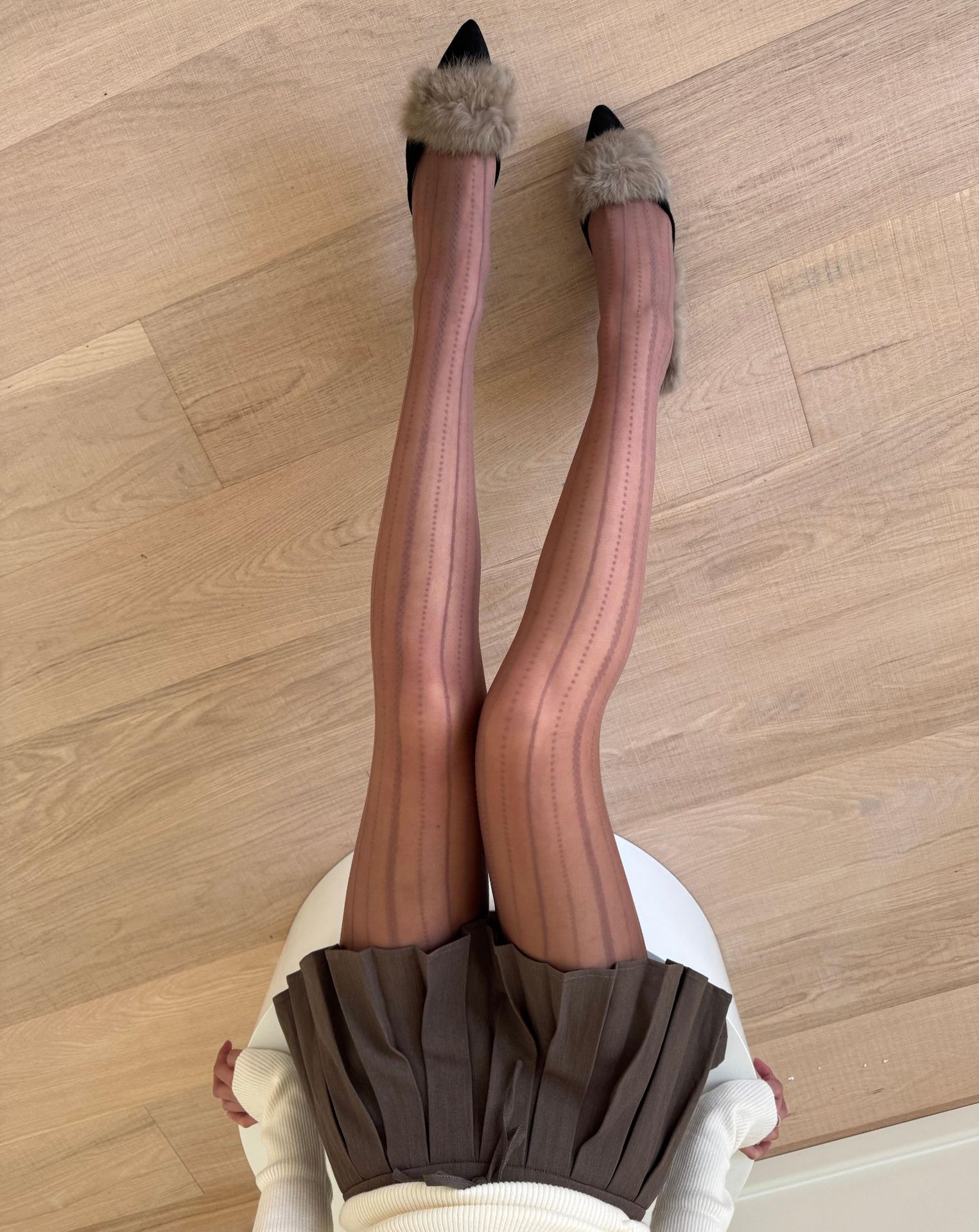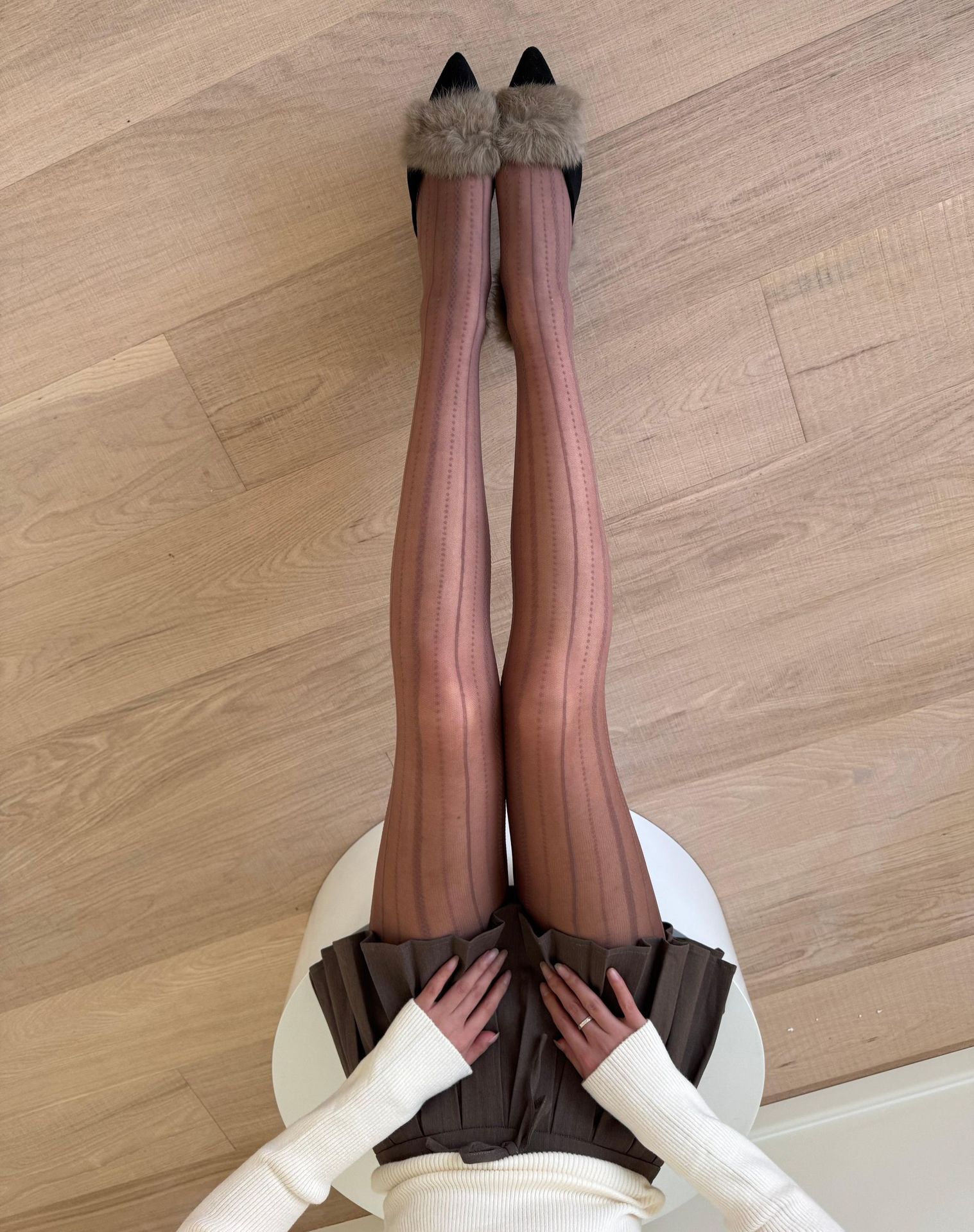 체인 패턴 수직 포인트 한국 스타일 레트로 틈새 우아한 하이 엔드 기질 뜨거운 소녀 섹시한 봄과 가을 얇은 팬티 스타킹 여성스토어 가기