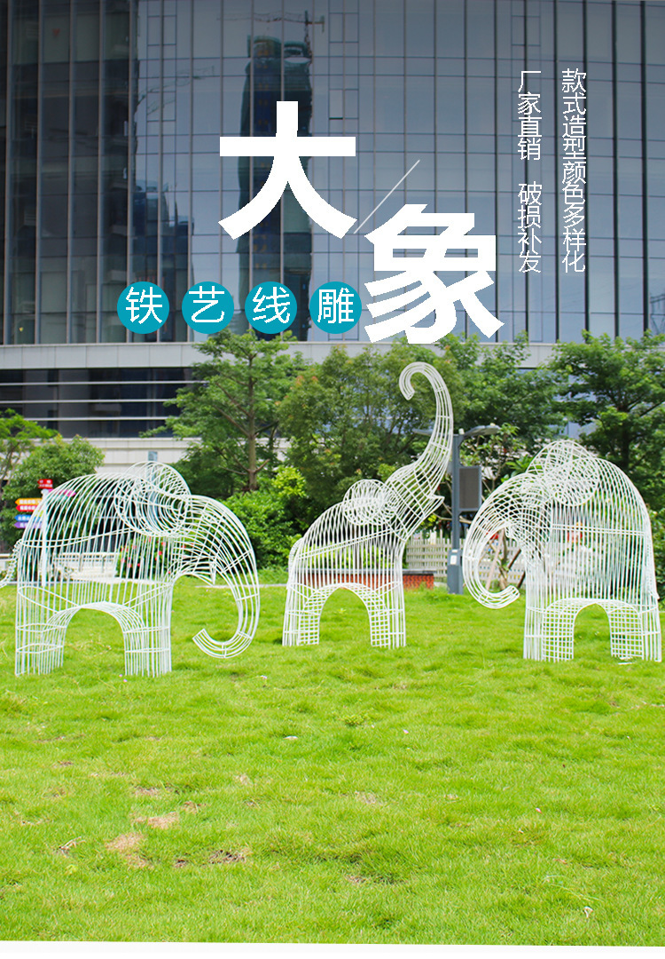 단철 스테인리스 중공 코끼리 조각 야외 잔디 공원 숲 잔디 대형 조경 장식품 목장 직접 판매