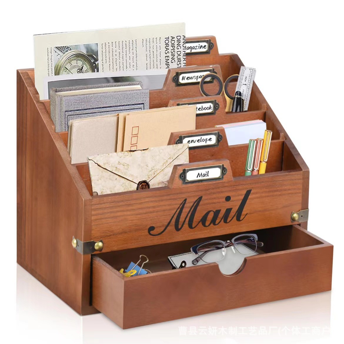 나무 파일 상자 데스크탑 파일 정렬 상자 데스크탑 파일 정렬 나무 상자 다층 저장 상자 책상 보관 상자