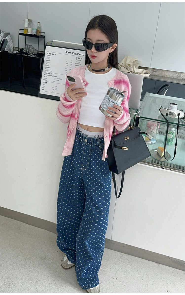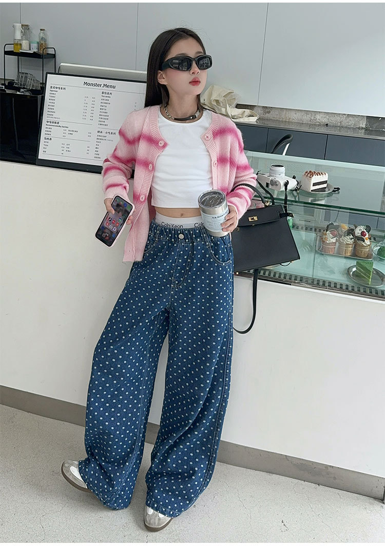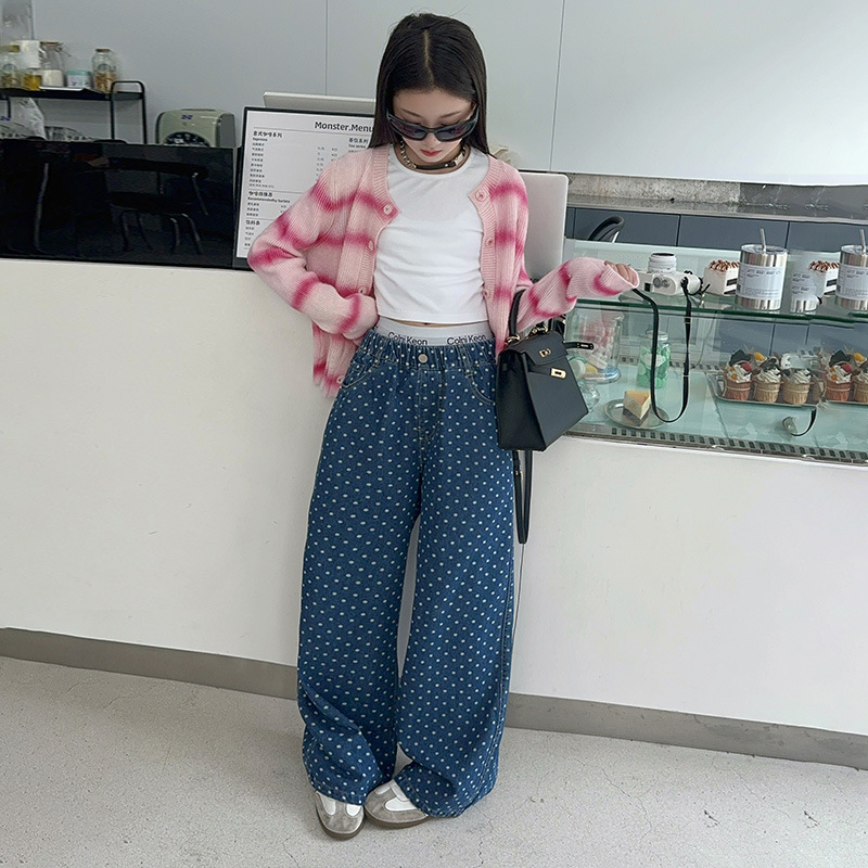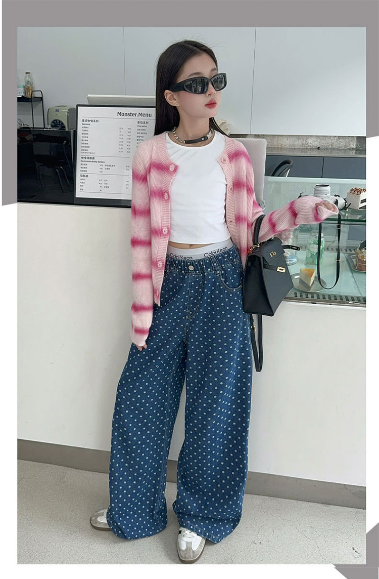 소녀 세트 2025 봄과 가을 새 소녀의 서양식 한 팬 차오 카디건 스웨터베이스 셔츠 청바지 3 개 조각스토어 가기