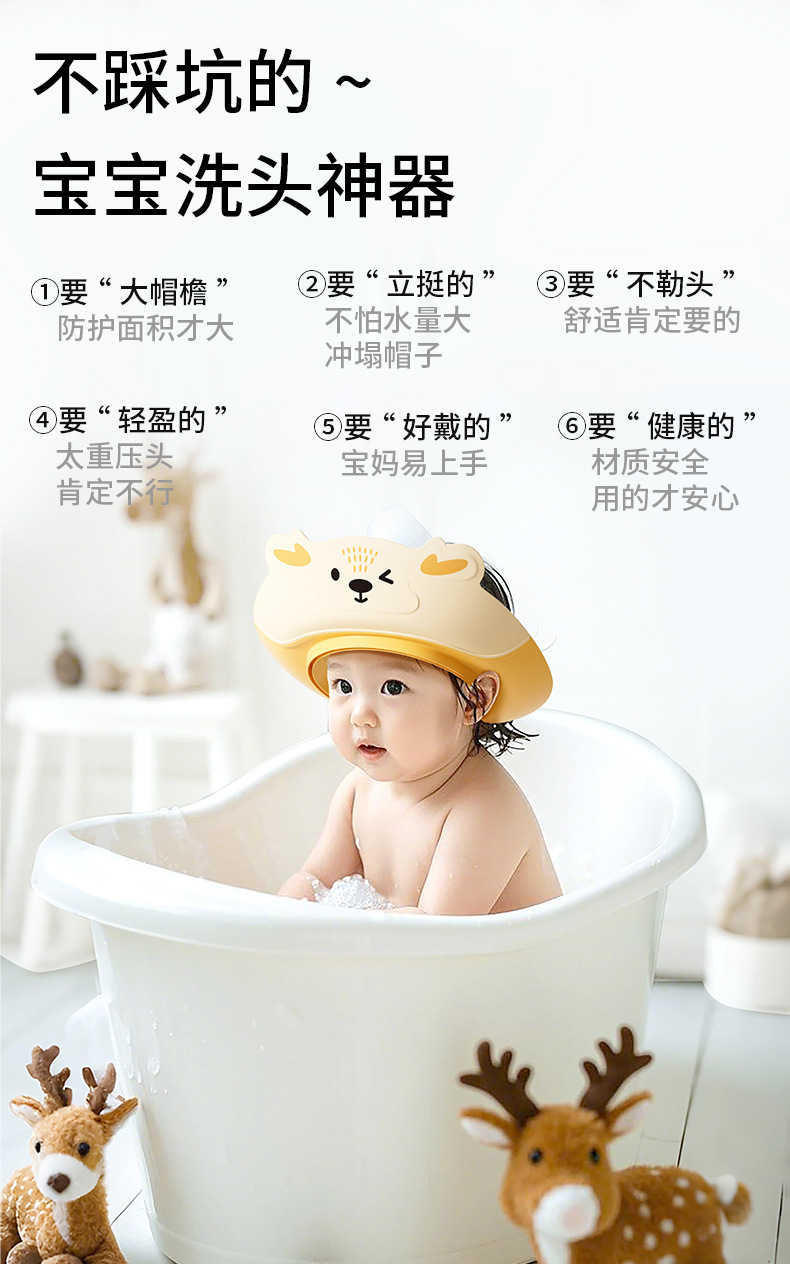 宝宝洗头帽防水护耳软胶儿童洗头神器婴儿洗澡浴帽小孩挡水洗发帽