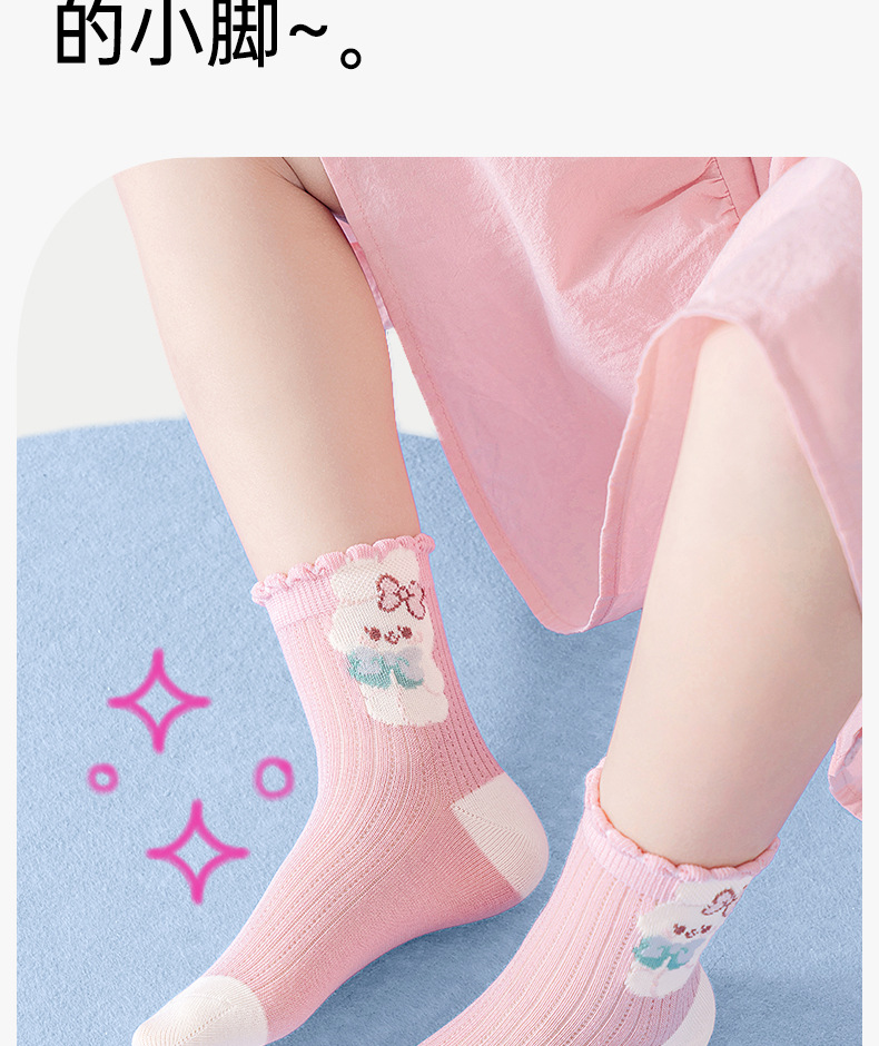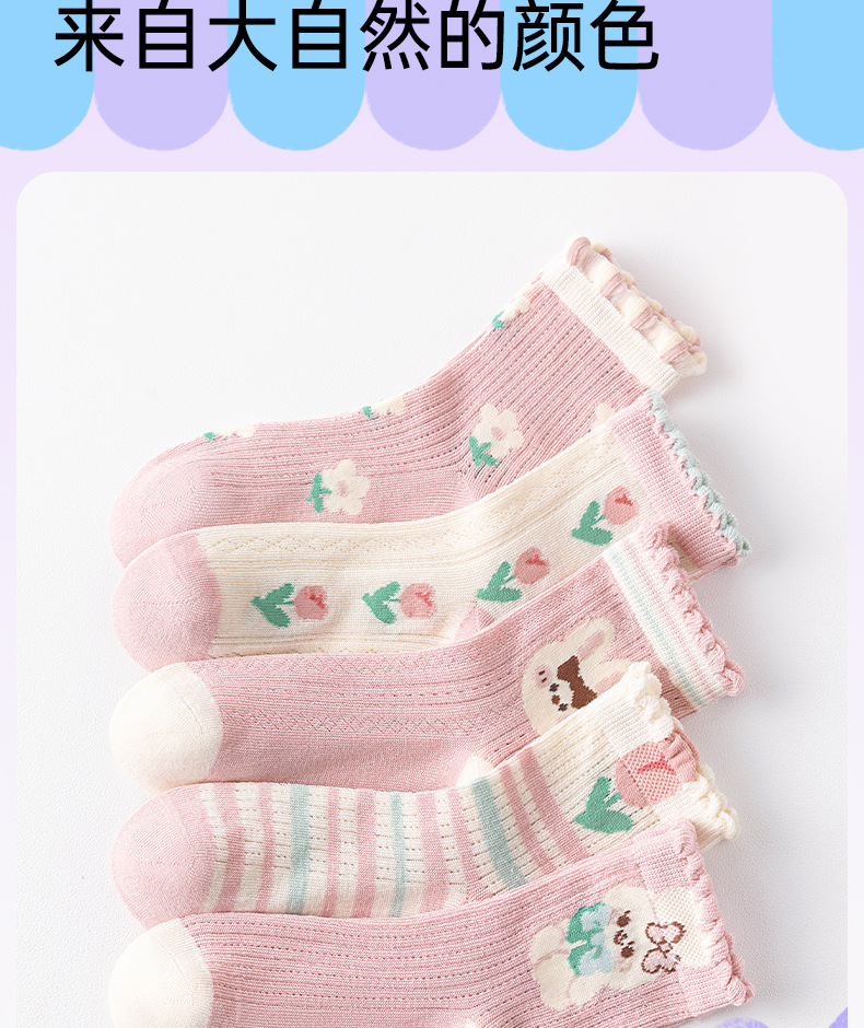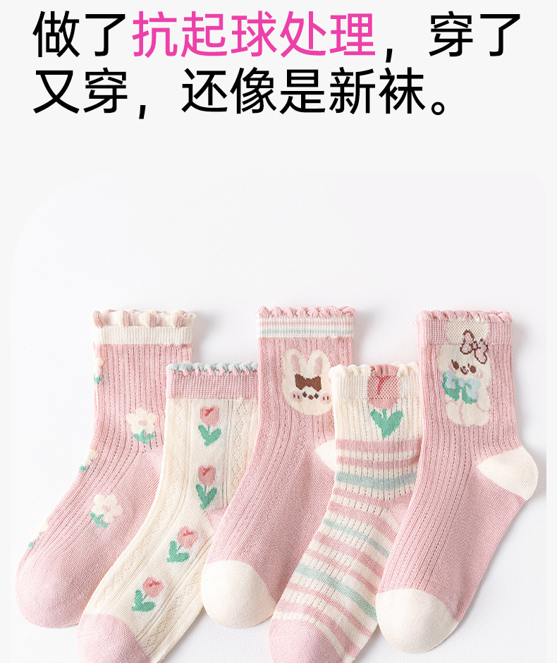 • Z144--딸기 귀여운 토끼-5켤레 [7A 항균 뼈없는 얇은 면 양말]