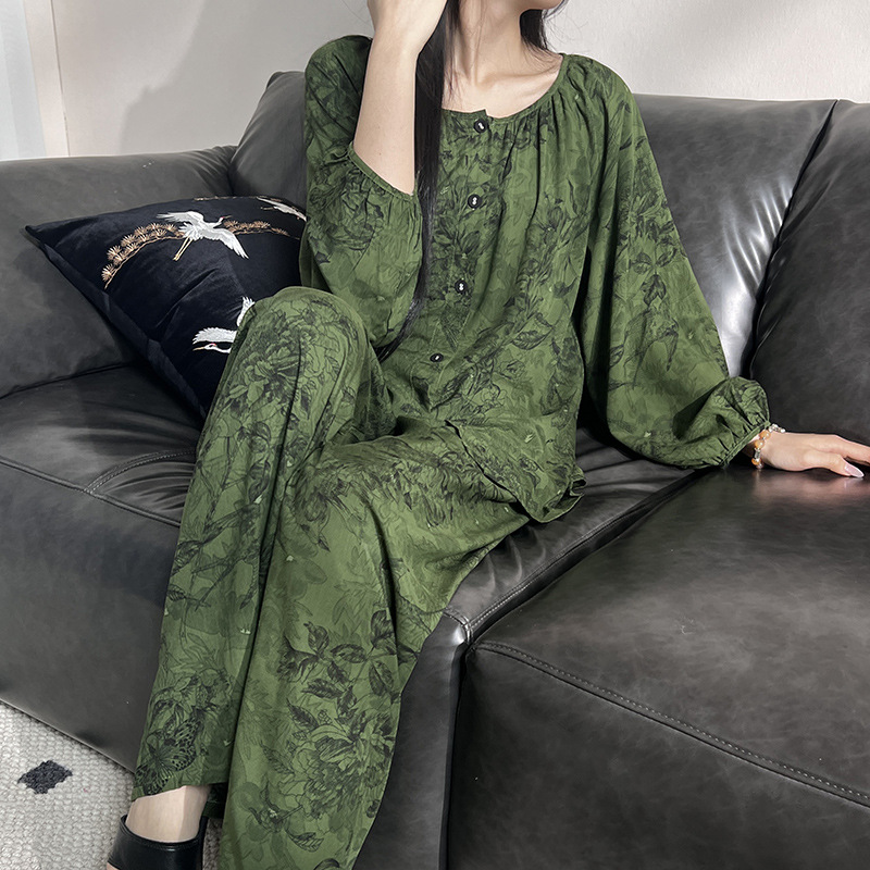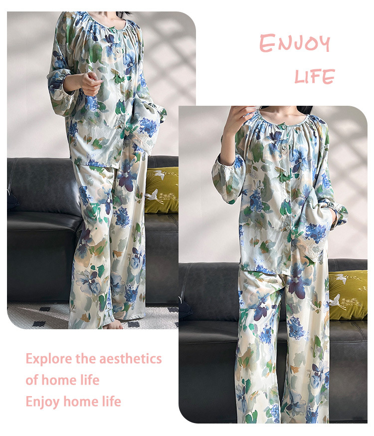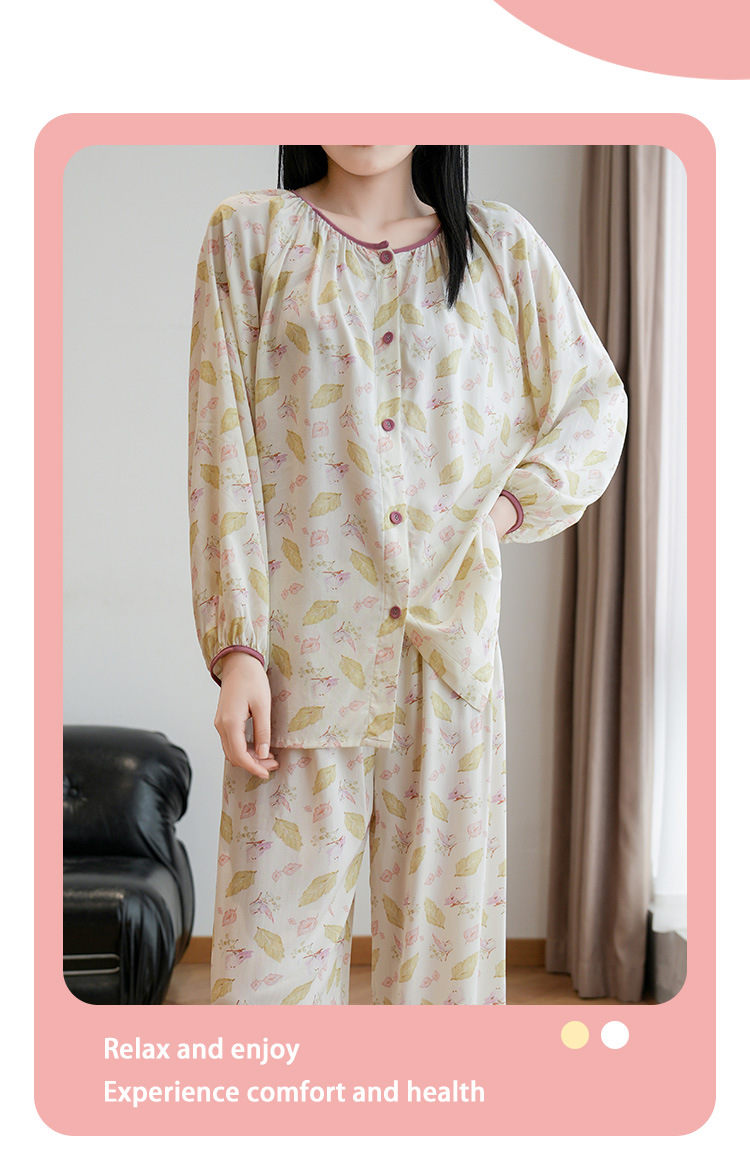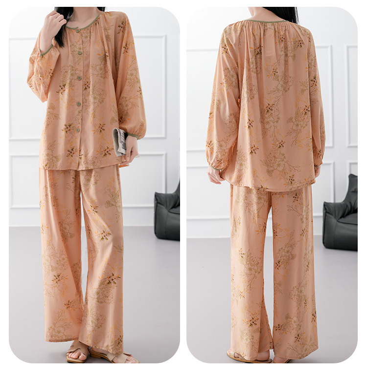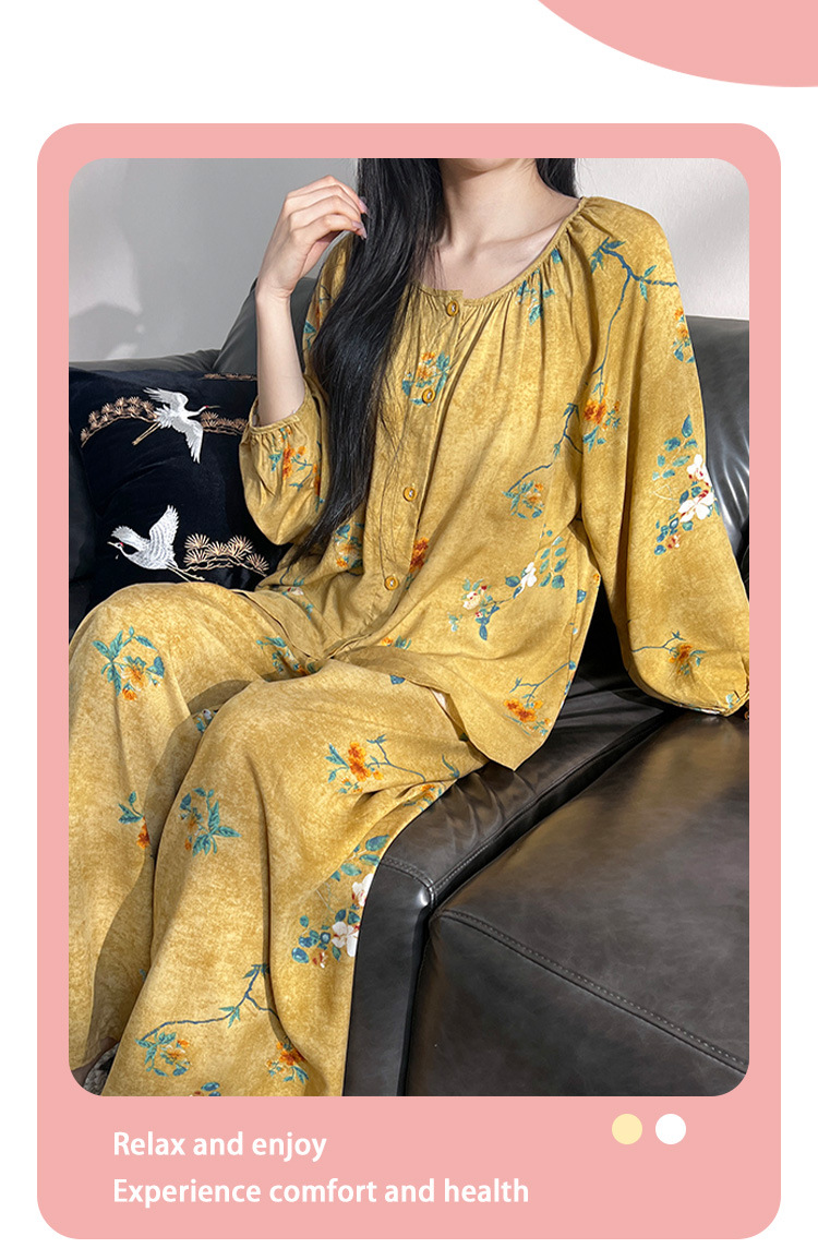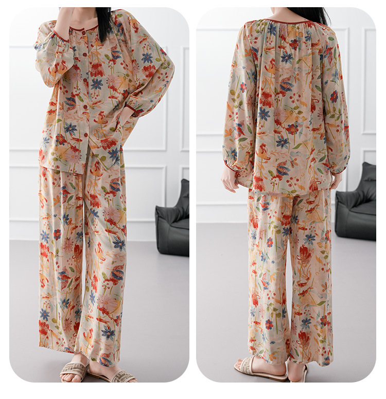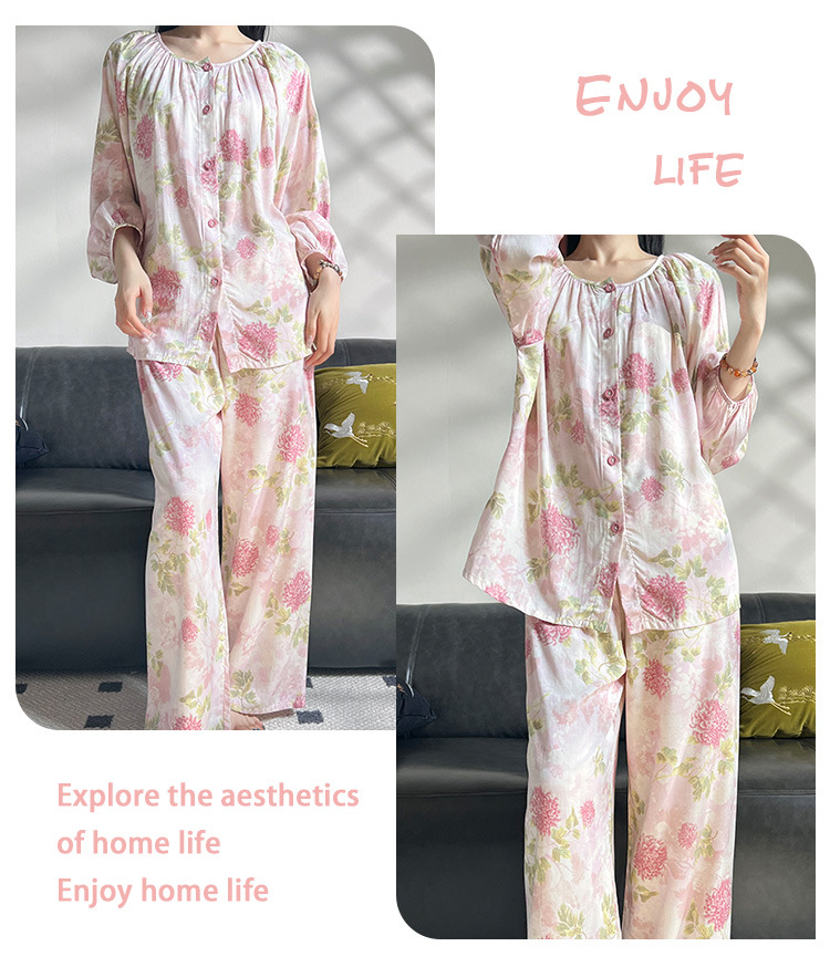 2025 새로운 면 실크 잠옷 여성의 봄과 가을 중년 및 노인 어머니의 면 실크 홈 옷 세트 여름에 입을 수 있습니다.