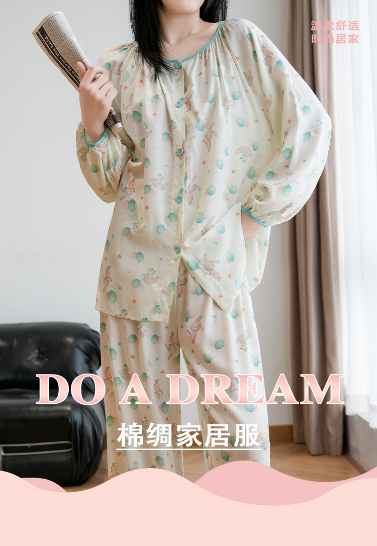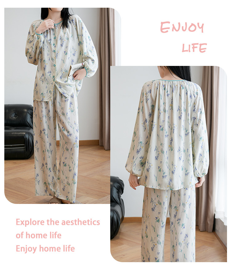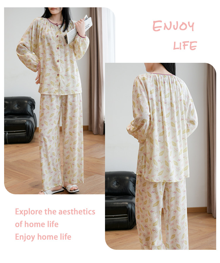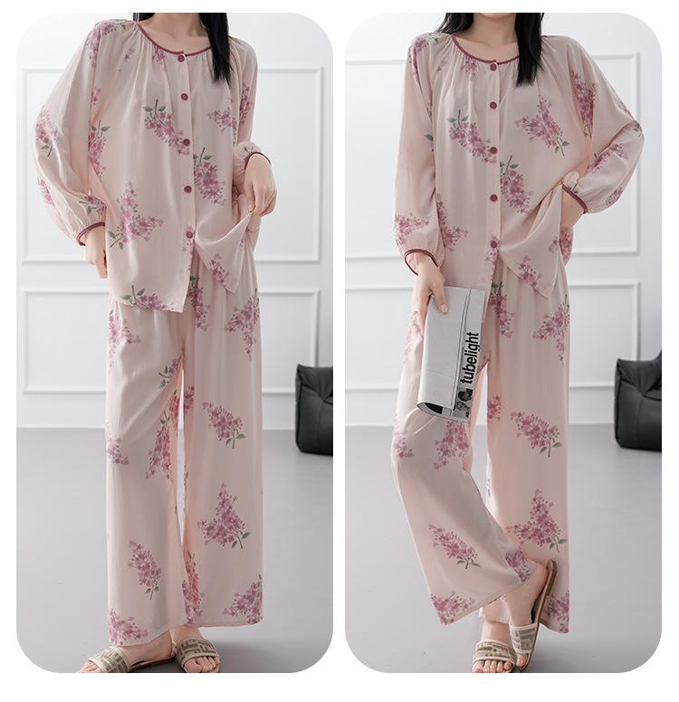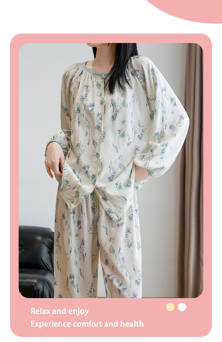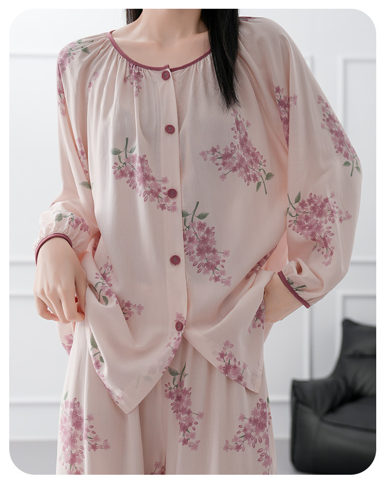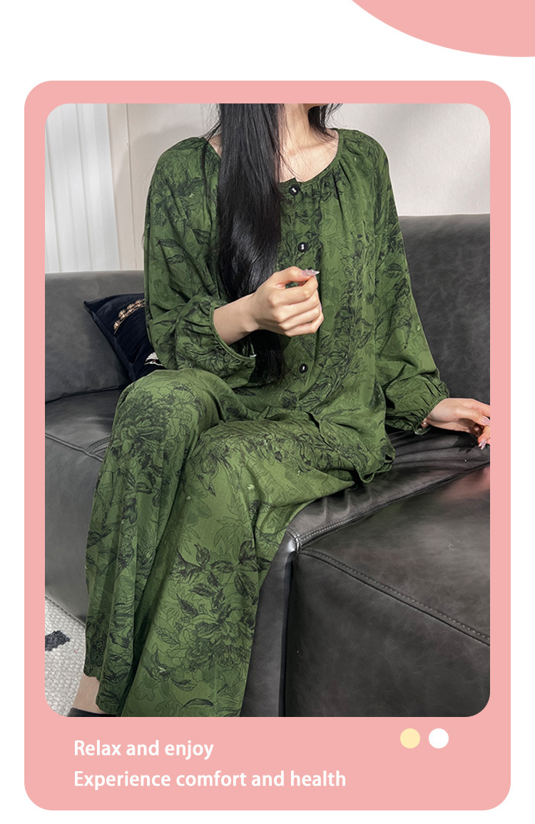 2025 새로운 면 실크 잠옷 여성의 봄과 가을 중년 및 노인 어머니의 면 실크 홈 옷 세트 여름에 입을 수 있습니다.