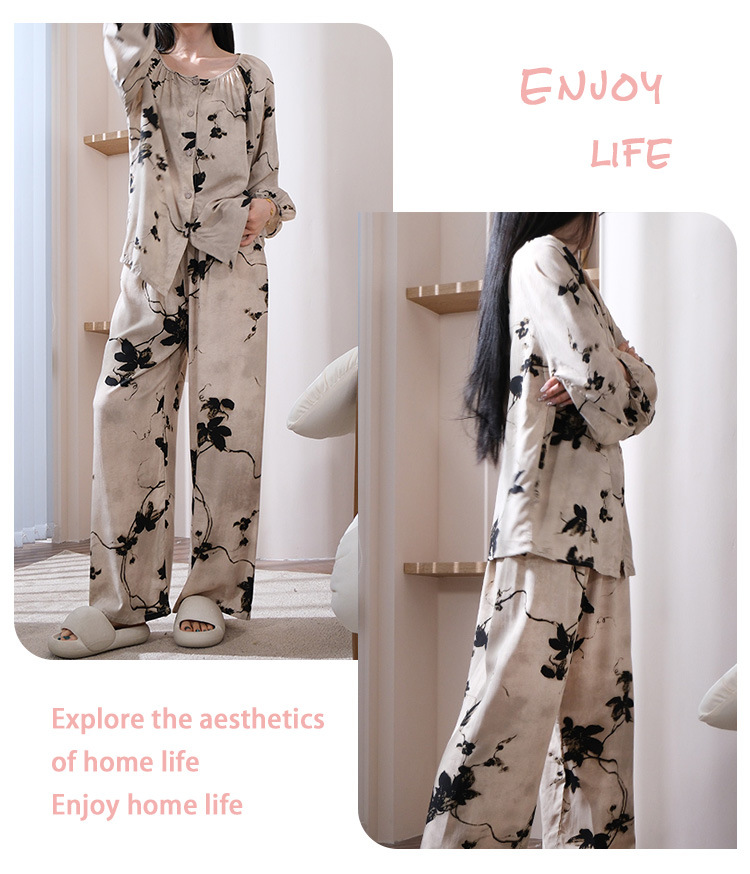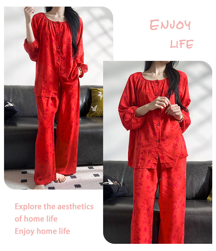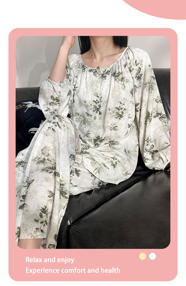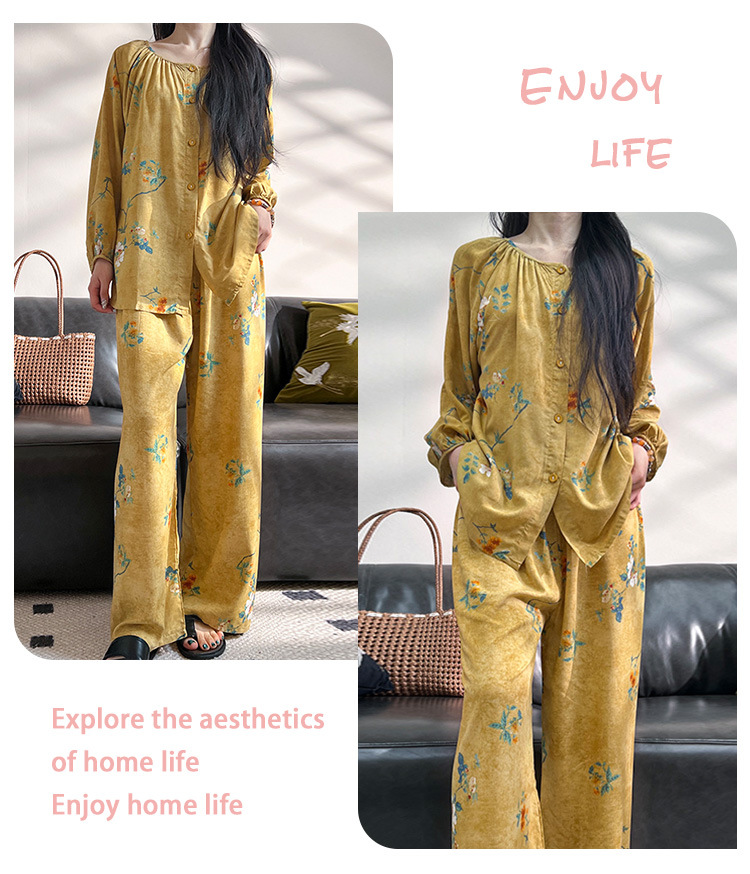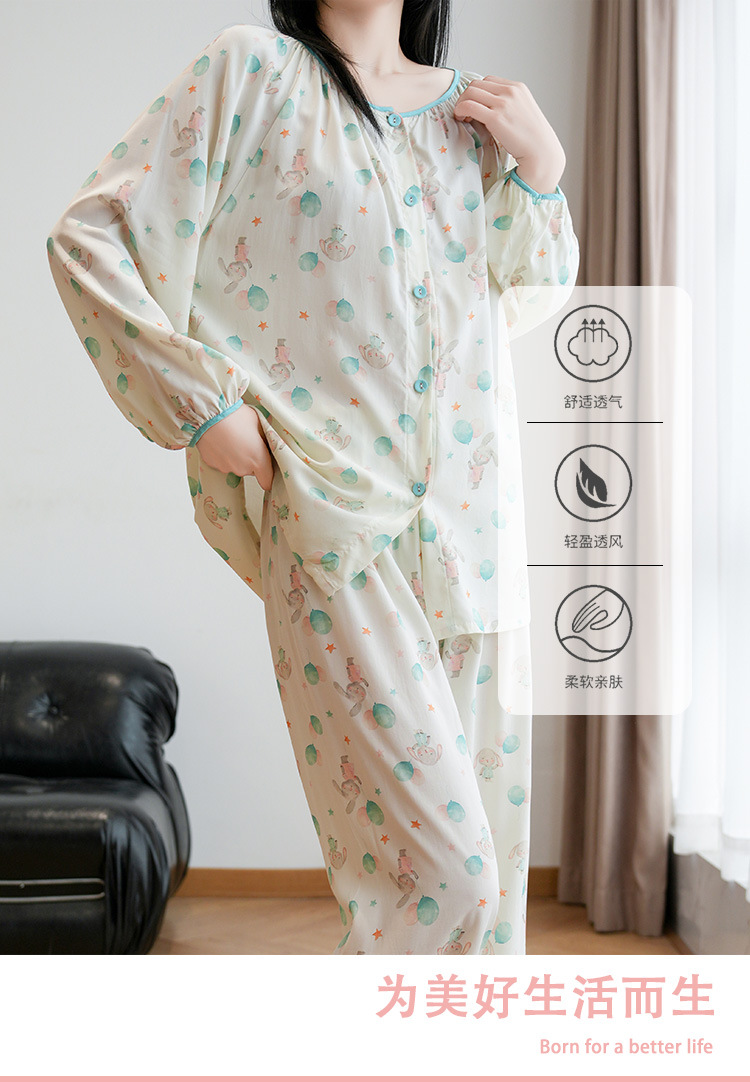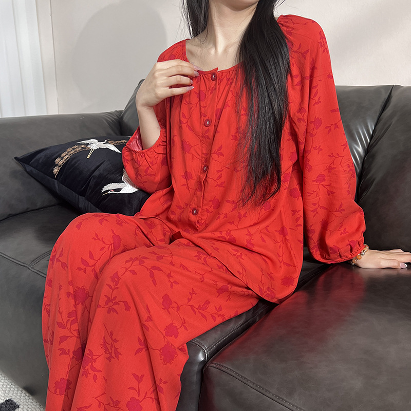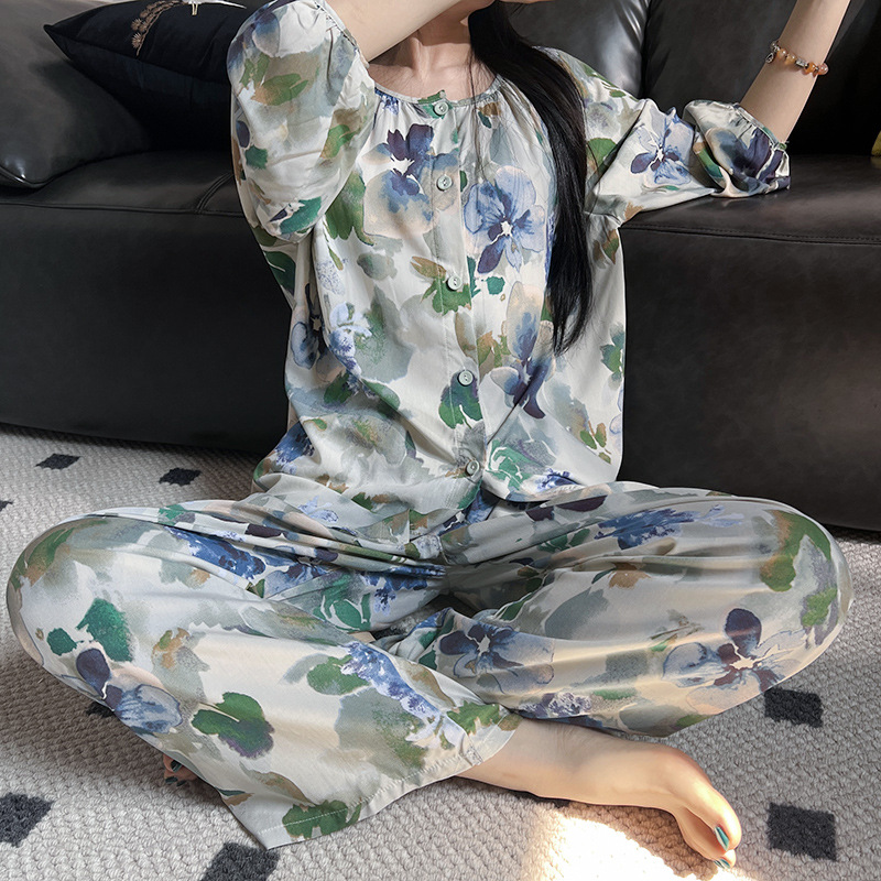 2025 새로운 면 실크 잠옷 여성의 봄과 가을 중년 및 노인 어머니의 면 실크 홈 옷 세트 여름에 입을 수 있습니다.