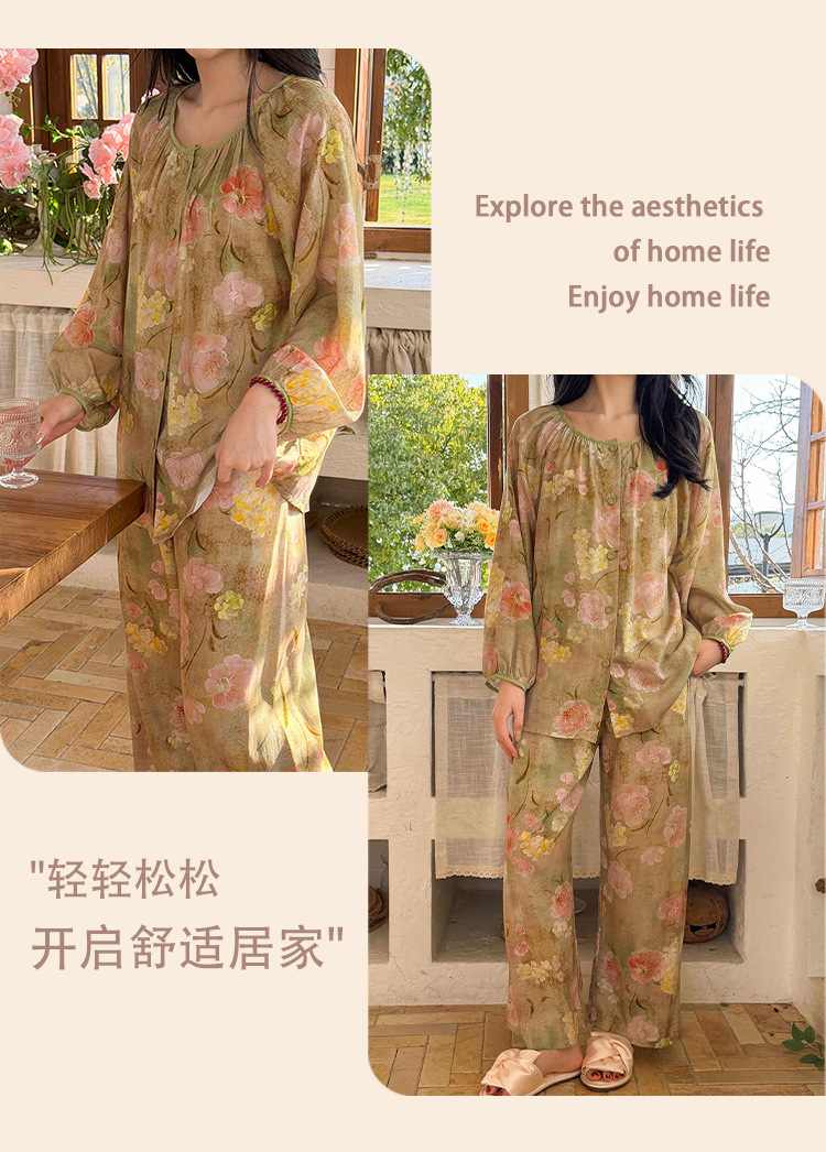 2025 새로운 면 실크 잠옷 여성의 봄과 가을 중년 및 노인 어머니의 면 실크 홈 옷 세트 여름에 입을 수 있습니다.스토어 가기