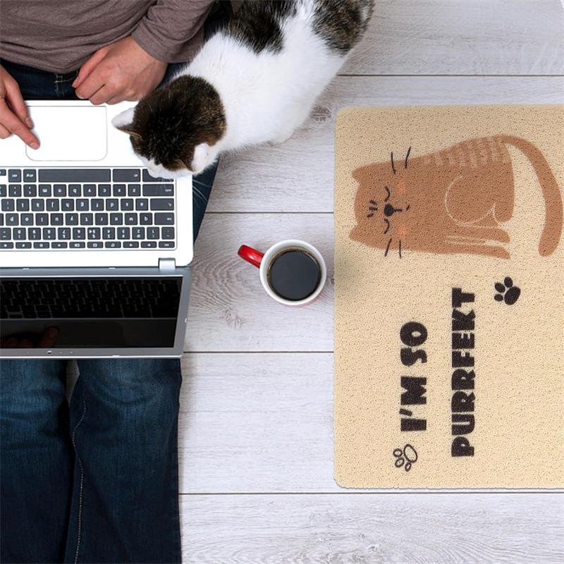 귀여운 만화 귀여운 애완 동물 실크 반지를 돌보기 쉬운 국경 간 고양이 쓰레기 매트 문 먼지 방지 매트 현관 진흙 긁기 먼지 제거