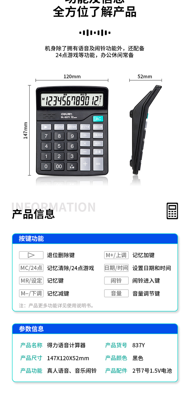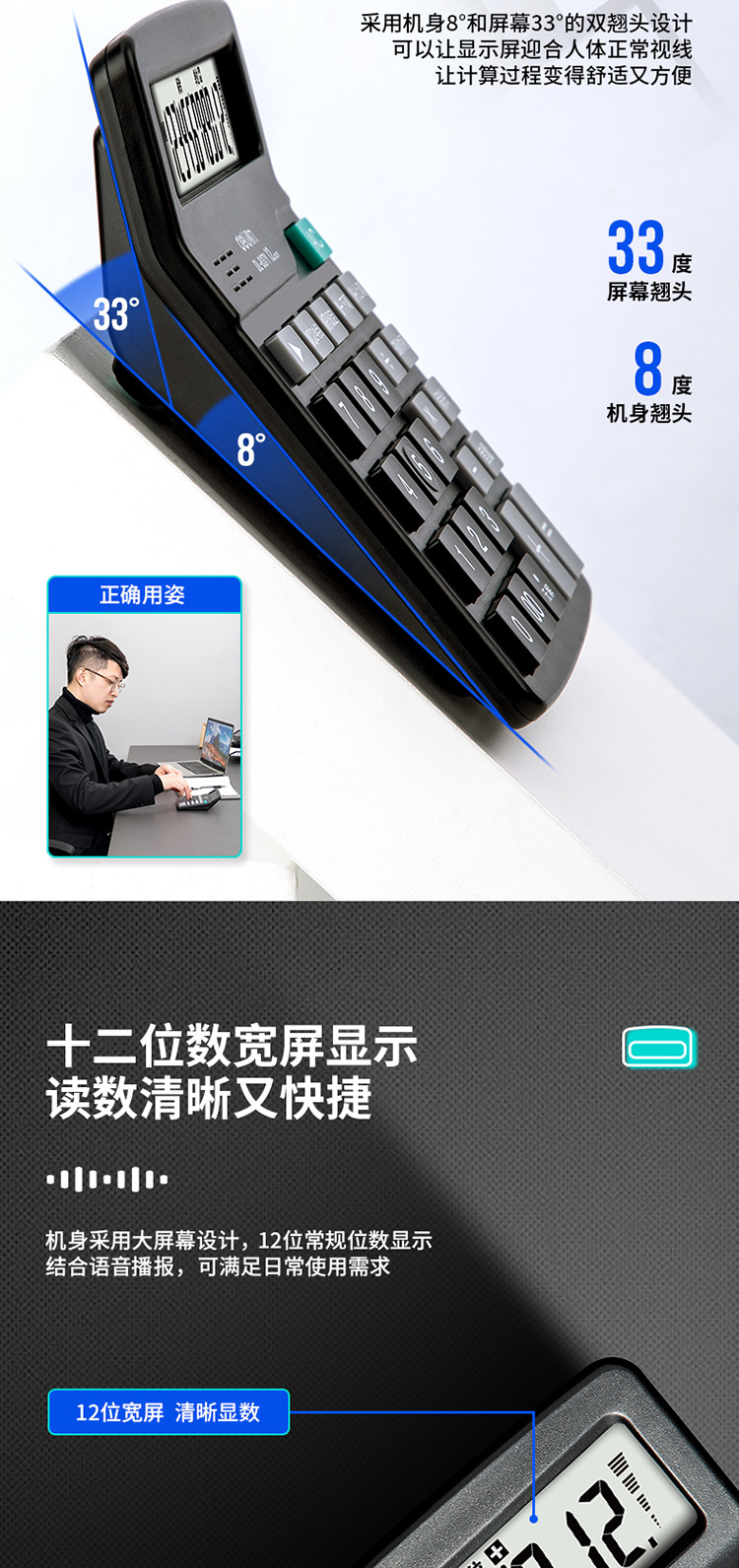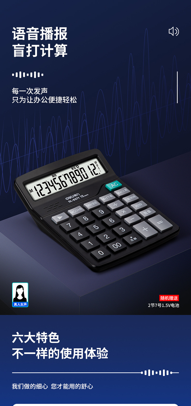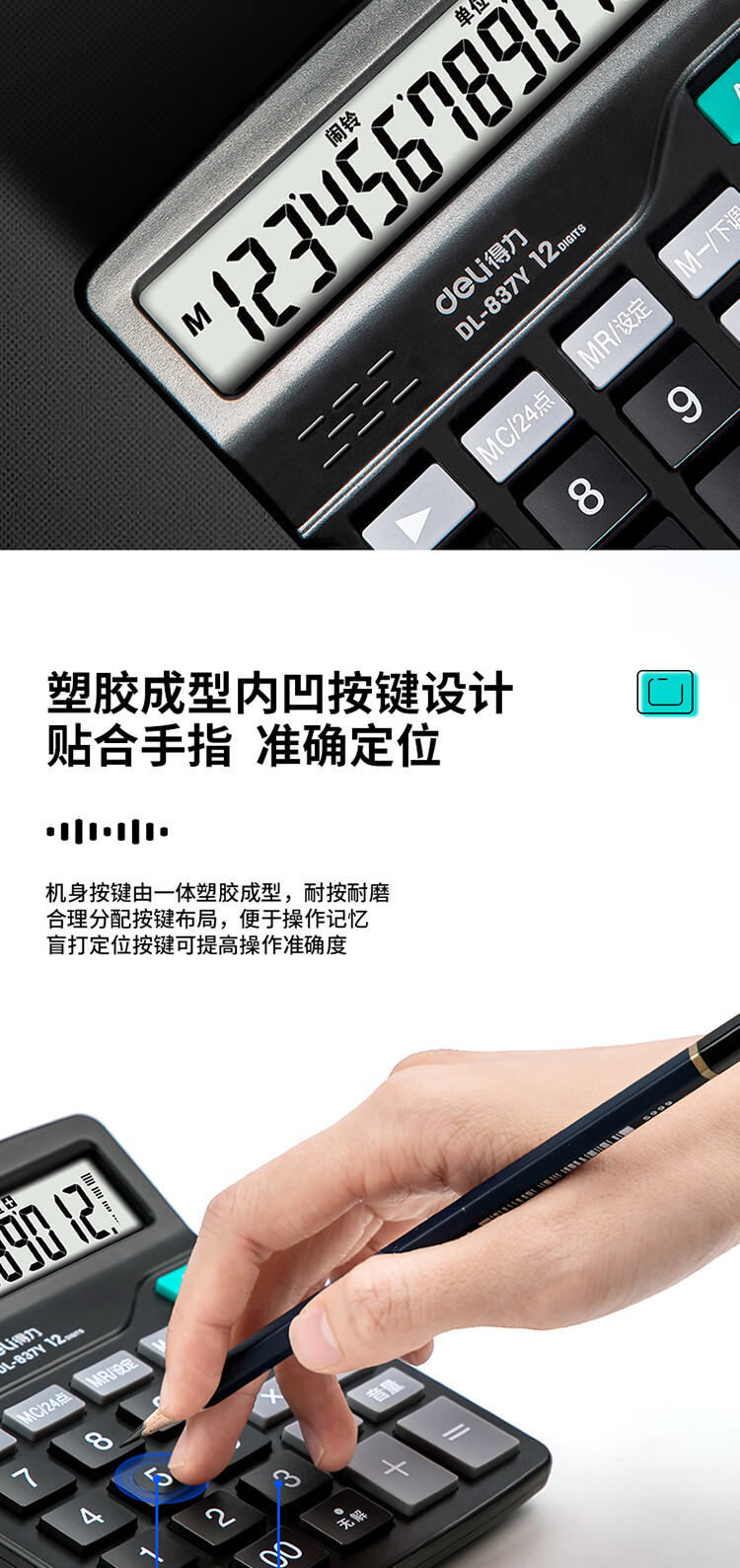 델리 837Y 계산기 경제적 인 태양 이중 전원 음성 컴퓨터 금융 상점 대형 스크린 대형 버튼