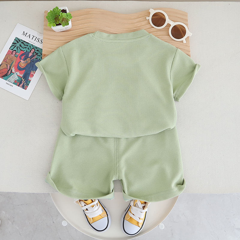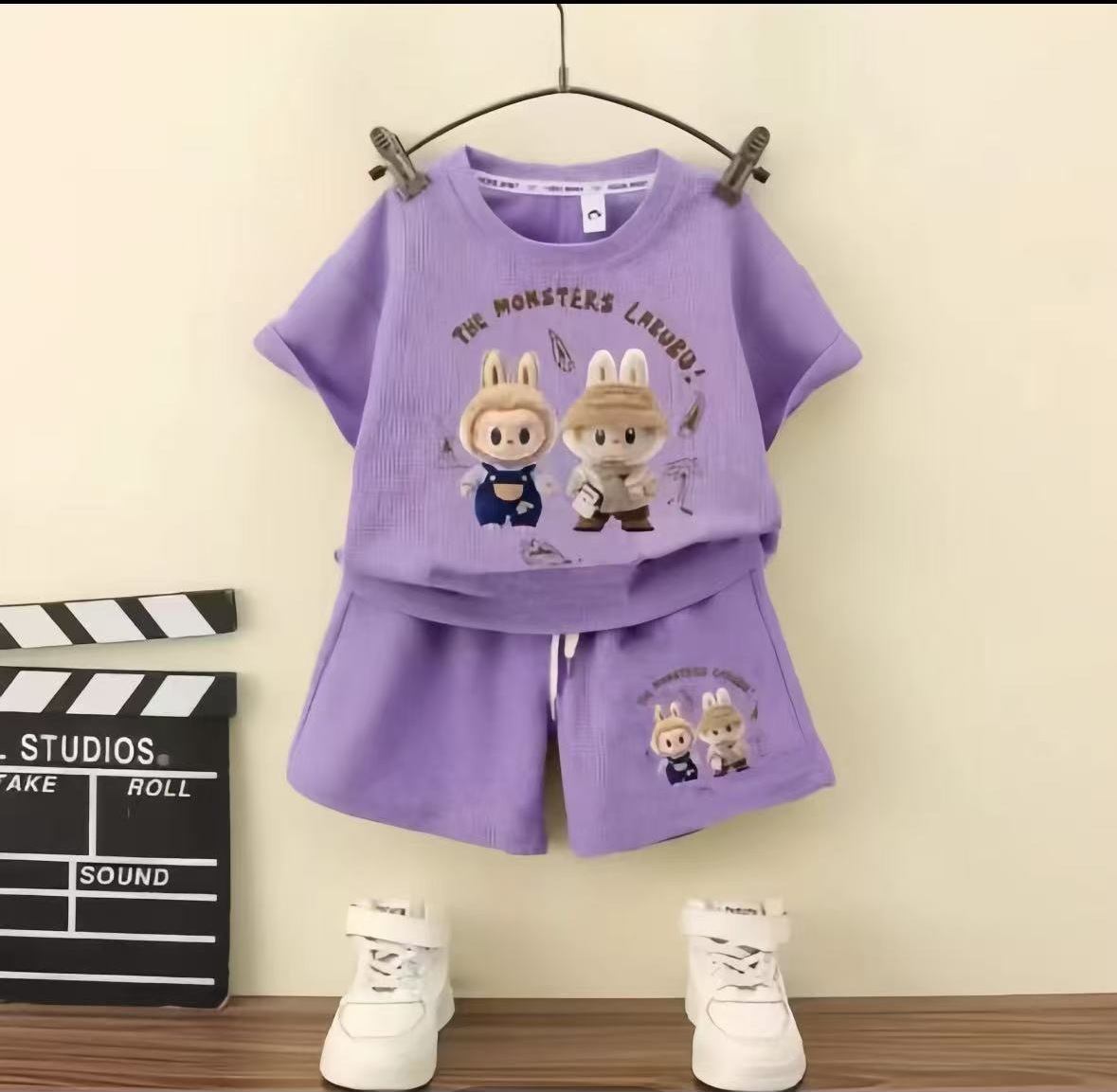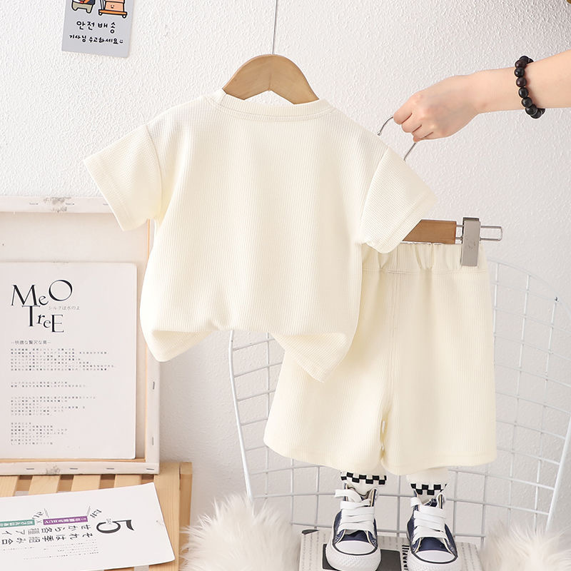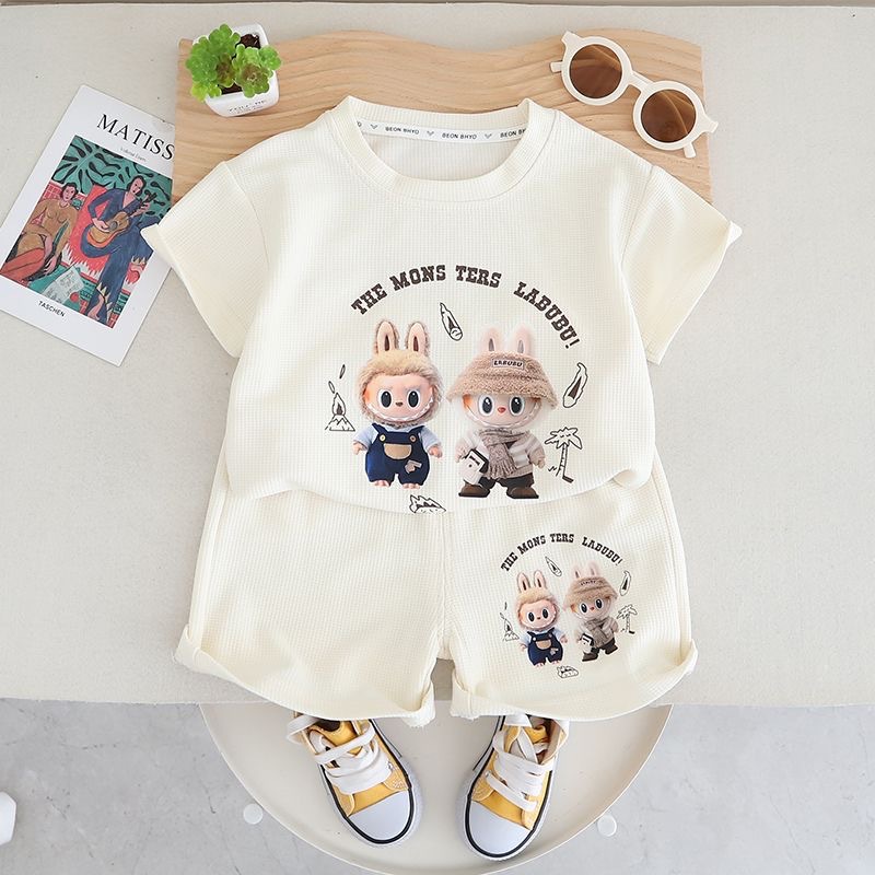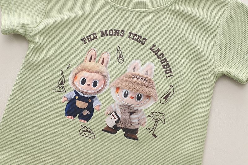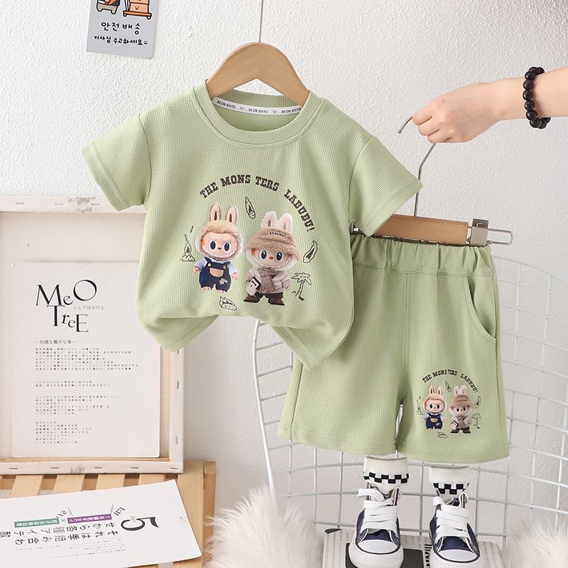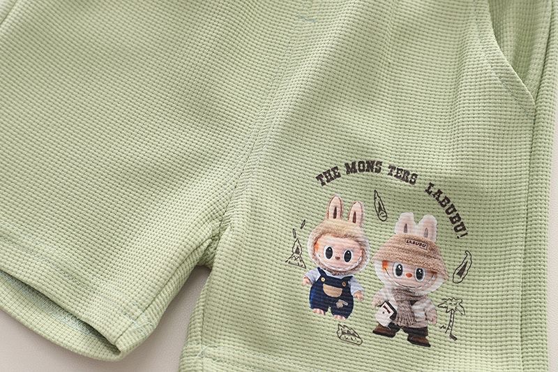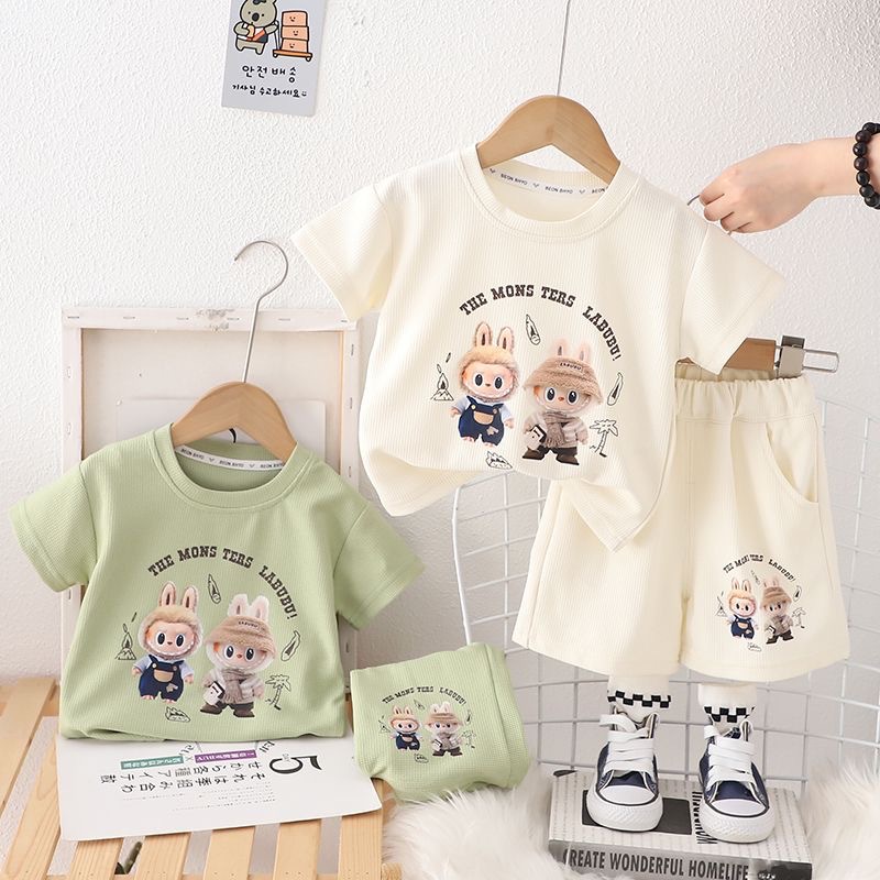 남학생 반바지 세트 여름 새 어린이 소녀 만화 캐주얼 반팔 크루 넥 티셔츠 투피스 세트