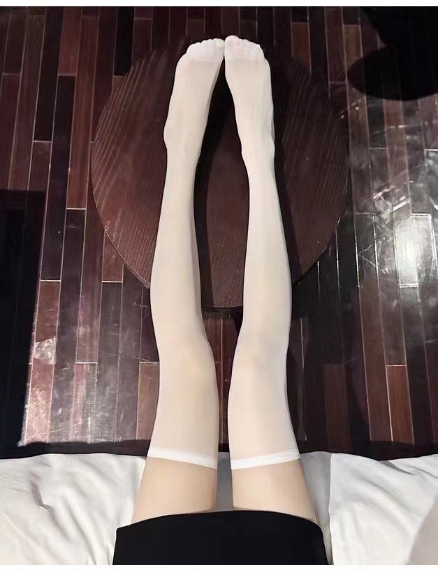 • 흰색 레이스 스타킹 무릎 위 양말