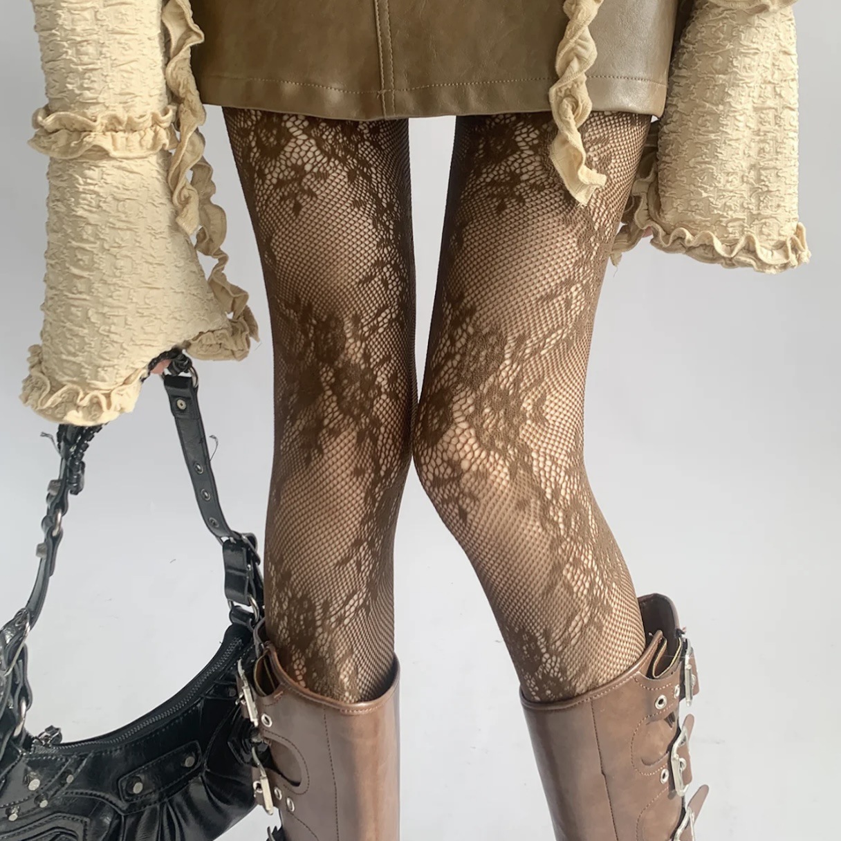 레트로 중공 꽃 레이스 뜨거운 여자 자카드 스타킹 y2k Fishnet 양말 여성을위한 블랙 섹시한 안티 걸림 스타킹스토어 가기