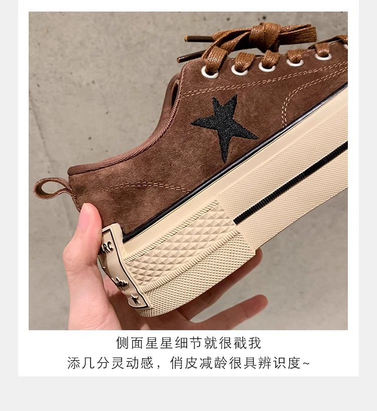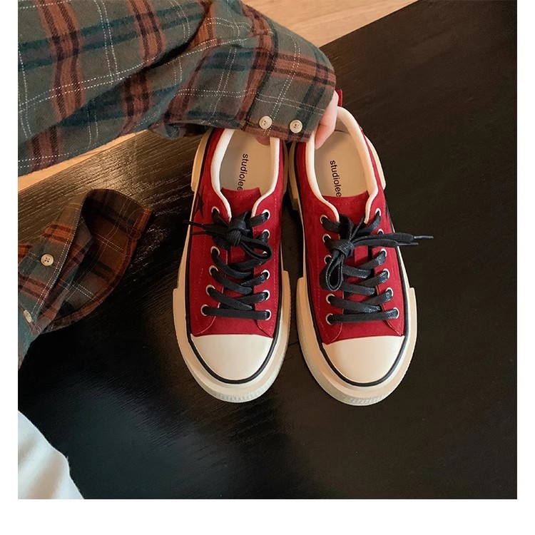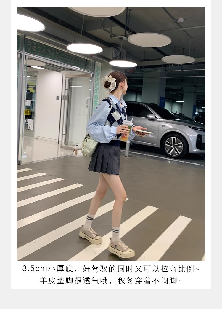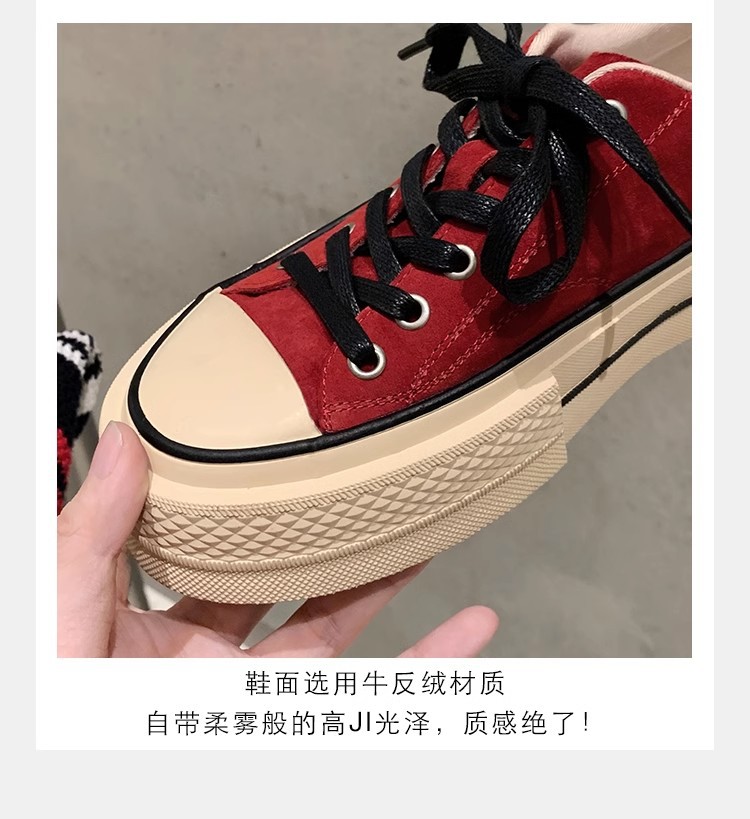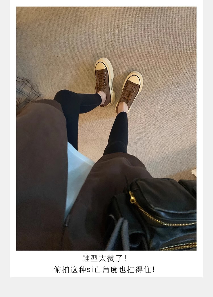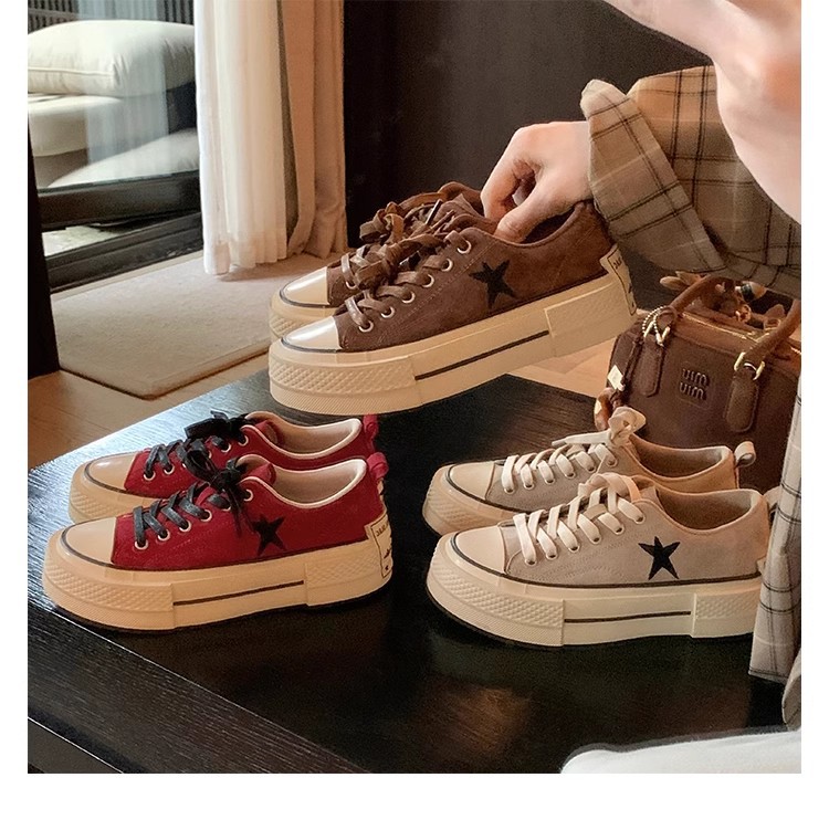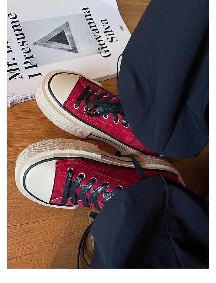 Cowhide Edition ~ 포도 엄마 같은 클래식 대학 스타일 라운드 머리 두꺼운 바닥 가죽 레이스 업 로우 스타 캐주얼 신발스토어 가기