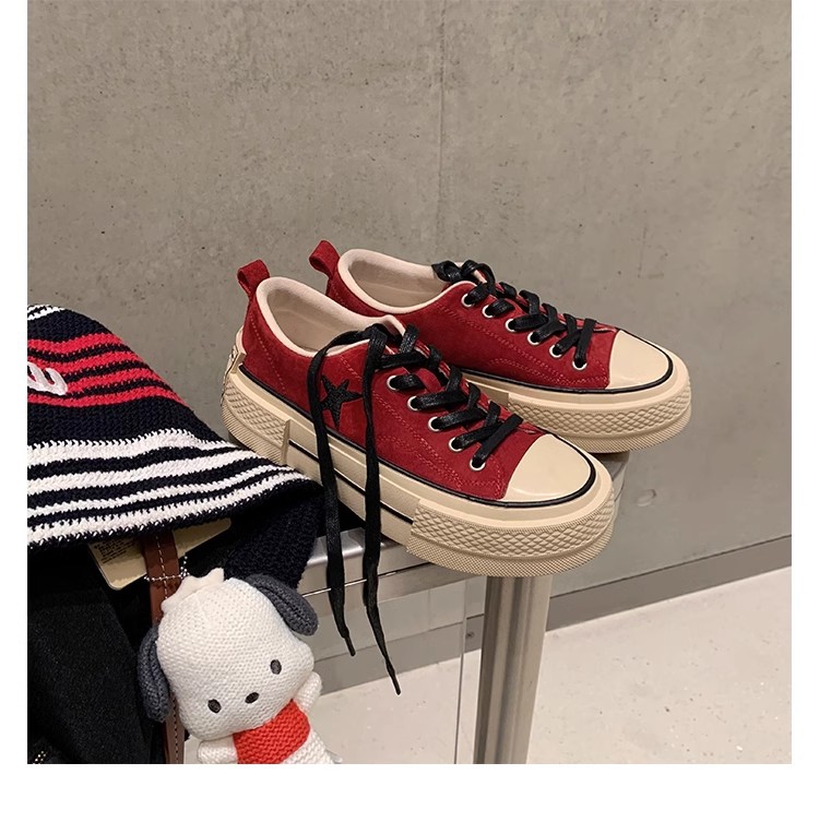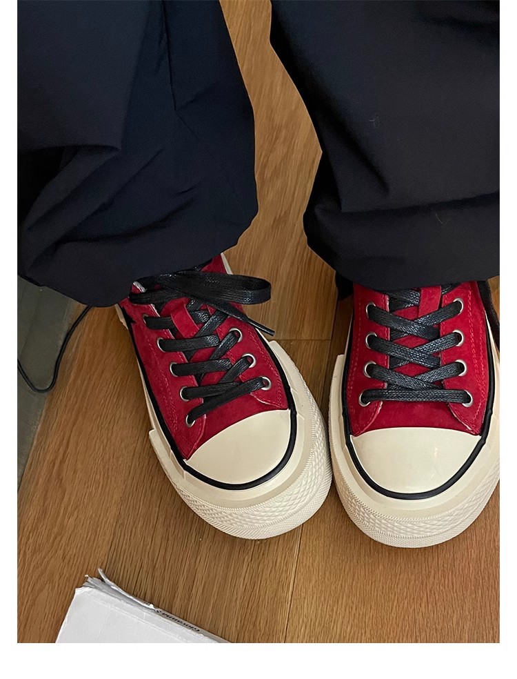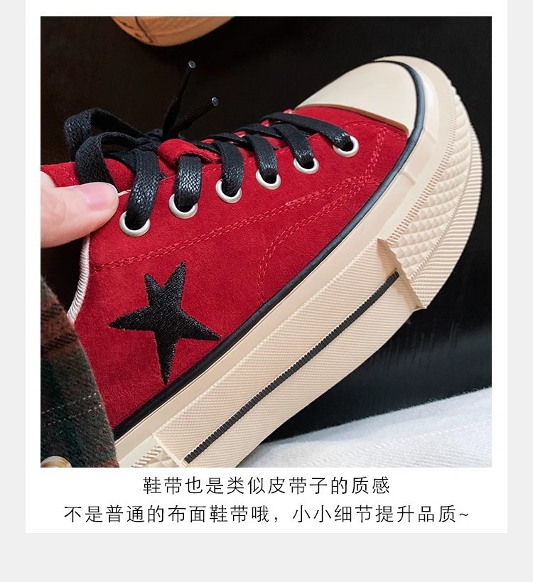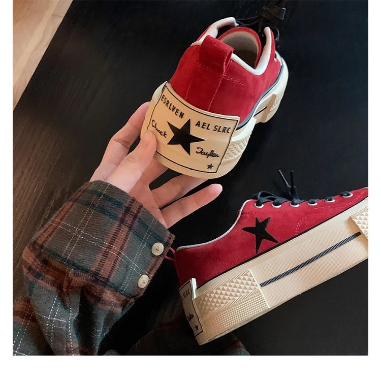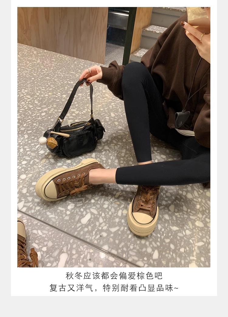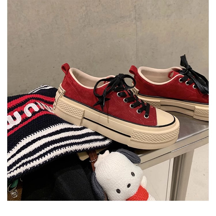Cowhide Edition ~ 포도 엄마 같은 클래식 대학 스타일 라운드 머리 두꺼운 바닥 가죽 레이스 업 로우 스타 캐주얼 신발스토어 가기