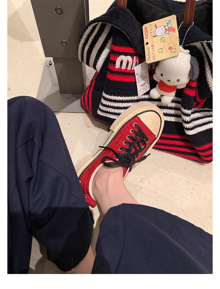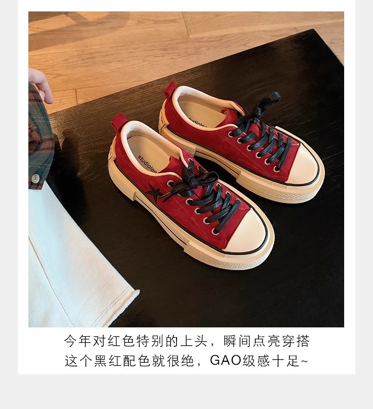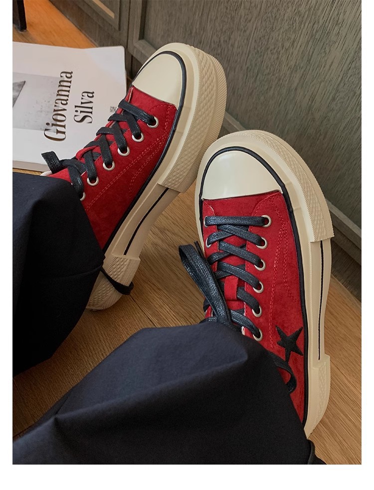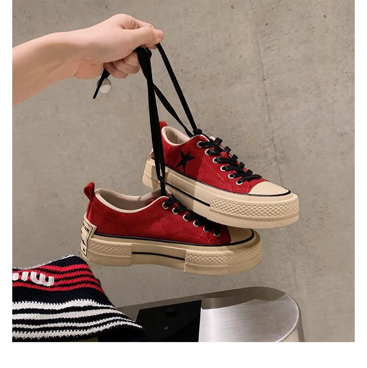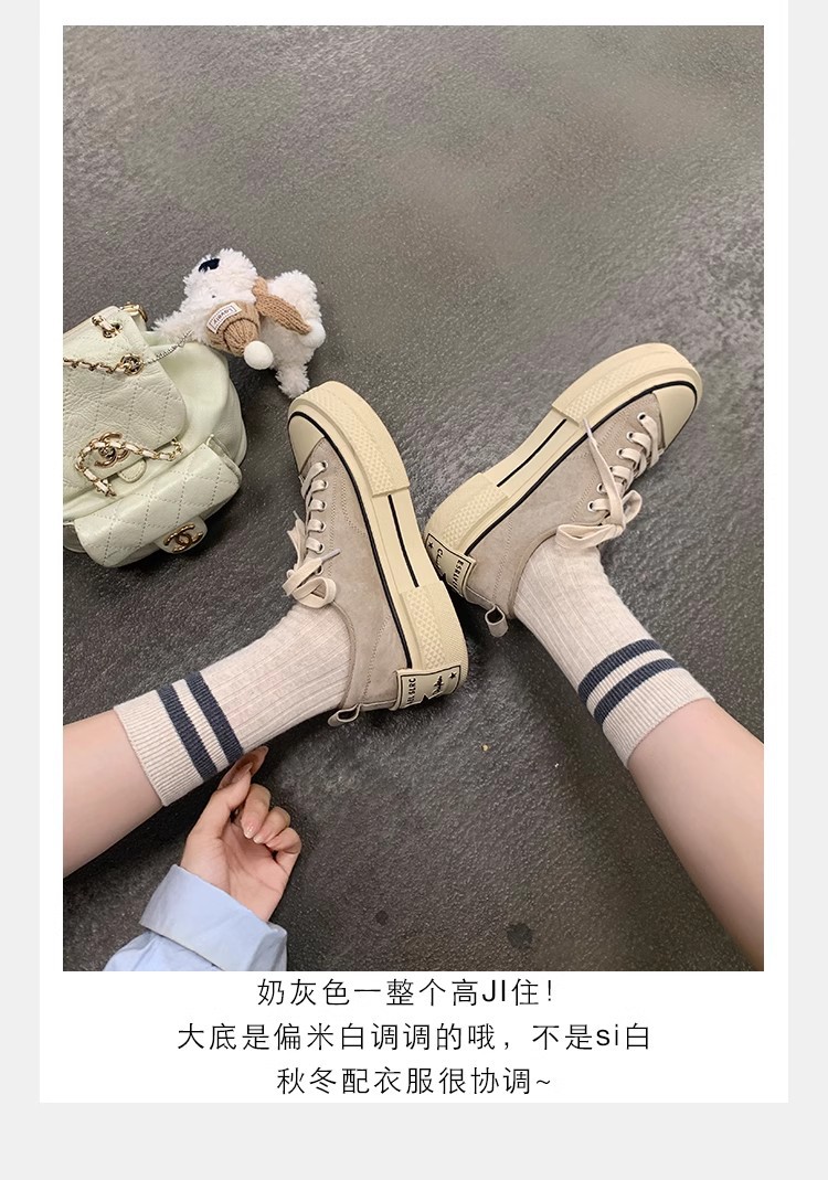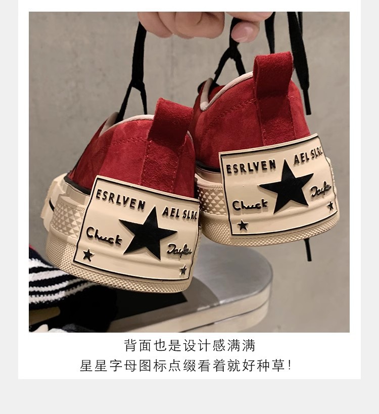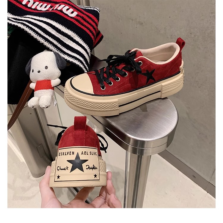 Cowhide Edition ~ 포도 엄마 같은 클래식 대학 스타일 라운드 머리 두꺼운 바닥 가죽 레이스 업 로우 스타 캐주얼 신발스토어 가기