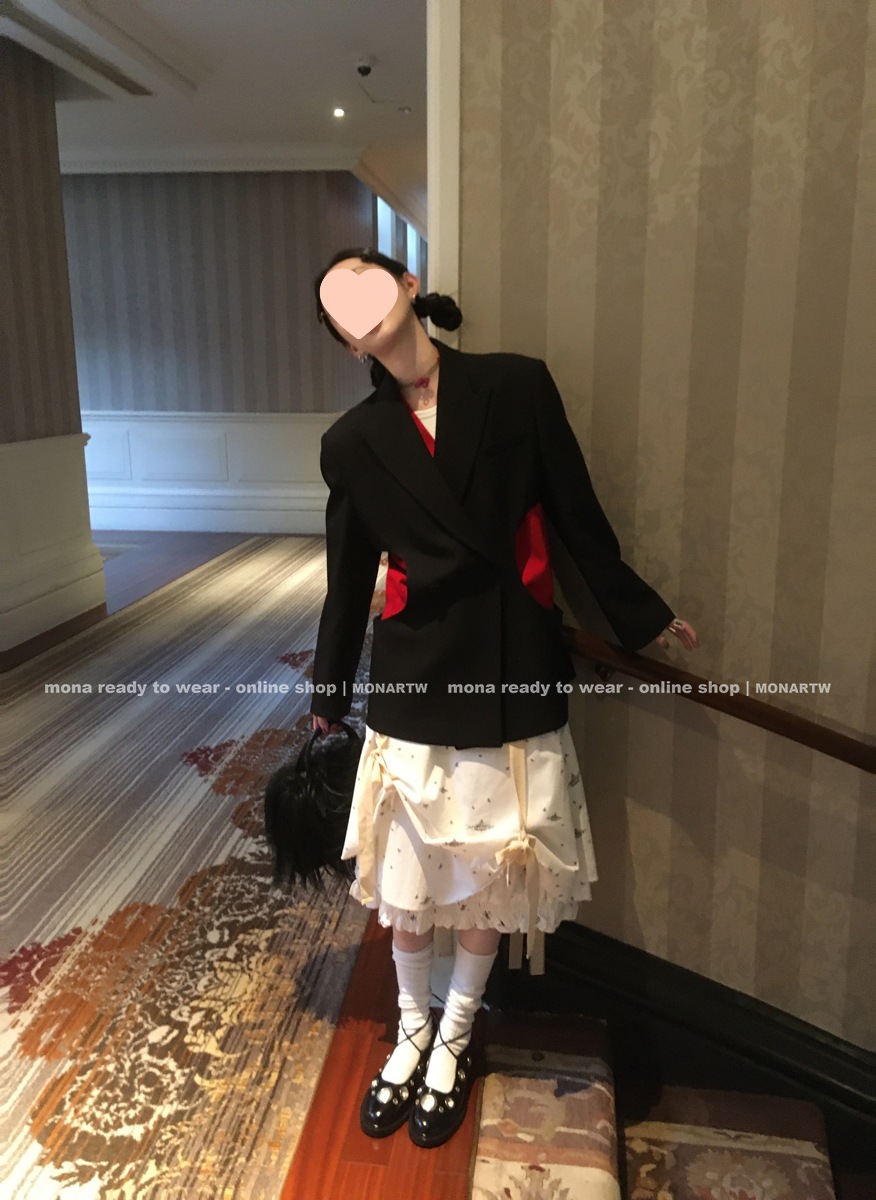 모나 독특하고 아름다운 패셔너블 캐주얼 정장 재킷과 미디 스커트 팬츠 투피스 세트 (여성, 소형)