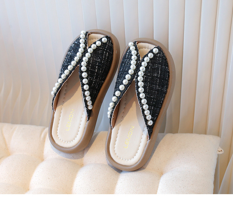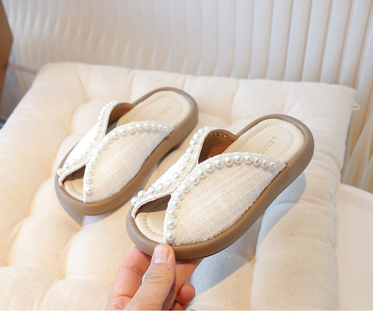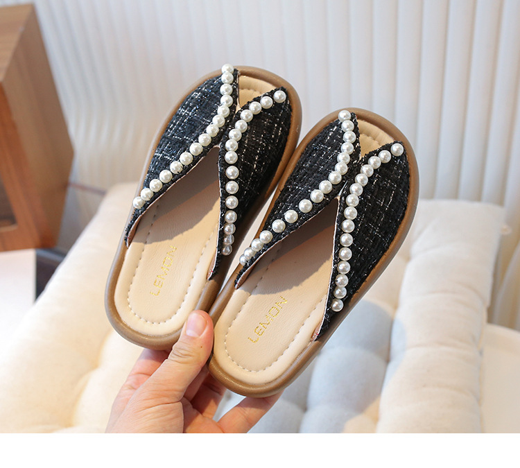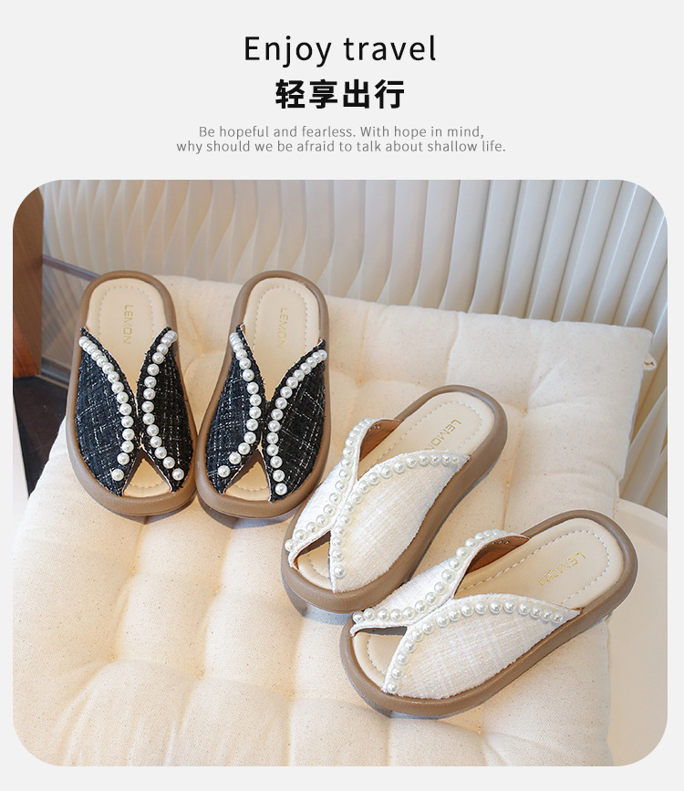 2025 여름 새 샌들 패션 소녀 진주 생선 입 슬리퍼 패션 한국 공주 슬리퍼 도매 세대스토어 가기