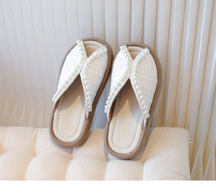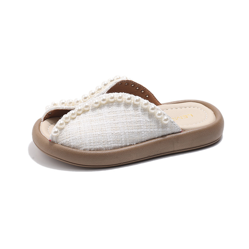 2025 여름 새 샌들 패션 소녀 진주 생선 입 슬리퍼 패션 한국 공주 슬리퍼 도매 세대