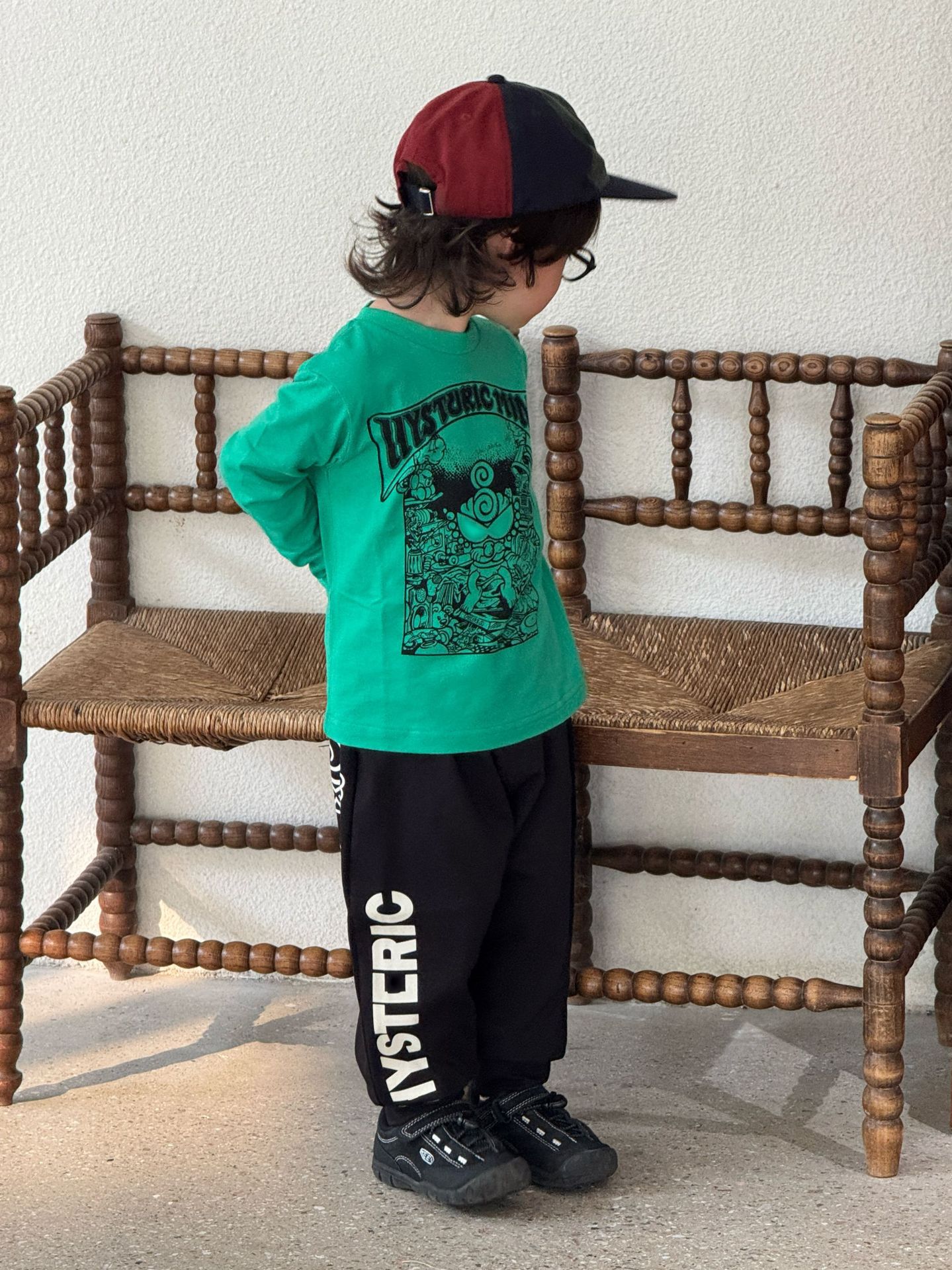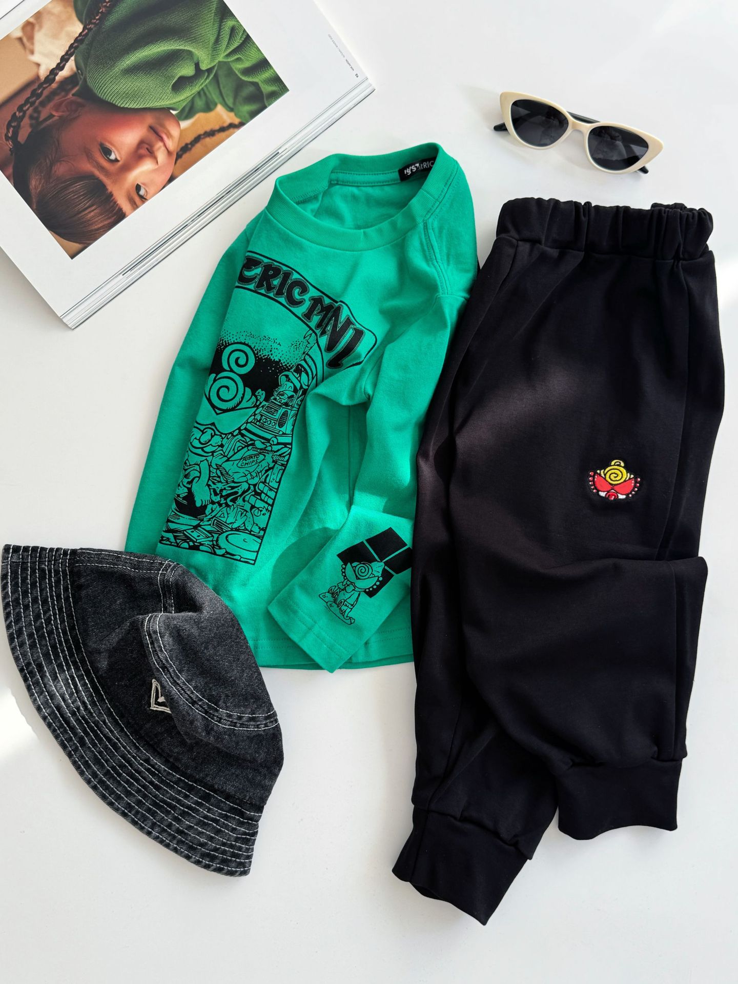 2025 새로운 블랙 슈퍼 조수 브랜드 젖꼭지 가슴 손 편지 인쇄 긴 소매 티셔츠 젖꼭지 어린이 탑 재고스토어 가기