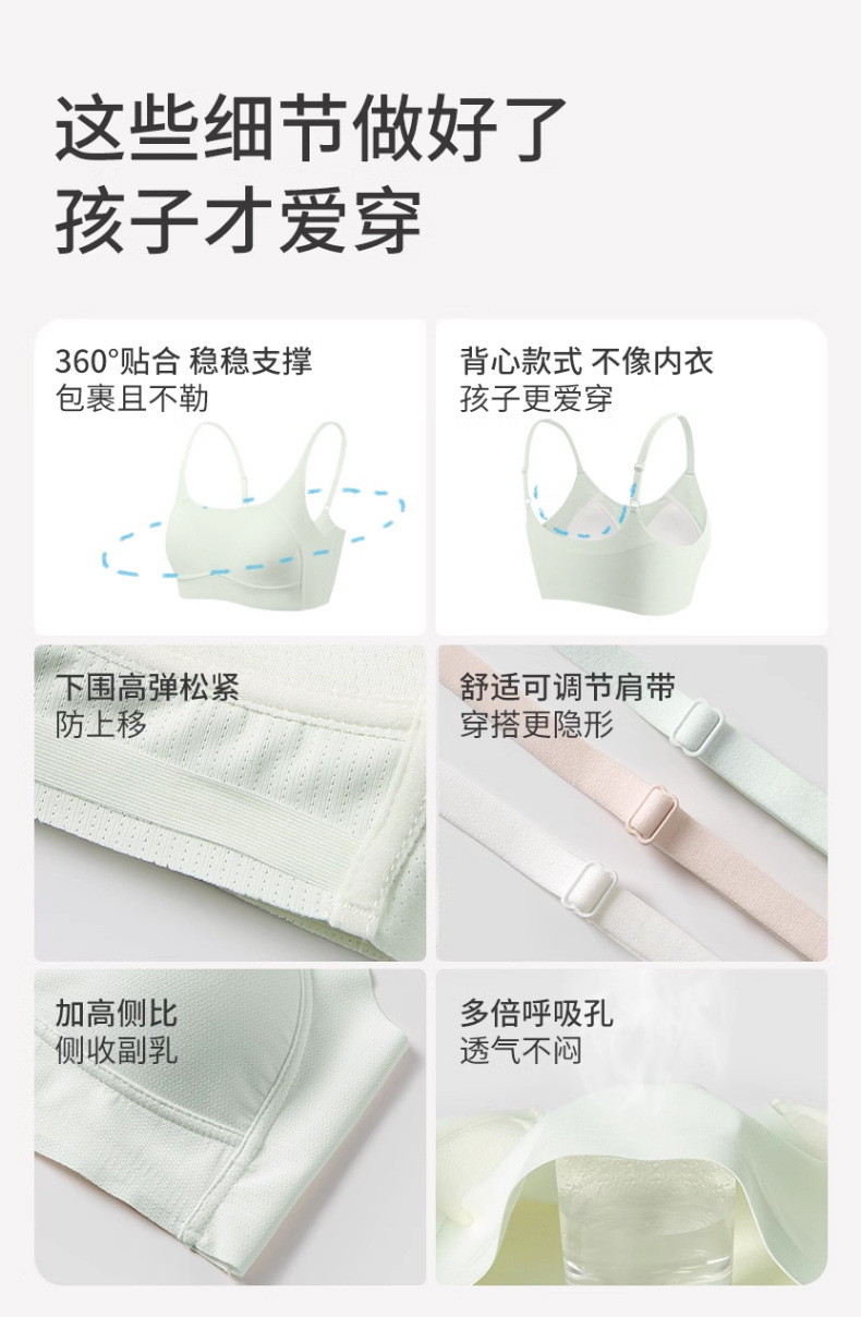 중학교 여고생 속옷 여아 큰 아이들 작은 조끼 사춘기 13 세 고등학생 스포츠 충격 방지 브래지어